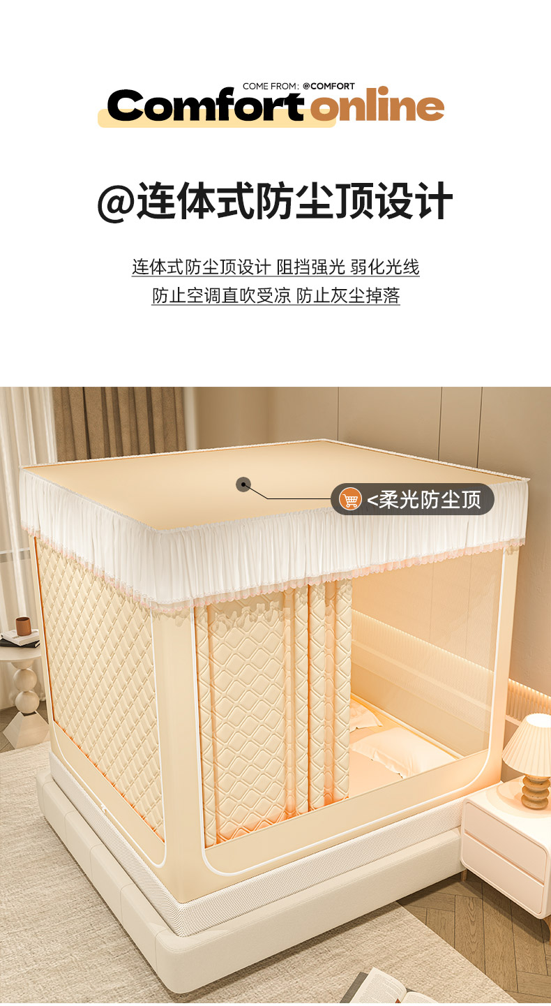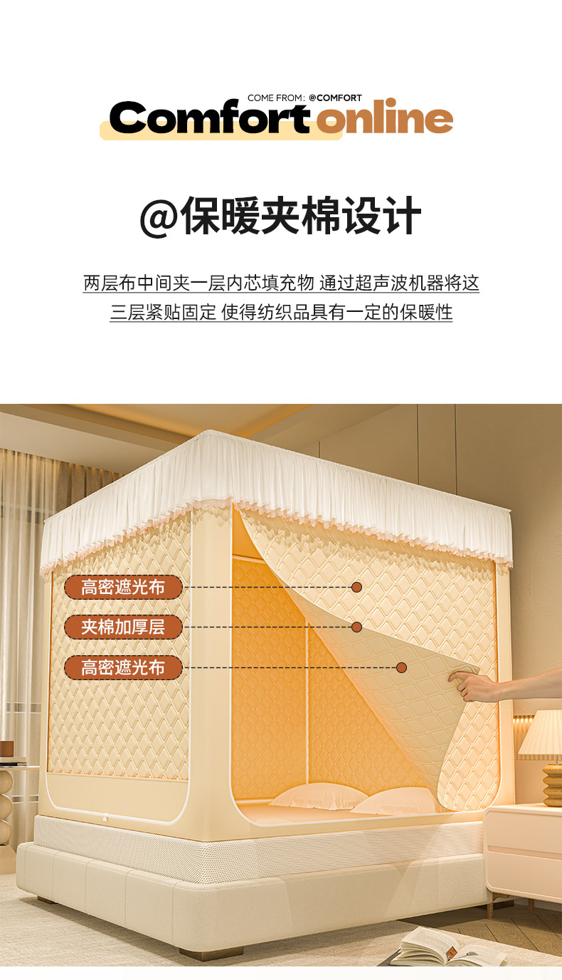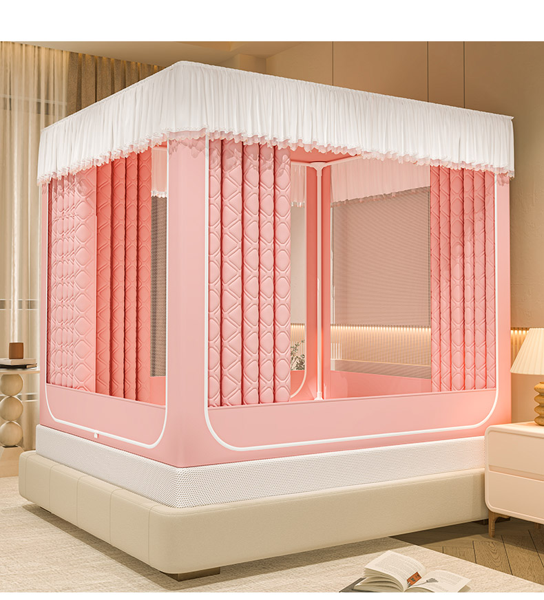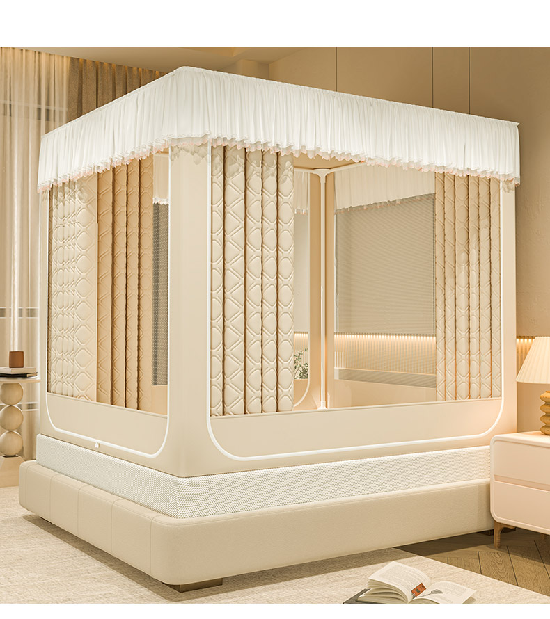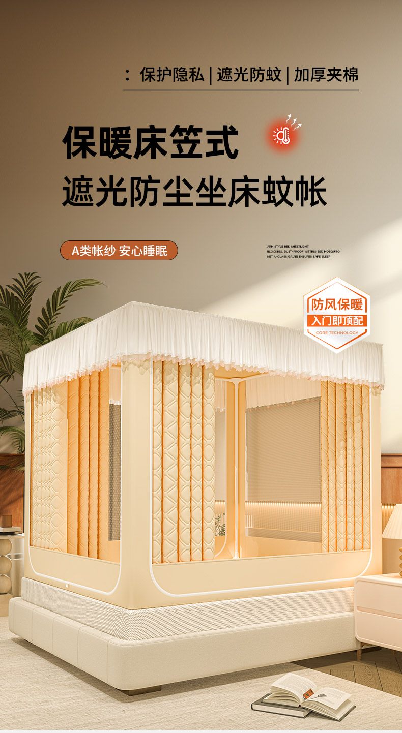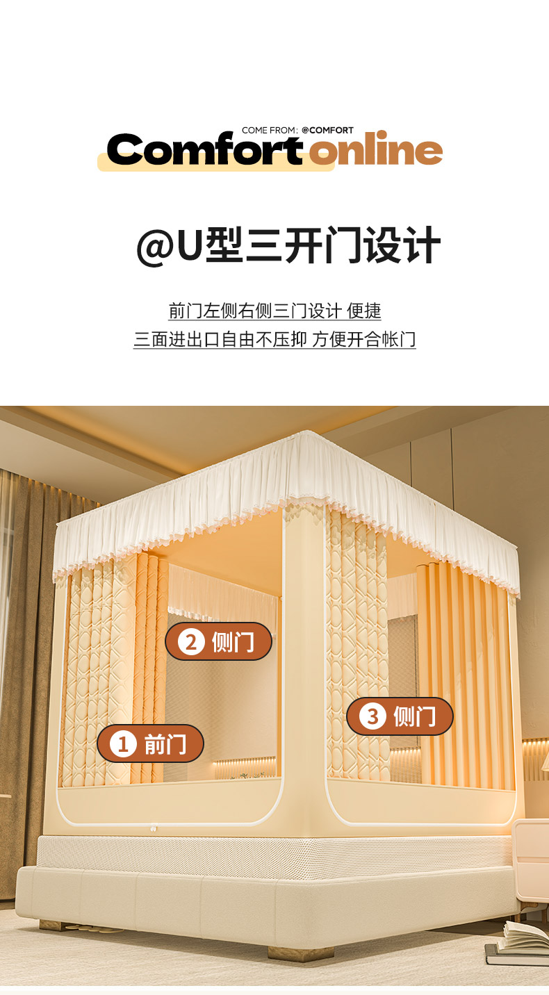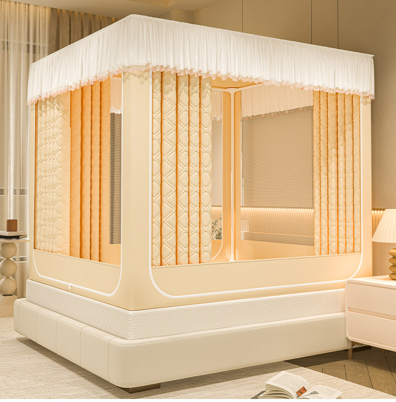自然醒加高内穿U型三门保暖款夹棉防尘顶坐床蚊帐2402HH