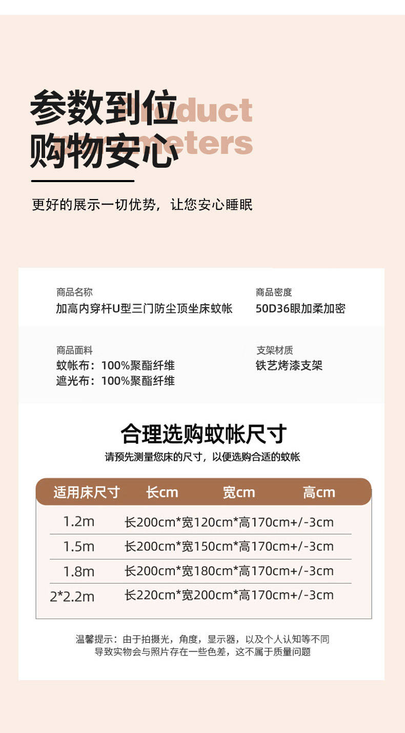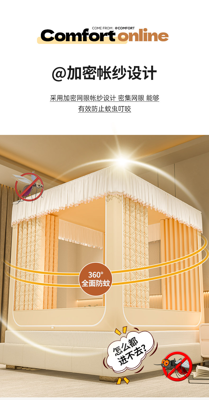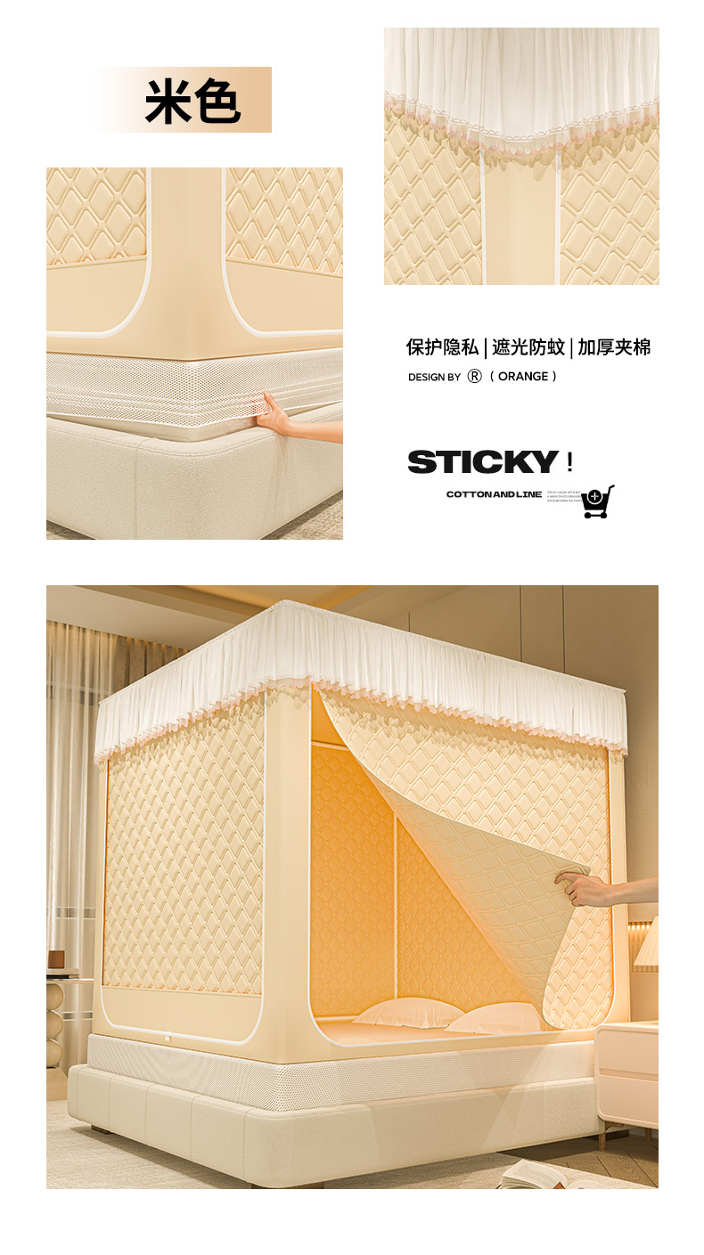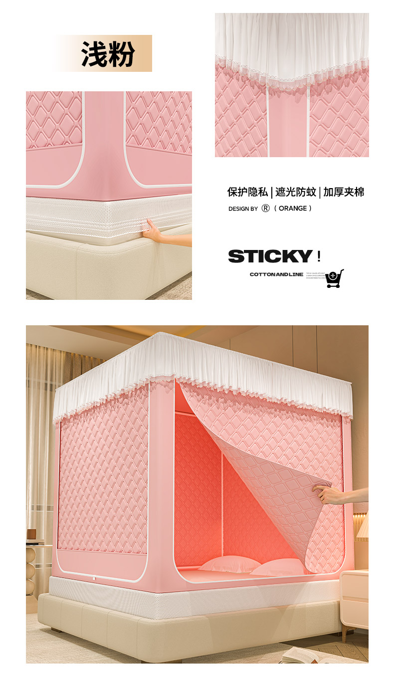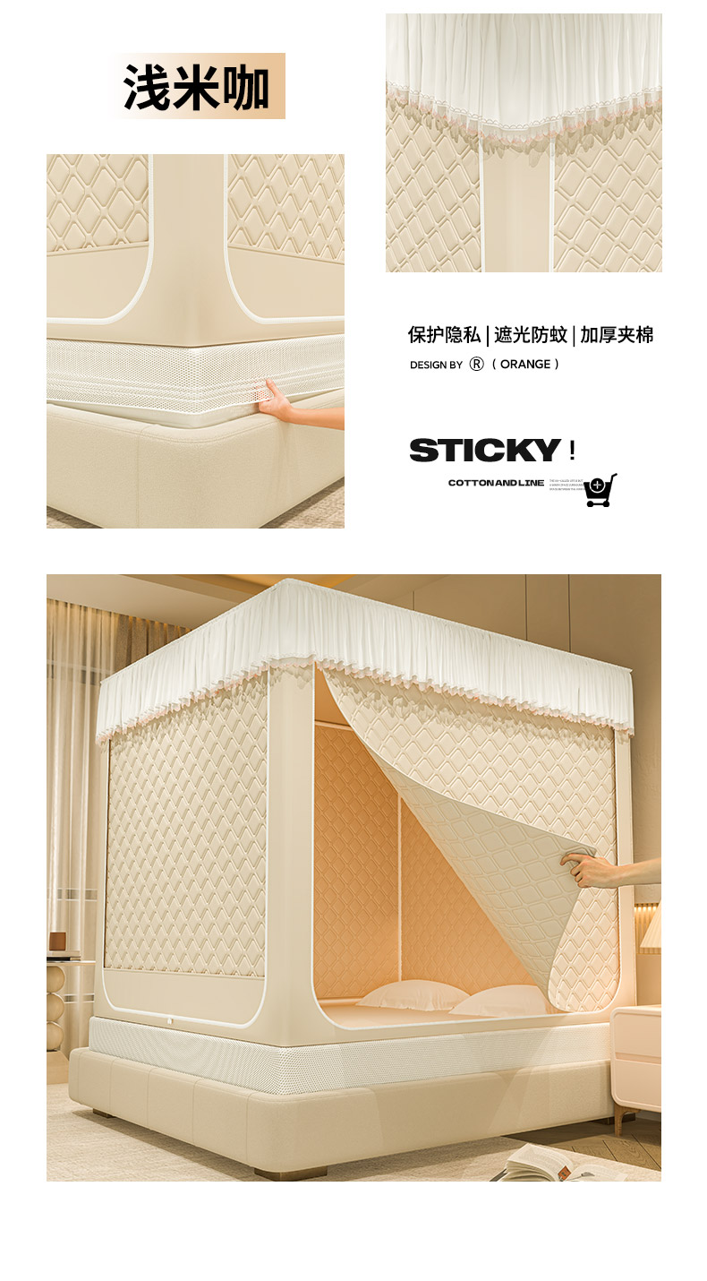 自然醒加高内穿U型三门保暖款夹棉防尘顶坐床蚊帐2402HH