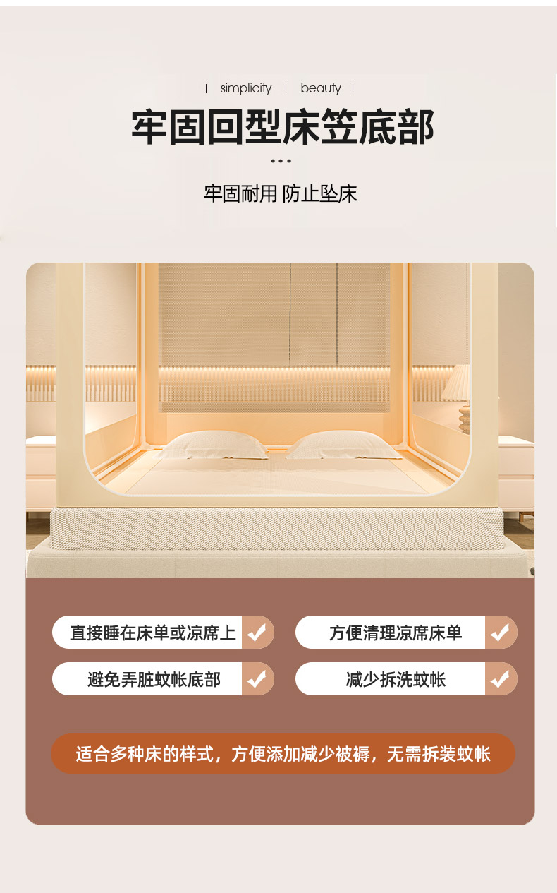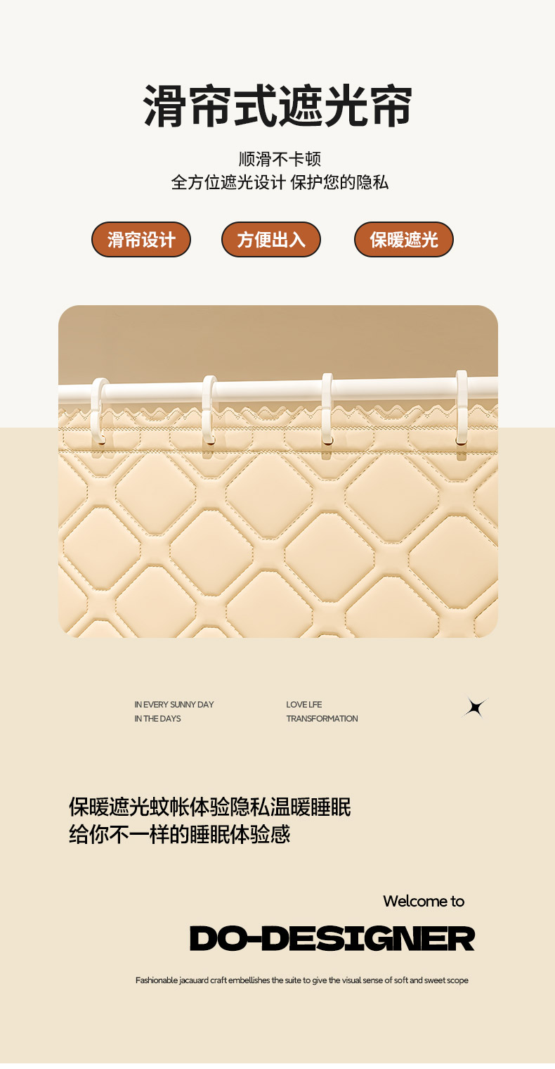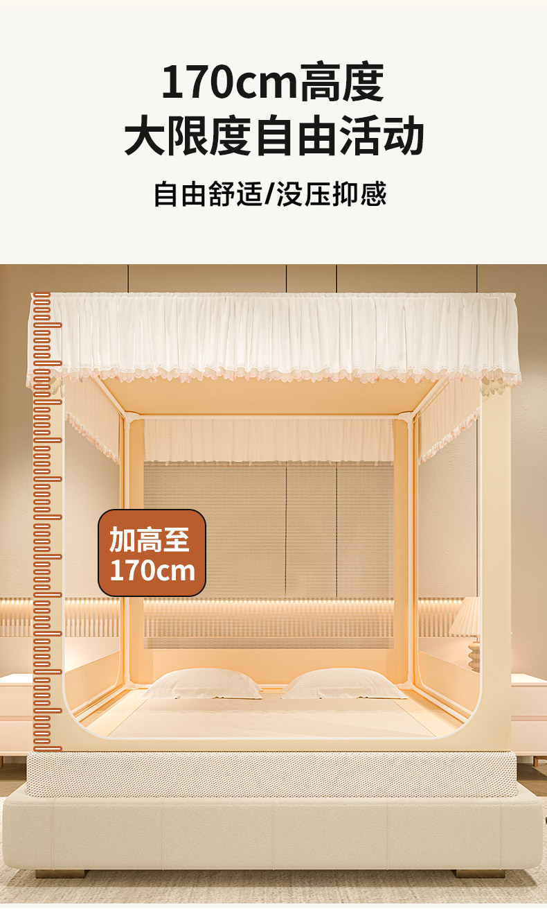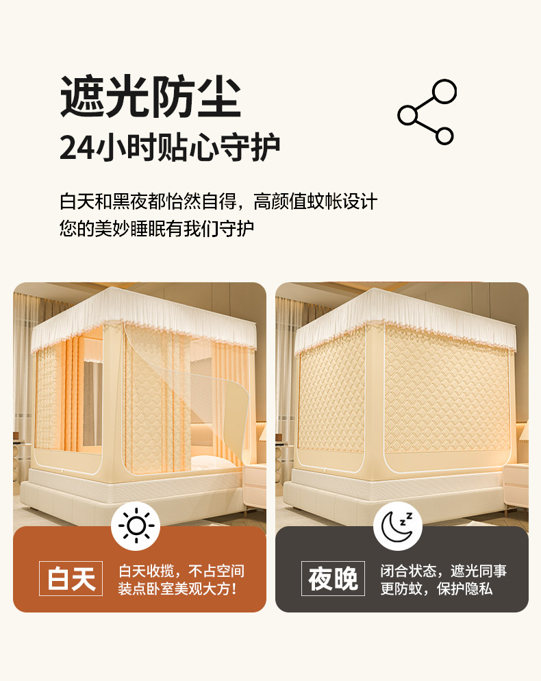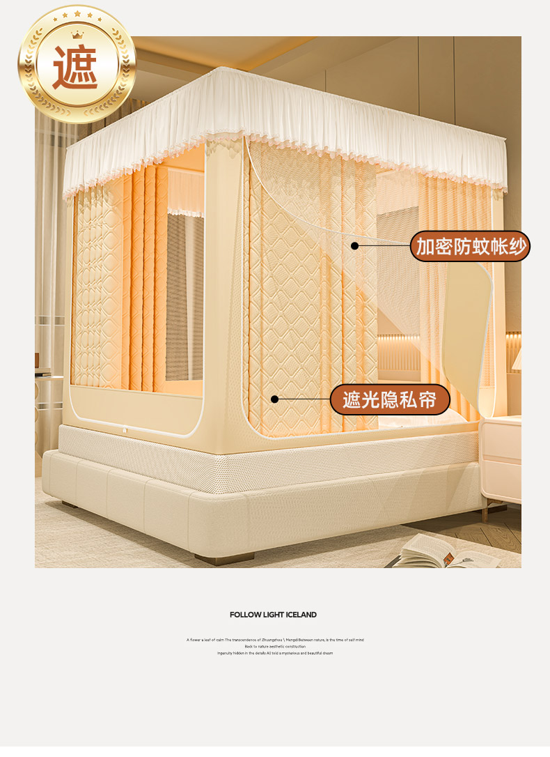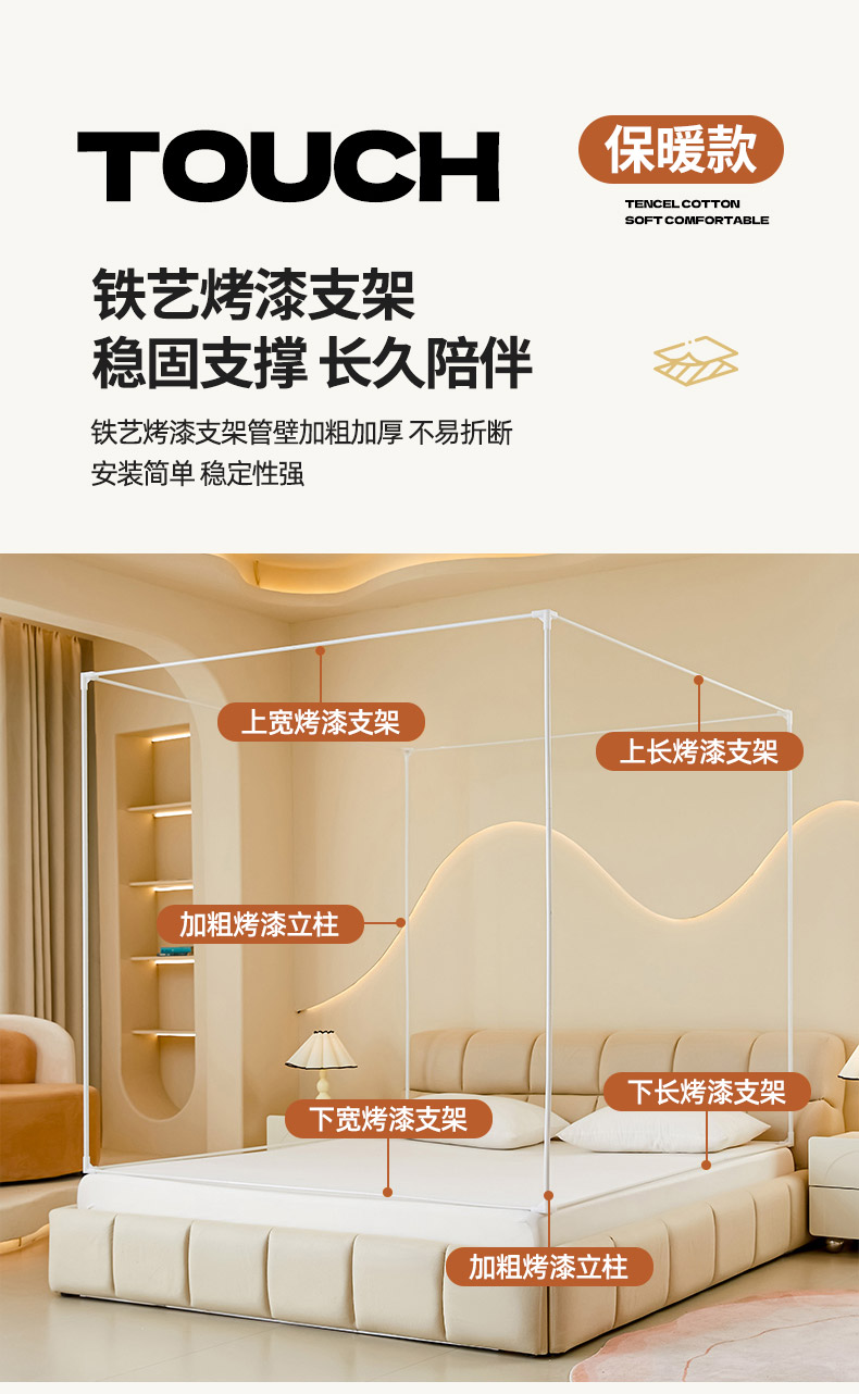 自然醒加高内穿U型三门保暖款夹棉防尘顶坐床蚊帐2402HH