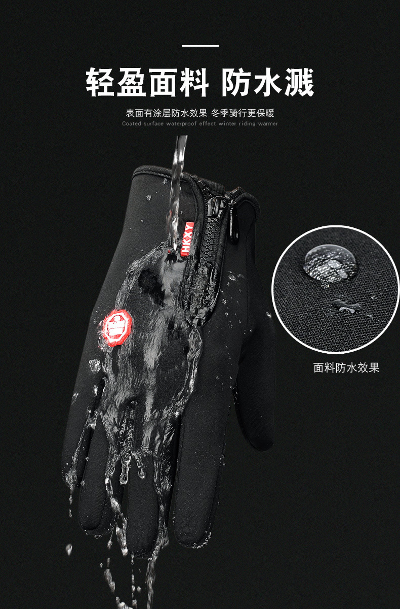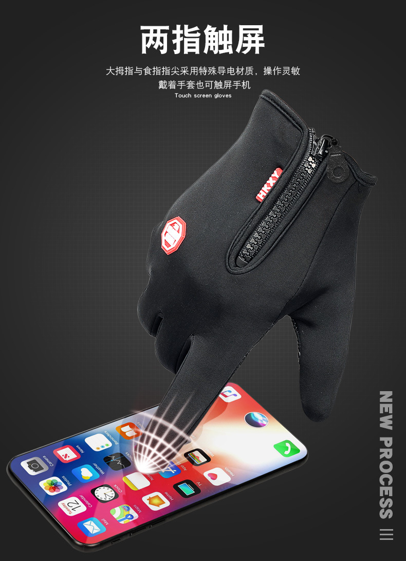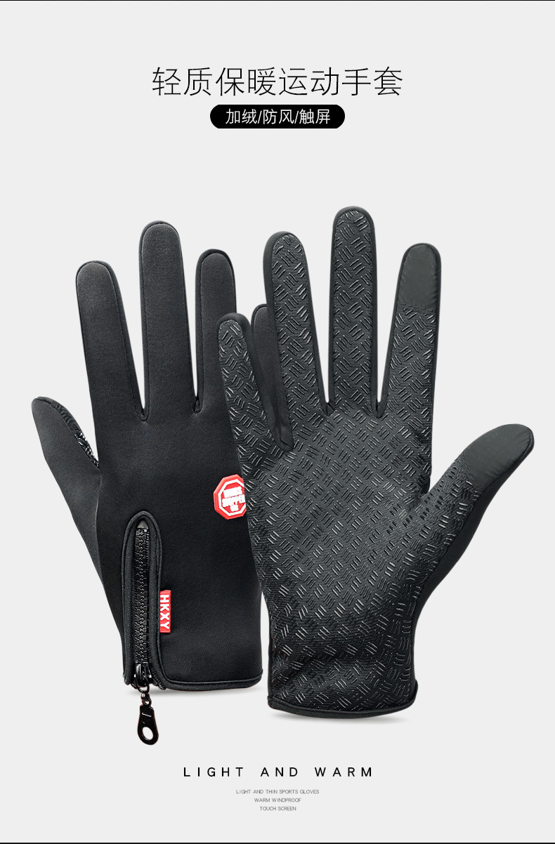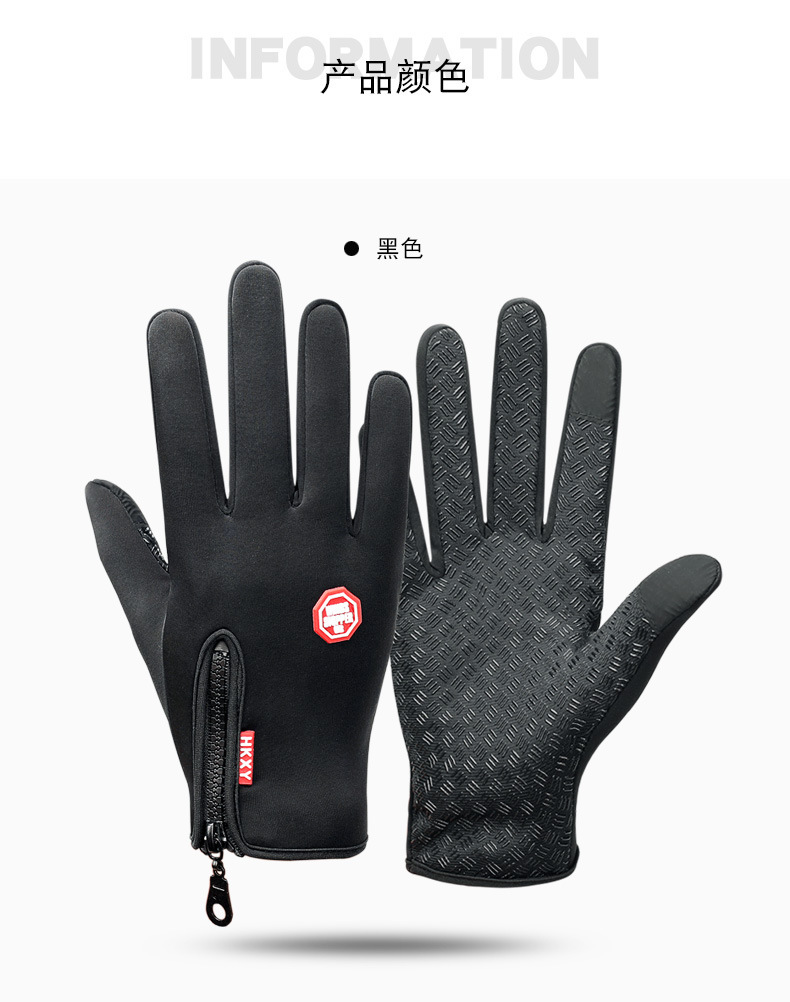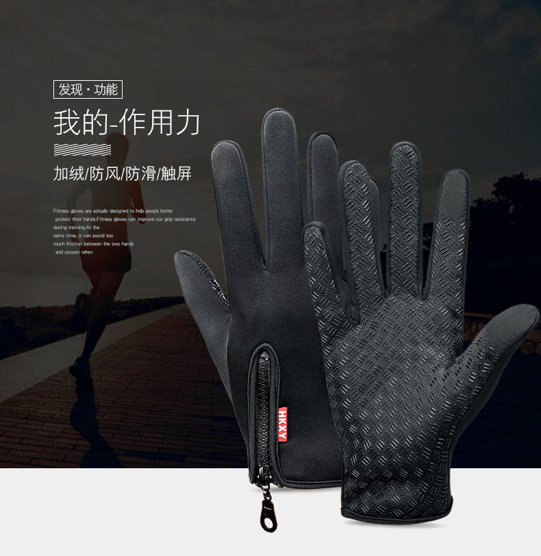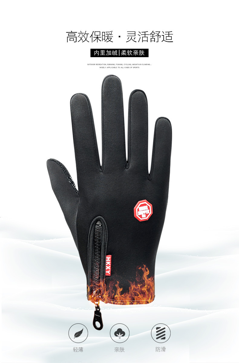 户外手套触屏男女骑行拉链运动冬季防风保暖抓绒登山滑雪运动手套