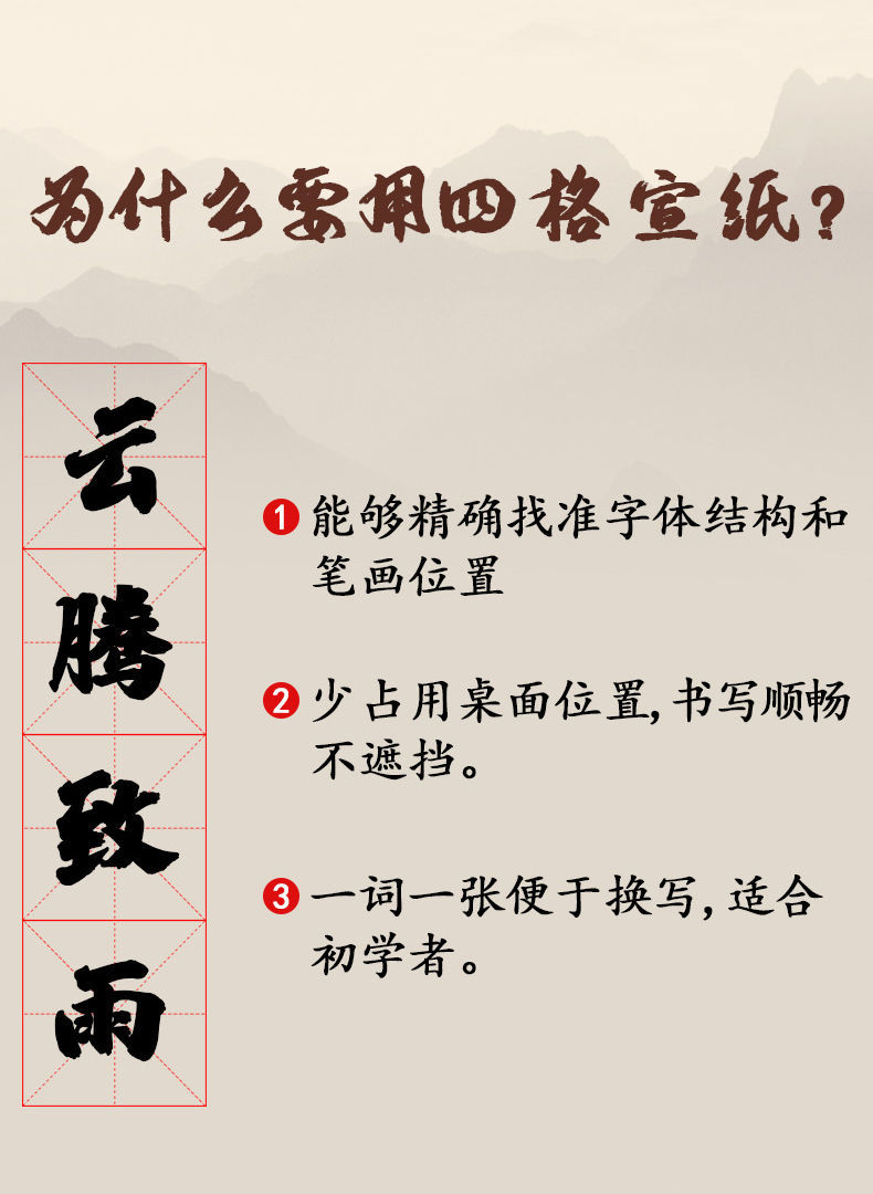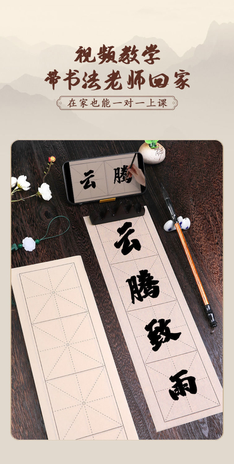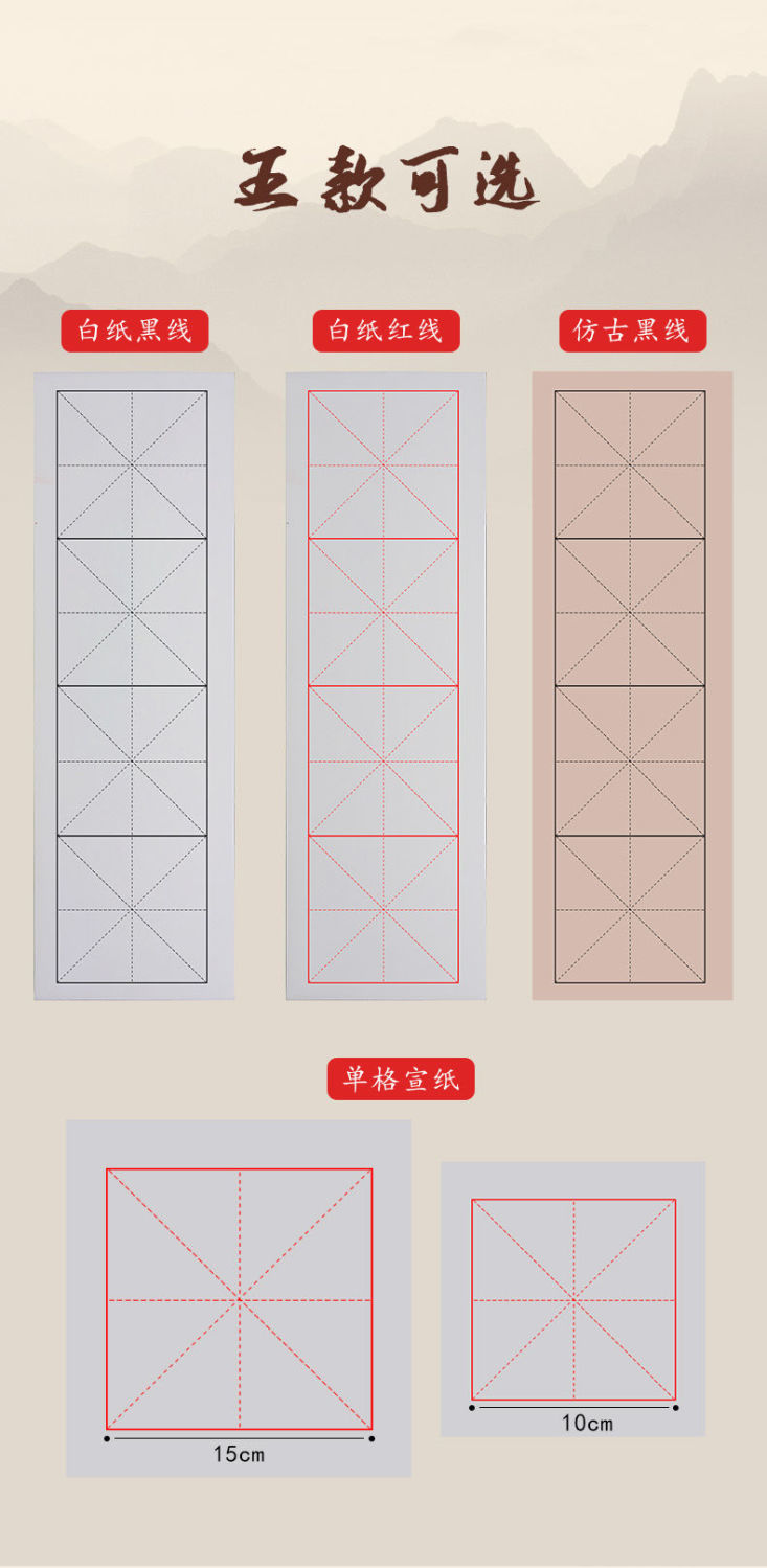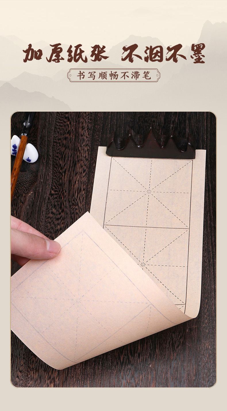 【福利】四格宣纸书法作品纸精准定位笔画字形米字格半生熟白色仿古毛笔成人初学者练习纸
