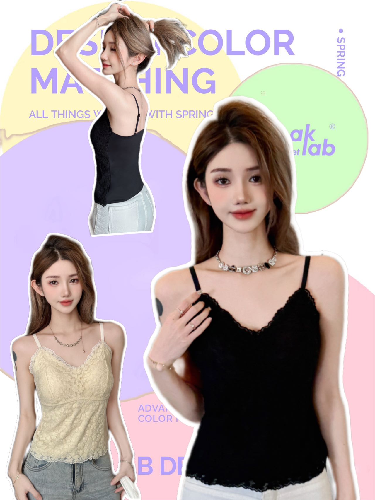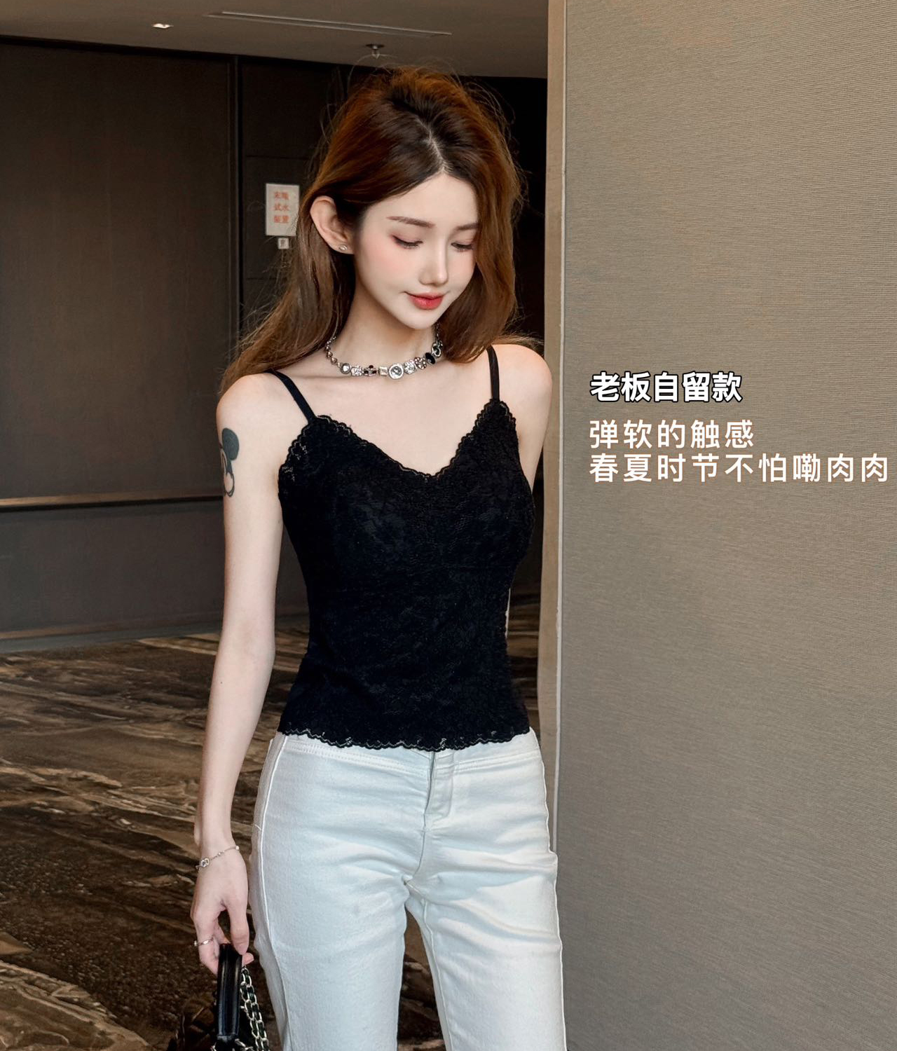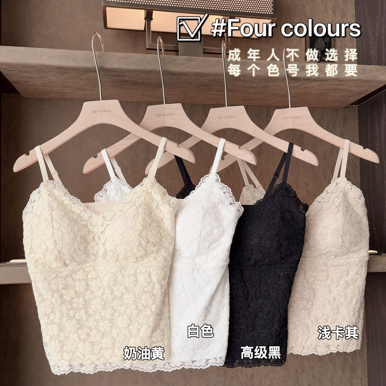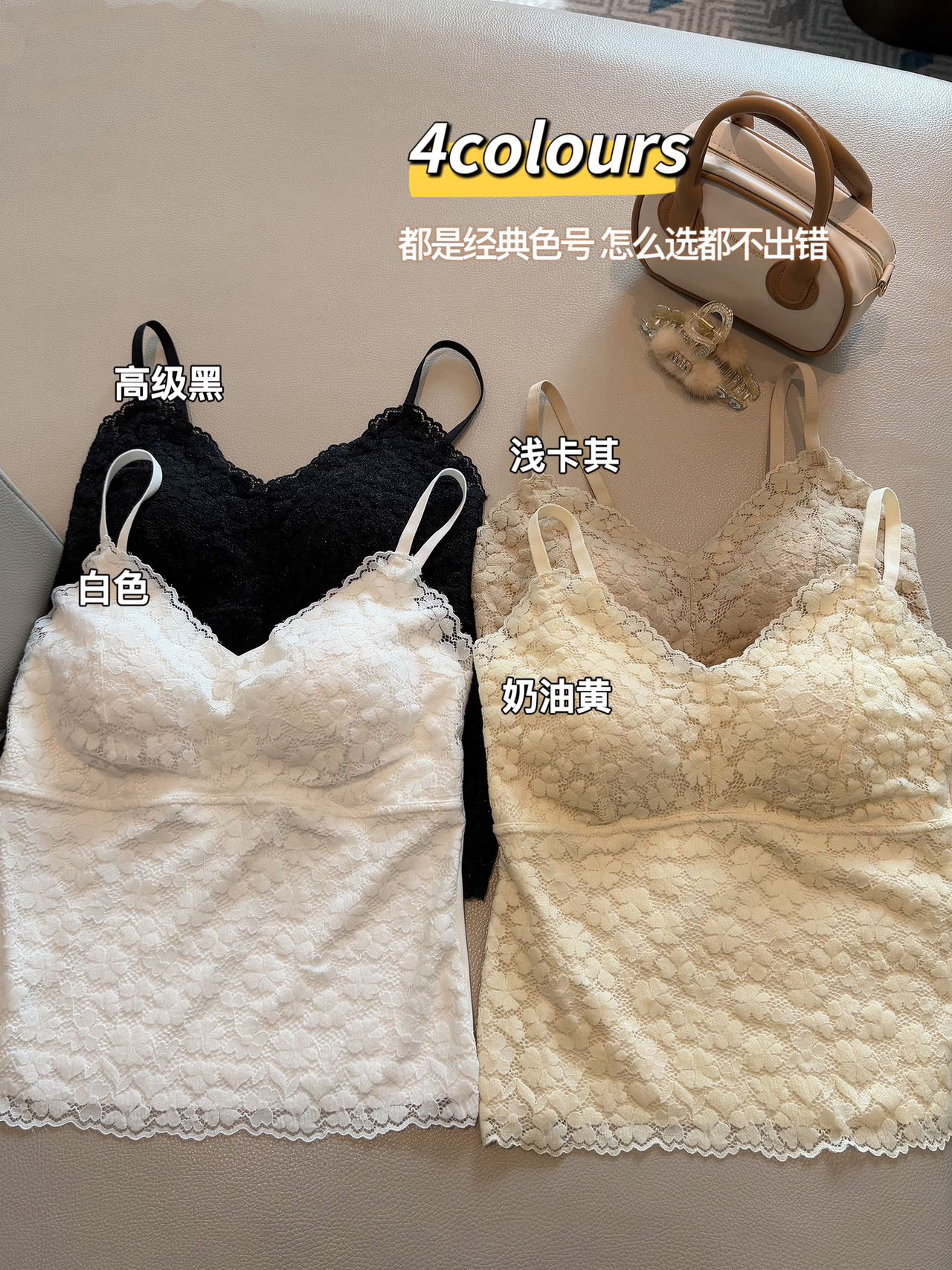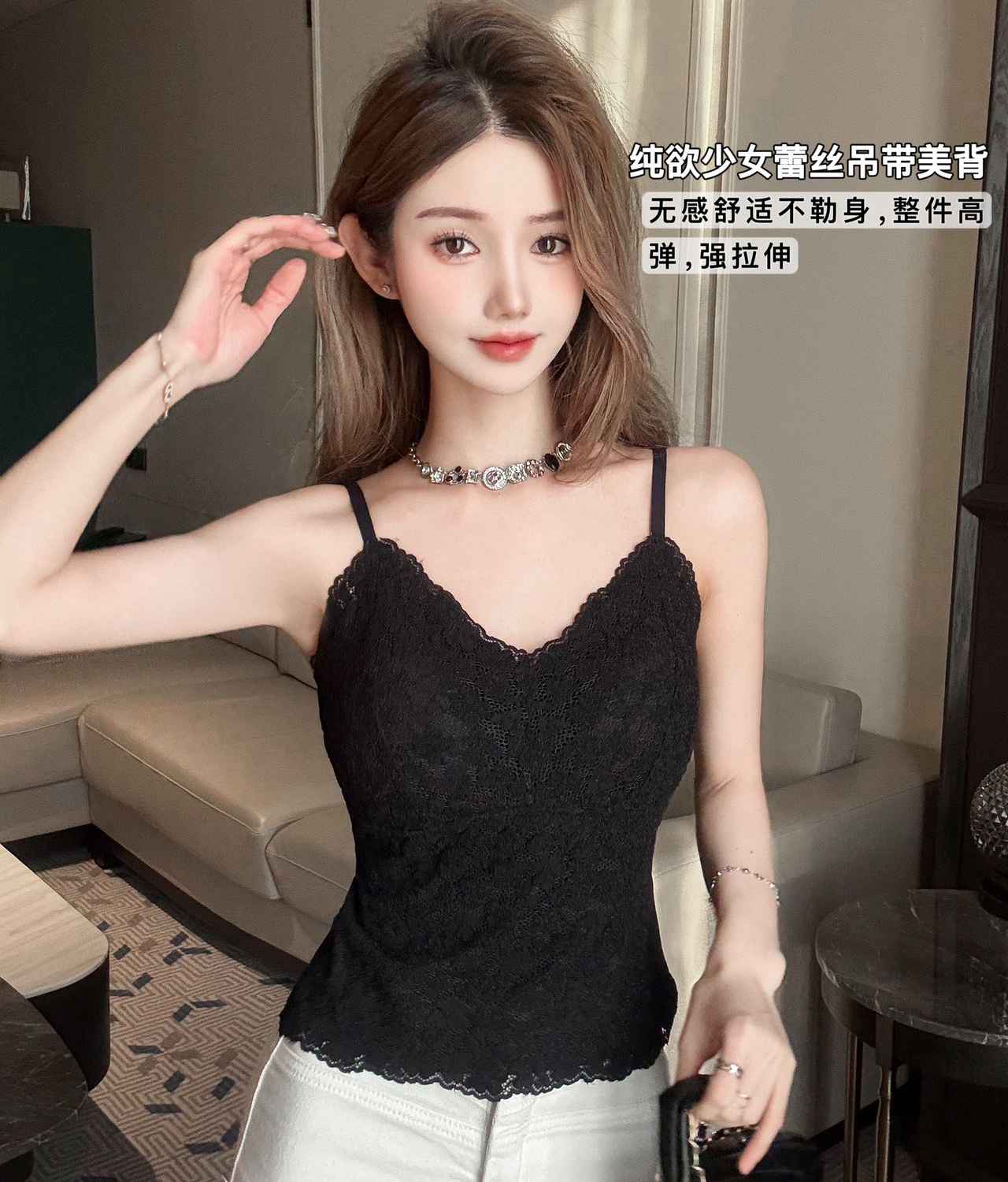 【99元2件】法式小蕾丝深V领美背细肩带吊带背心(带胸垫)【FF25509】