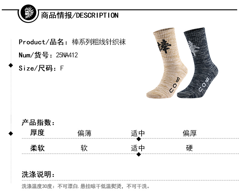 ONIARAI/鬼洗25秋冬新品棒系列复古雪花纹粗线针织袜中性 25NA412