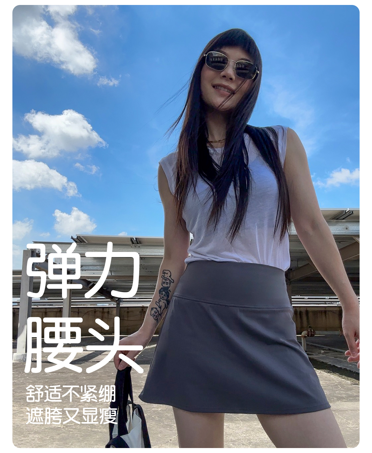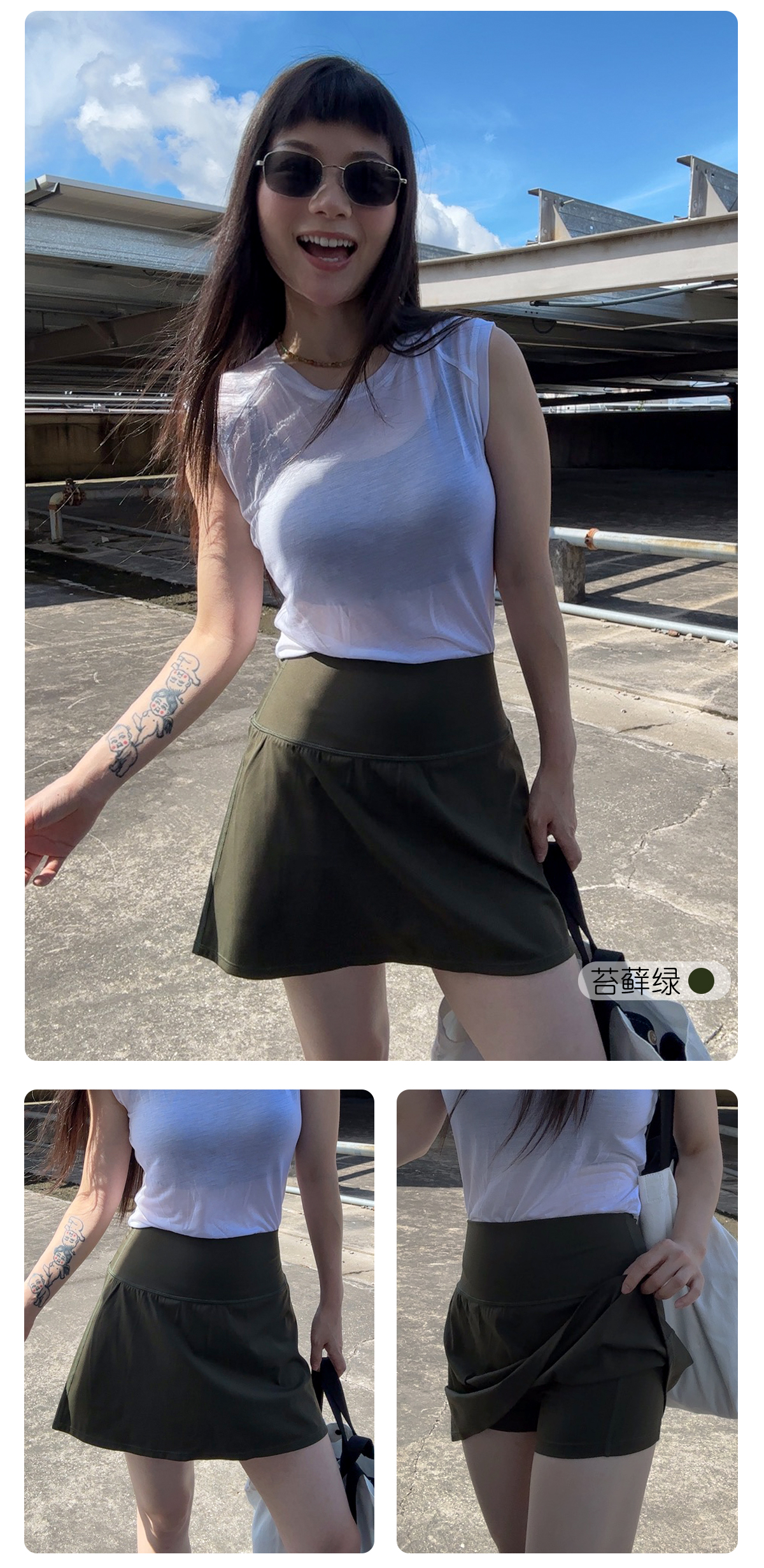 外里运动健身瑜伽半身裙高腰显瘦带内衬防走光夏季a字裙休闲短裙
