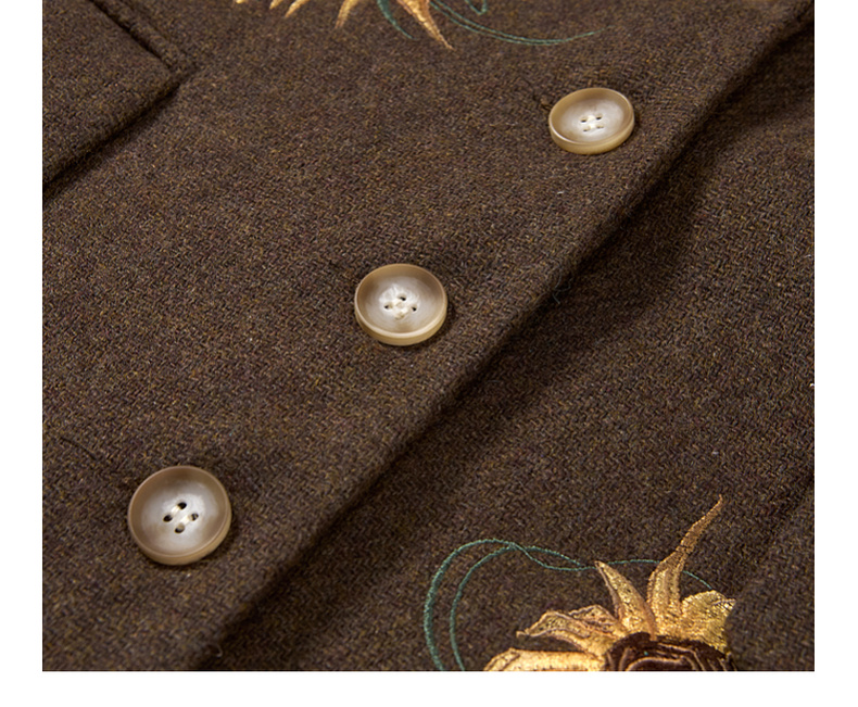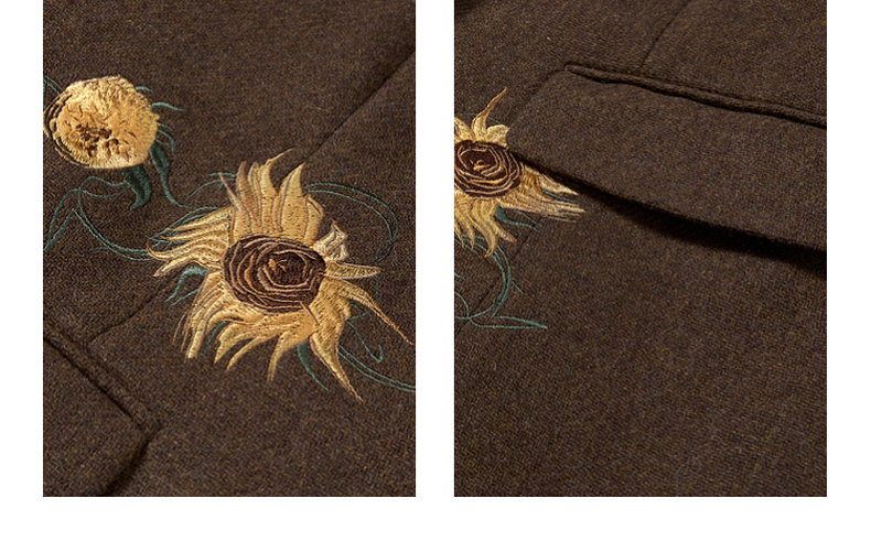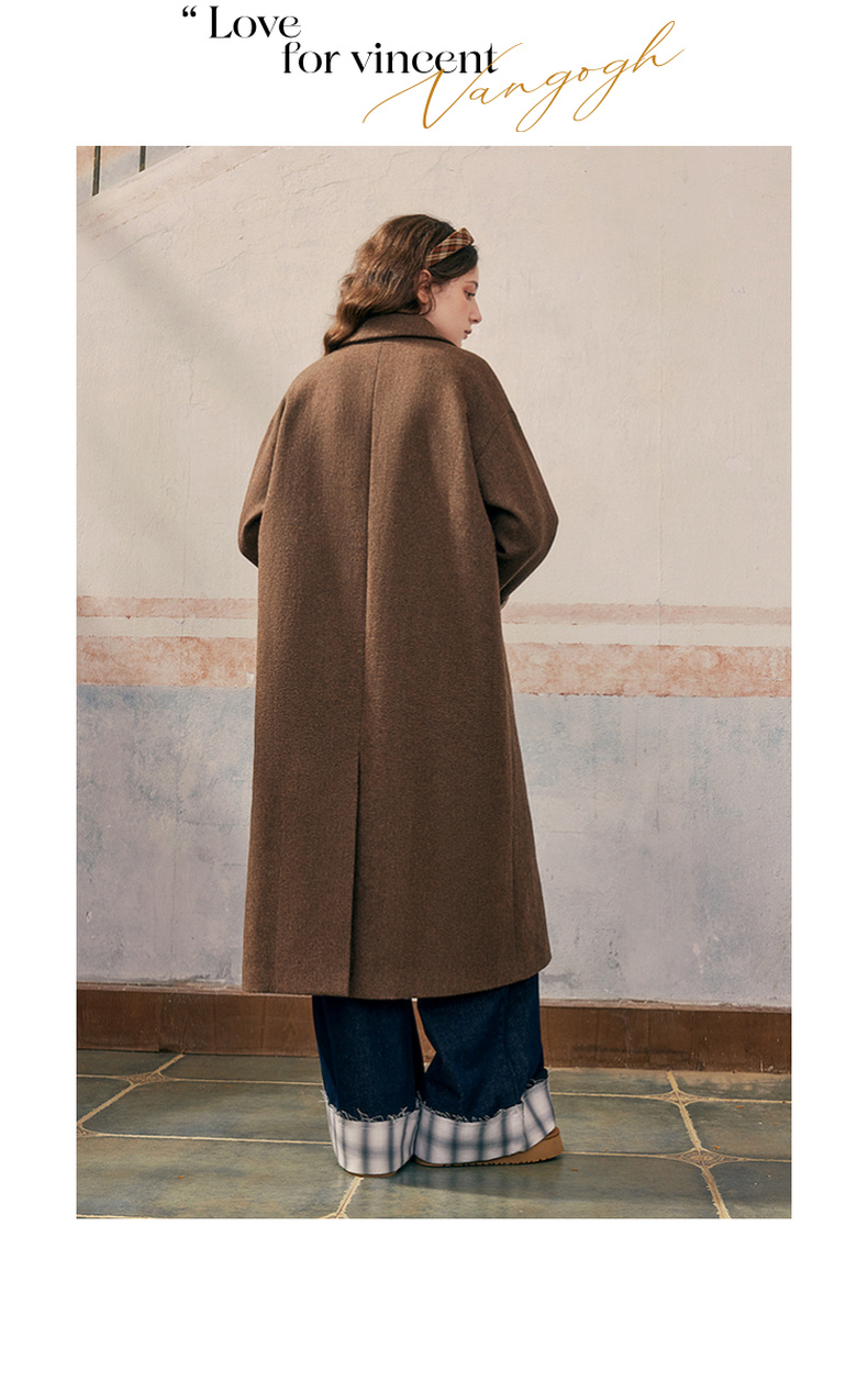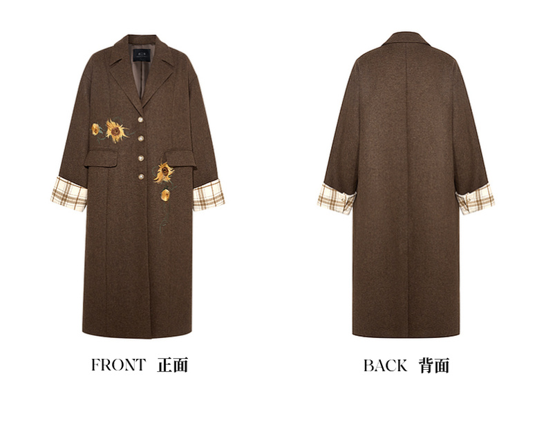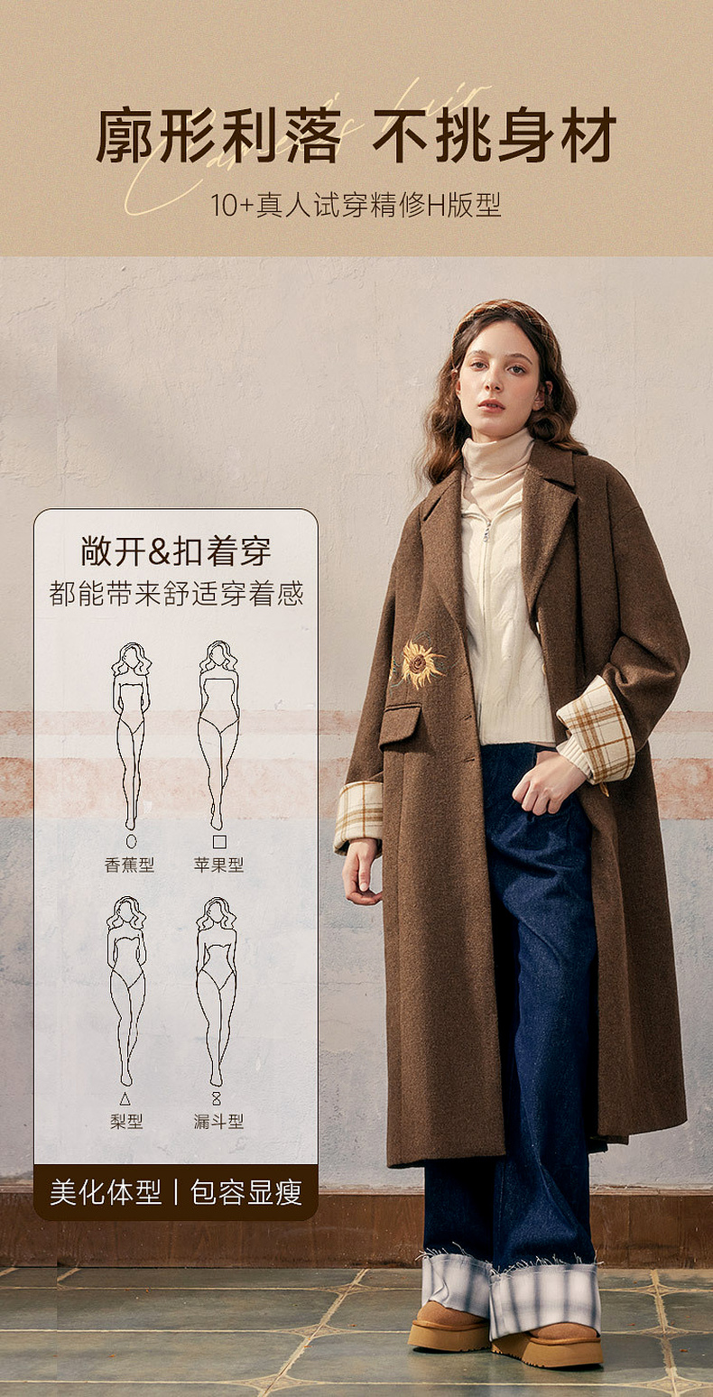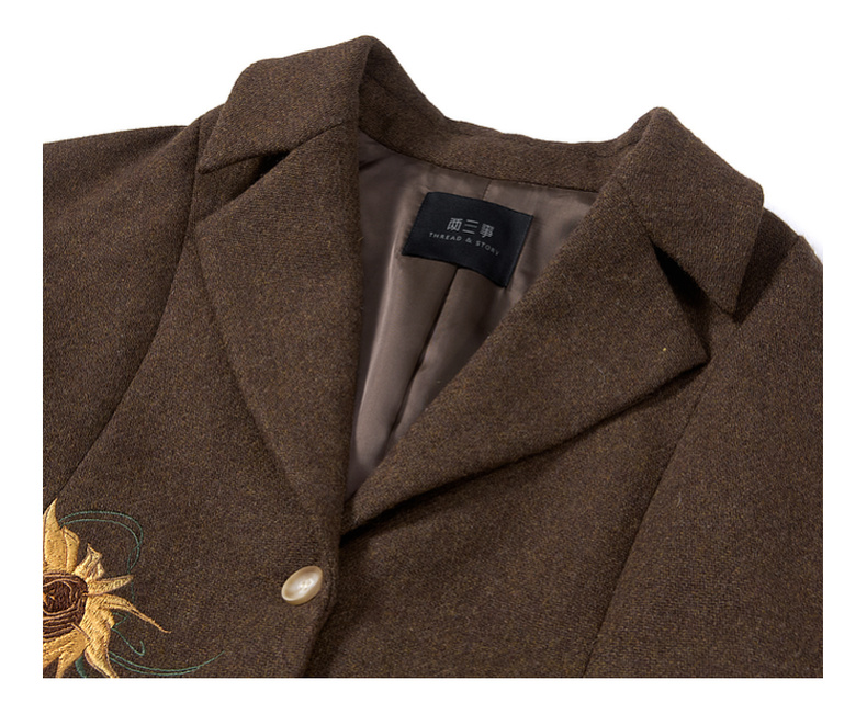 【暖冬内购】两三事梵高文艺秋叶依山2024冬季新款复古格子拼接绣花毛呢外套女