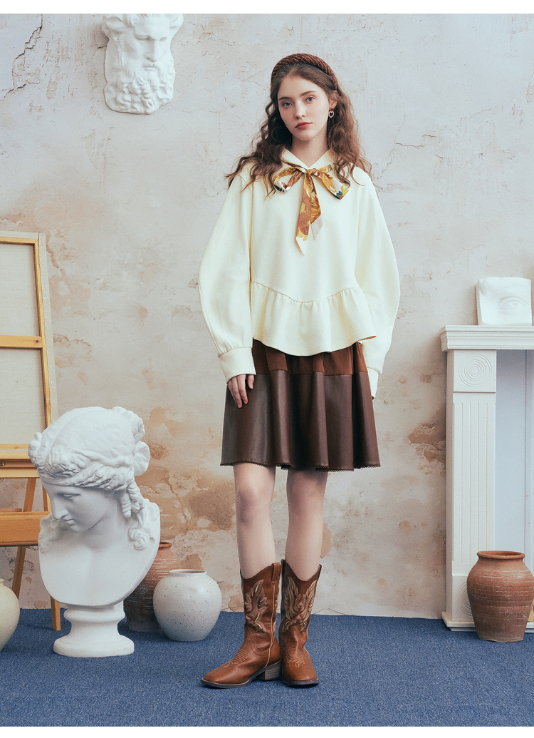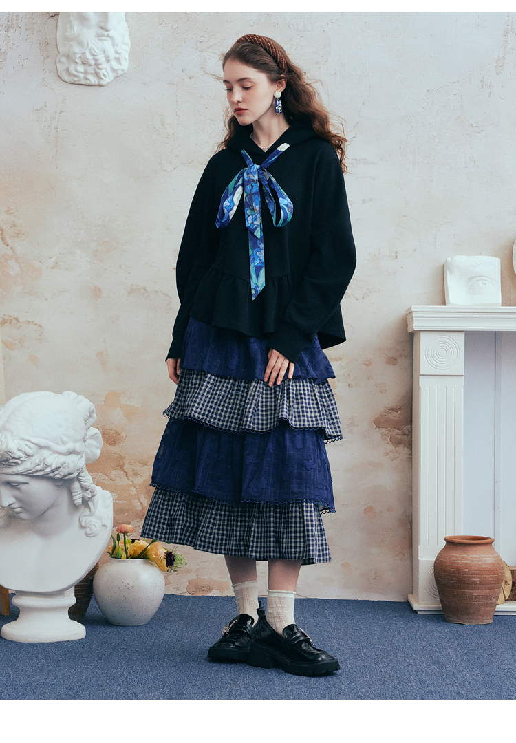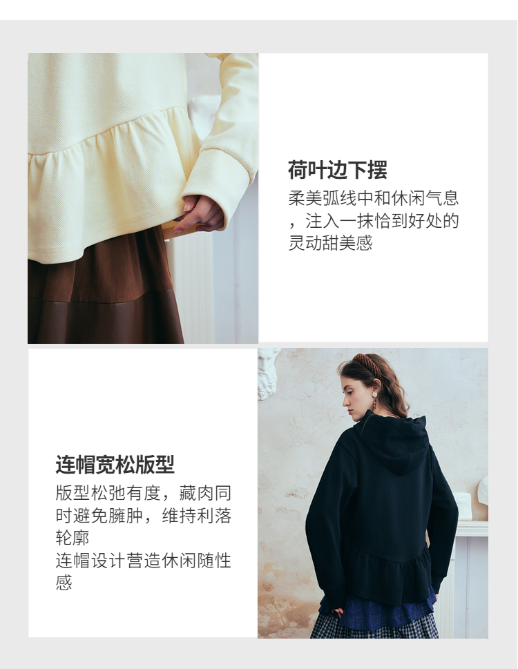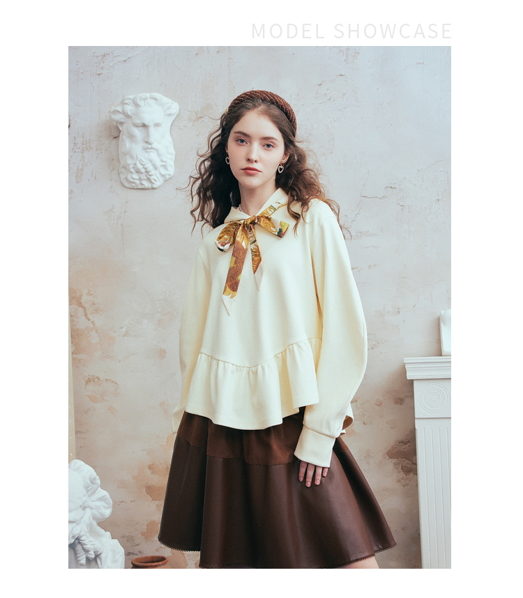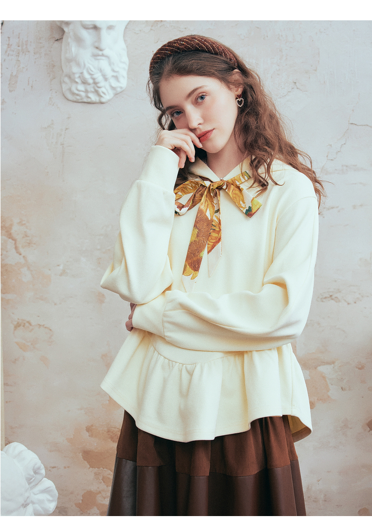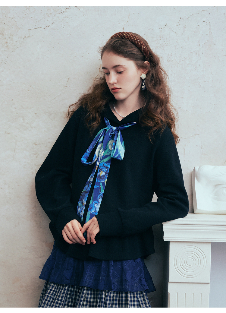 两三事梵高文艺 流光素影 2026春季新款印花绑带连帽卫衣女宽松