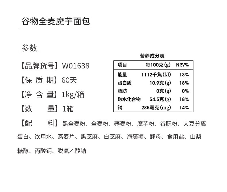 小鸡收腹0低脂黑麦荞麦全麦面包无糖精粗粮肥减吐司欧包代餐零食食品1kg 100017565532