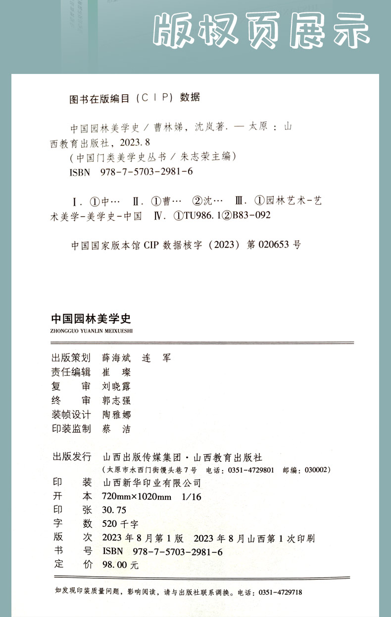 正版 中国园林美学史 艺术美学史 曹林娣 沈岚著 山西教育出版社出版