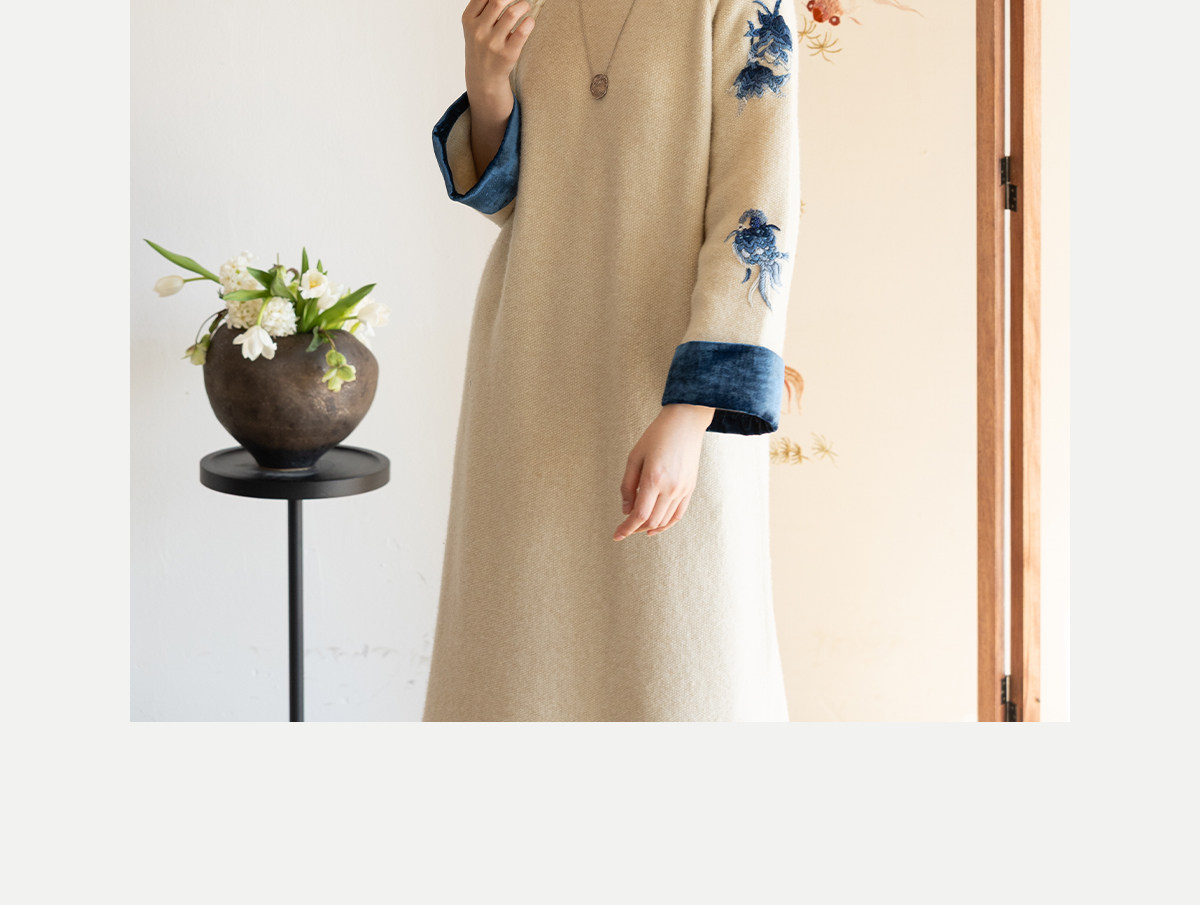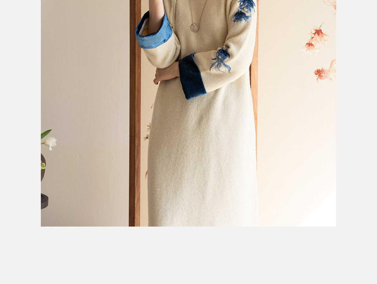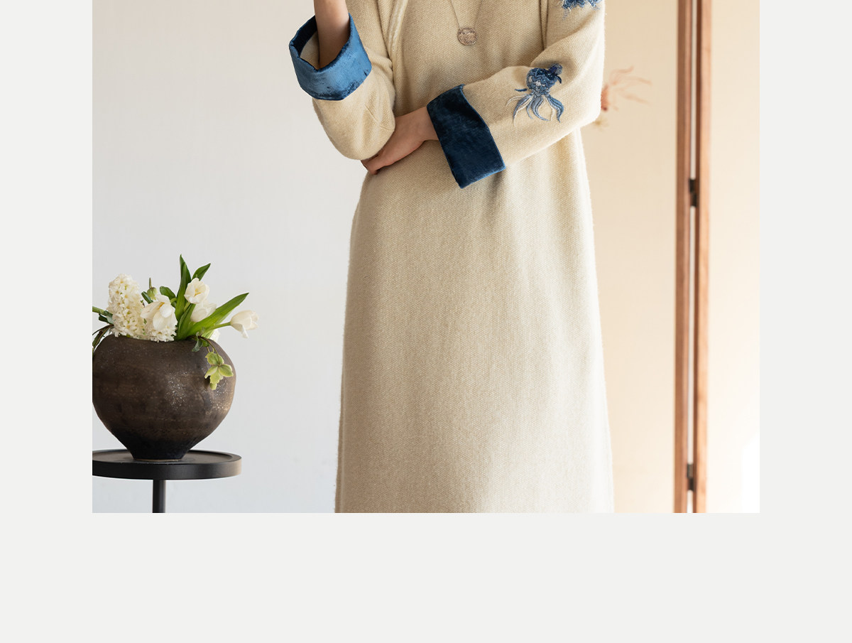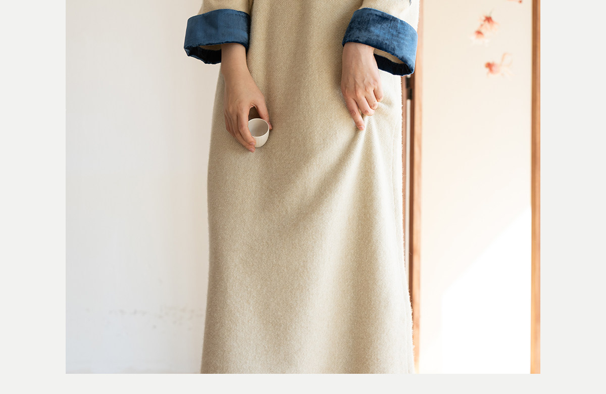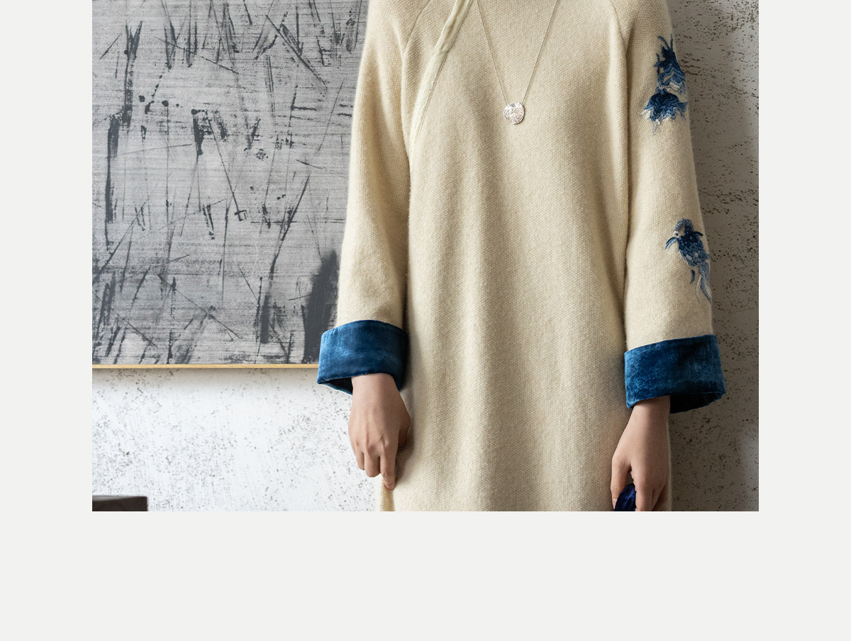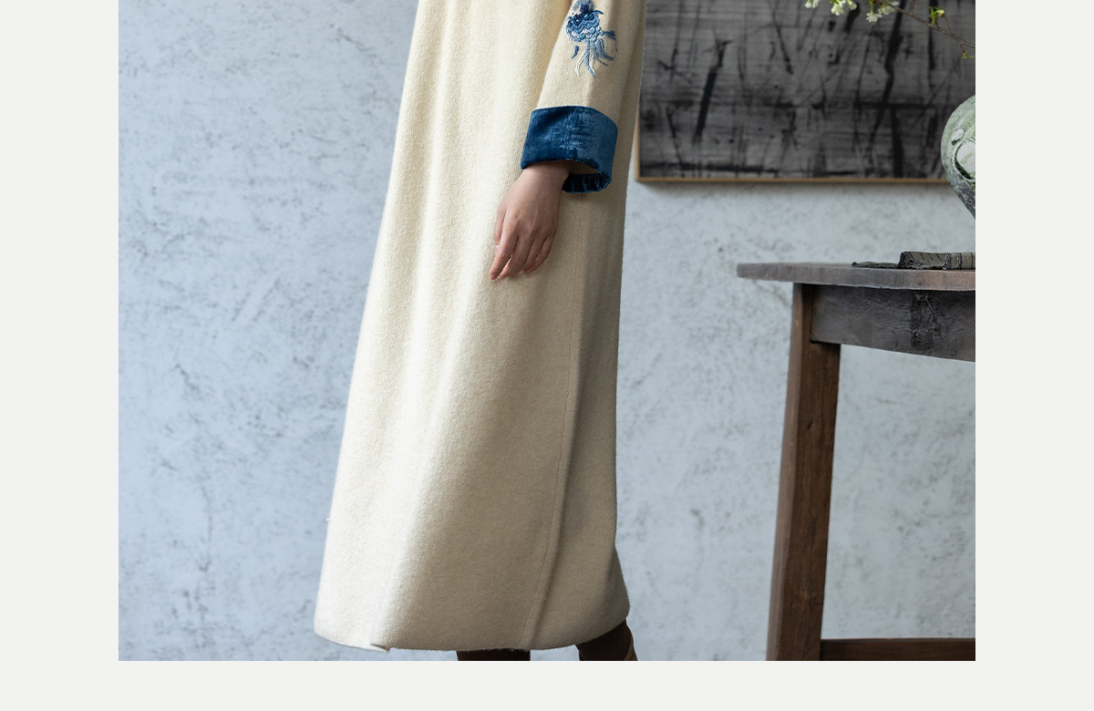 牧衣游原创 手工刺绣羊毛牛绒混织毛织连衣裙古朴改良旗袍茶服 霁