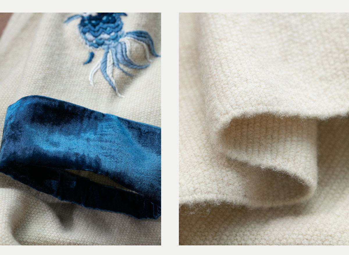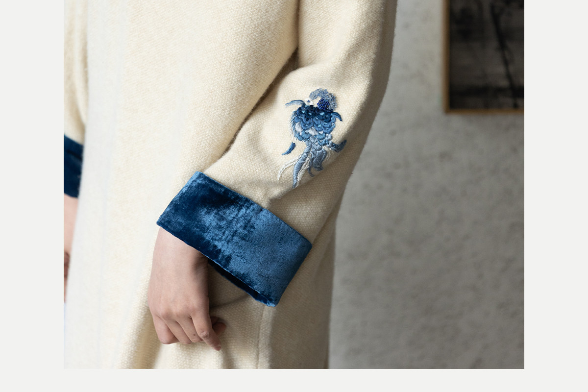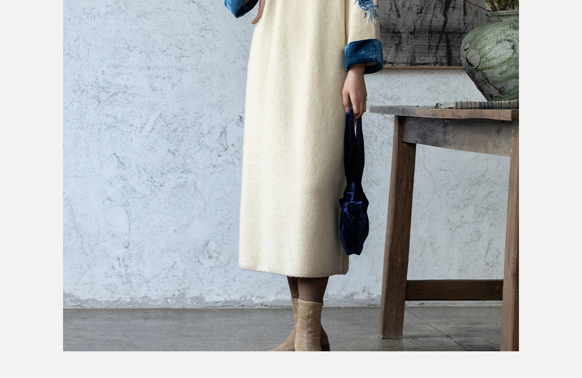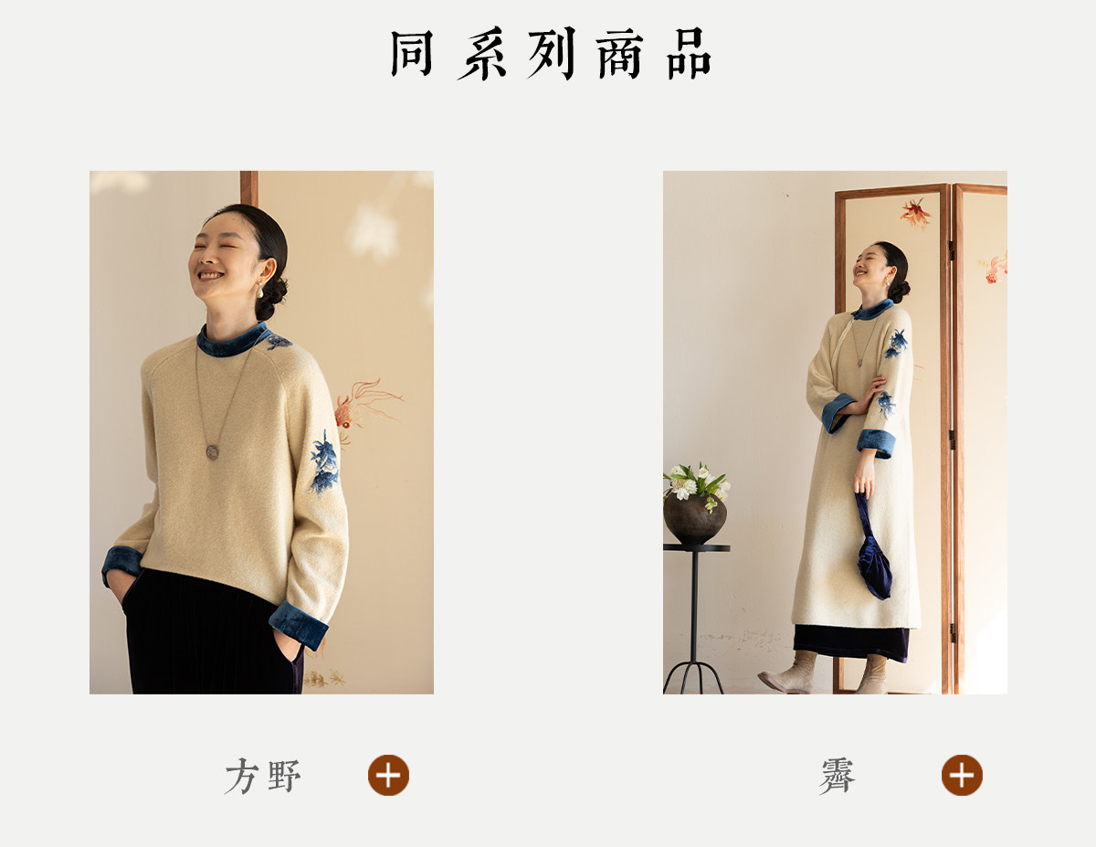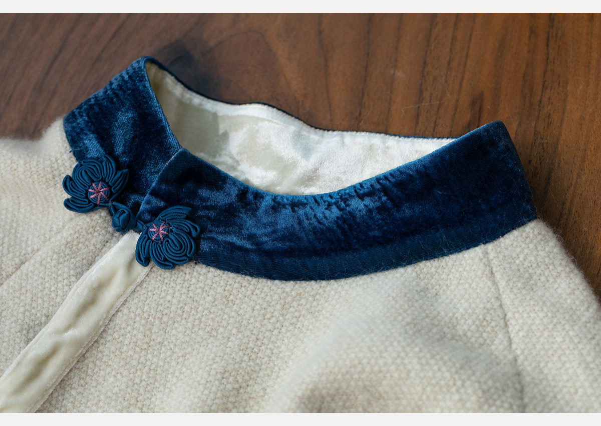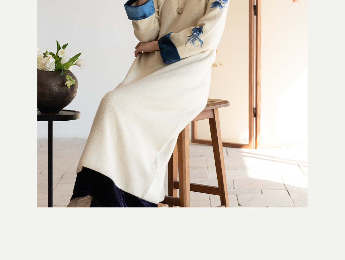 牧衣游原创 手工刺绣羊毛牛绒混织毛织连衣裙古朴改良旗袍茶服 霁