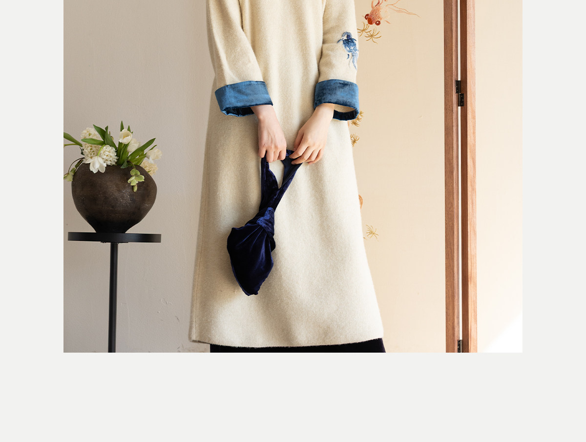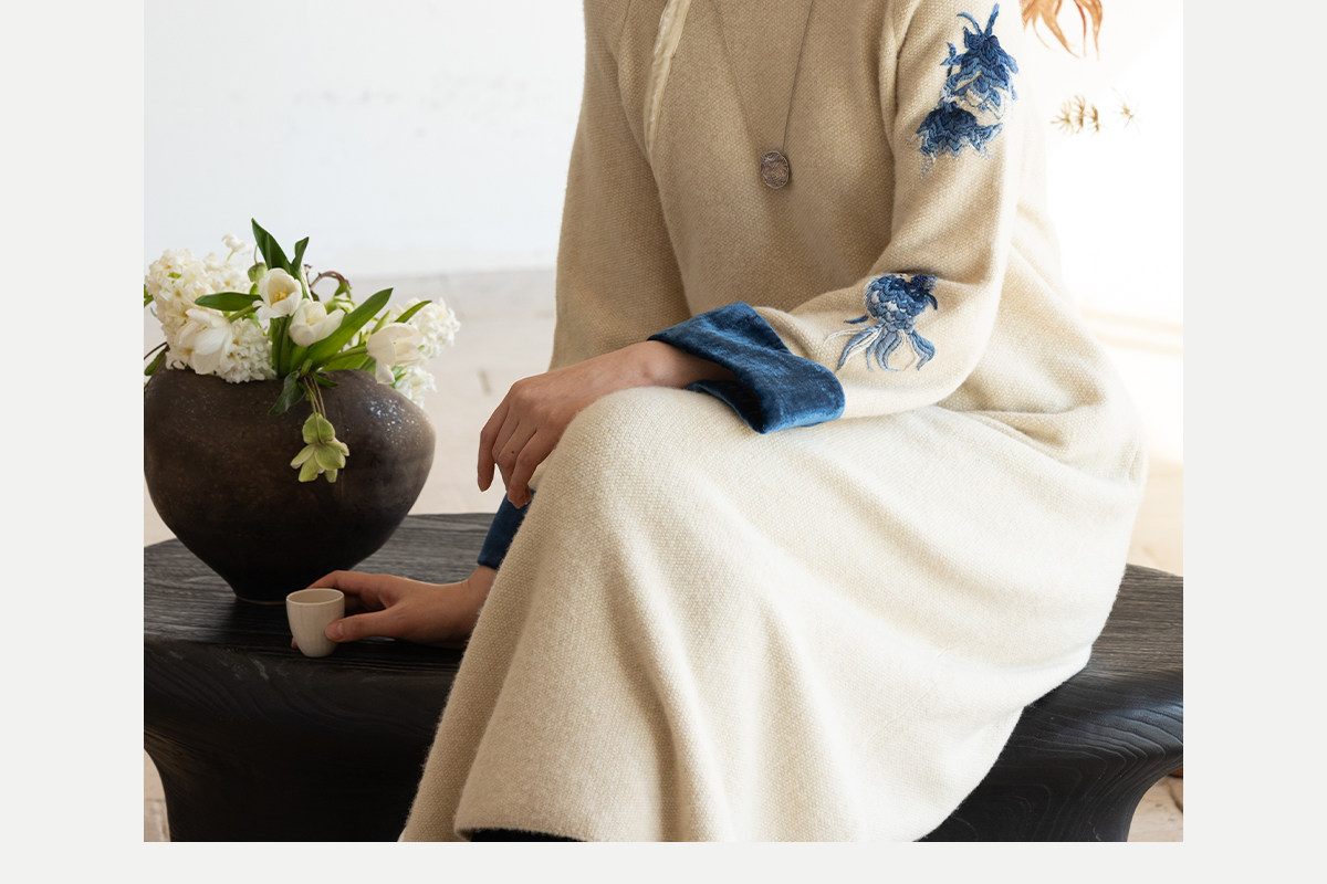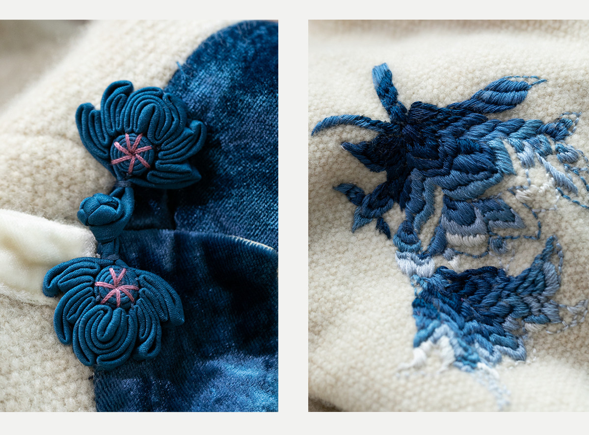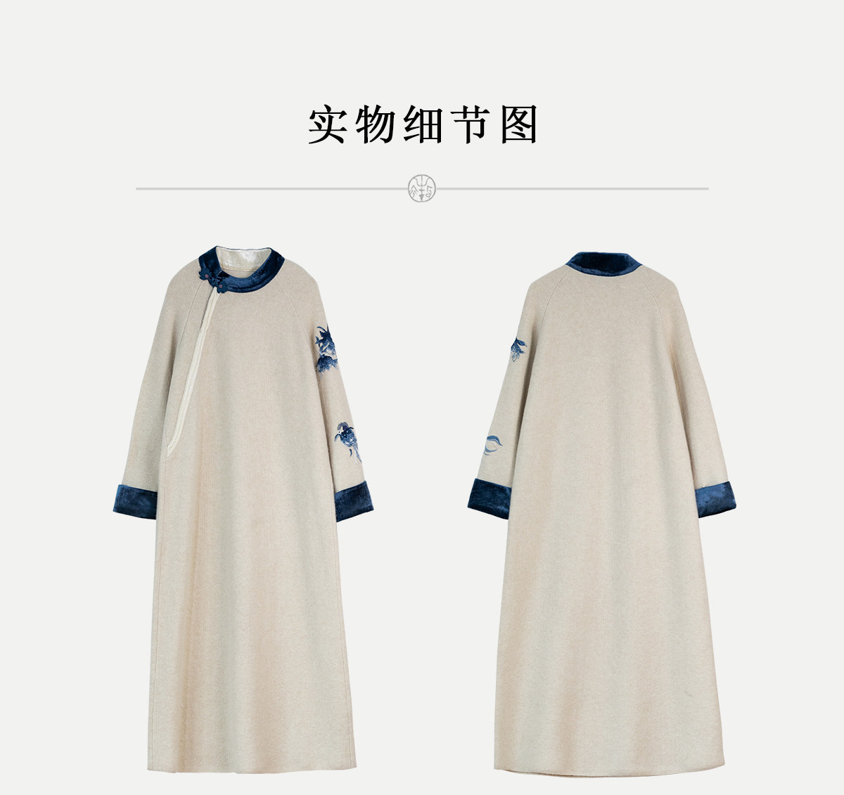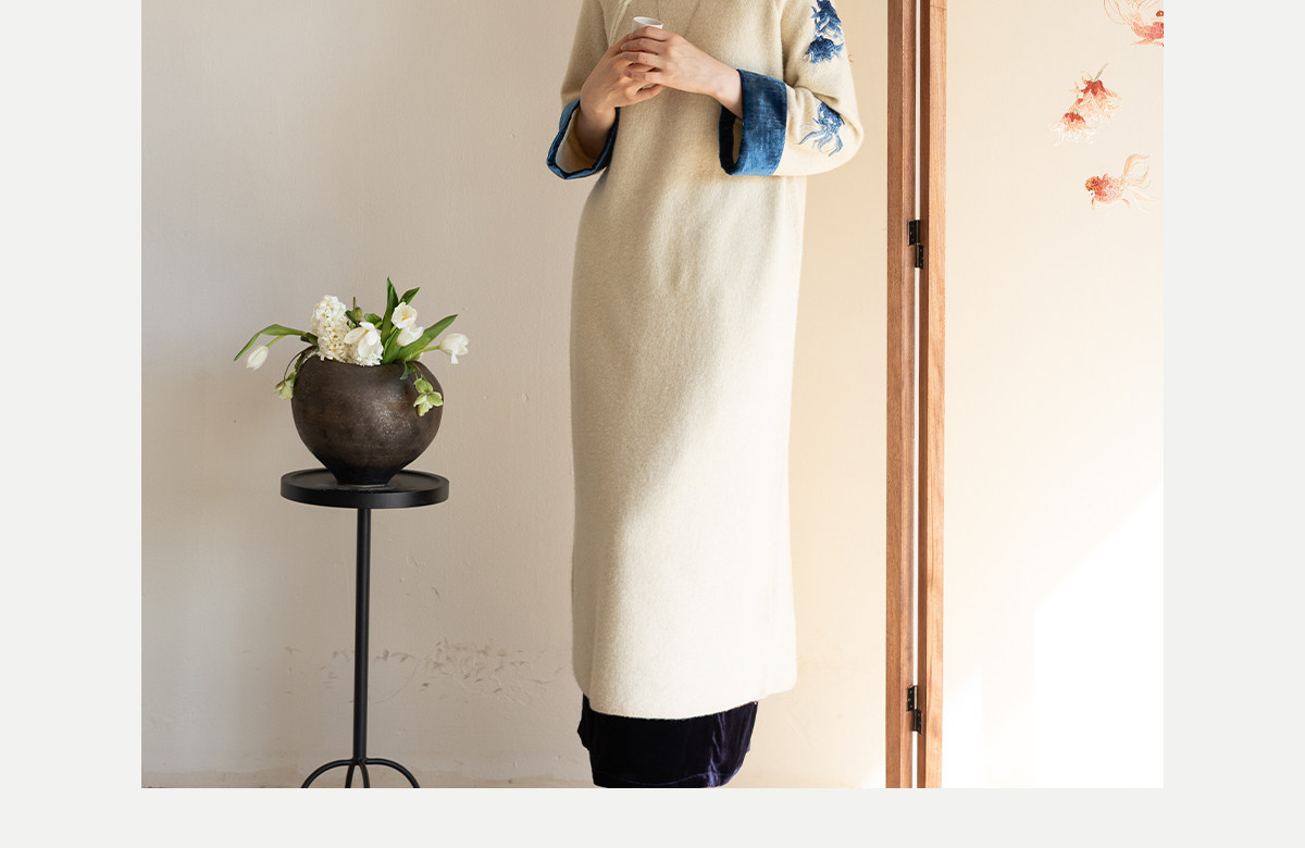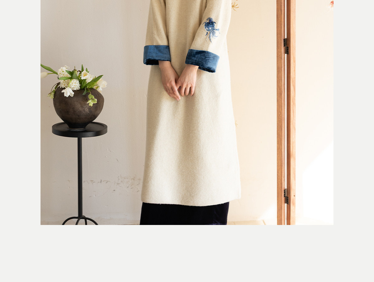 牧衣游原创 手工刺绣羊毛牛绒混织毛织连衣裙古朴改良旗袍茶服 霁