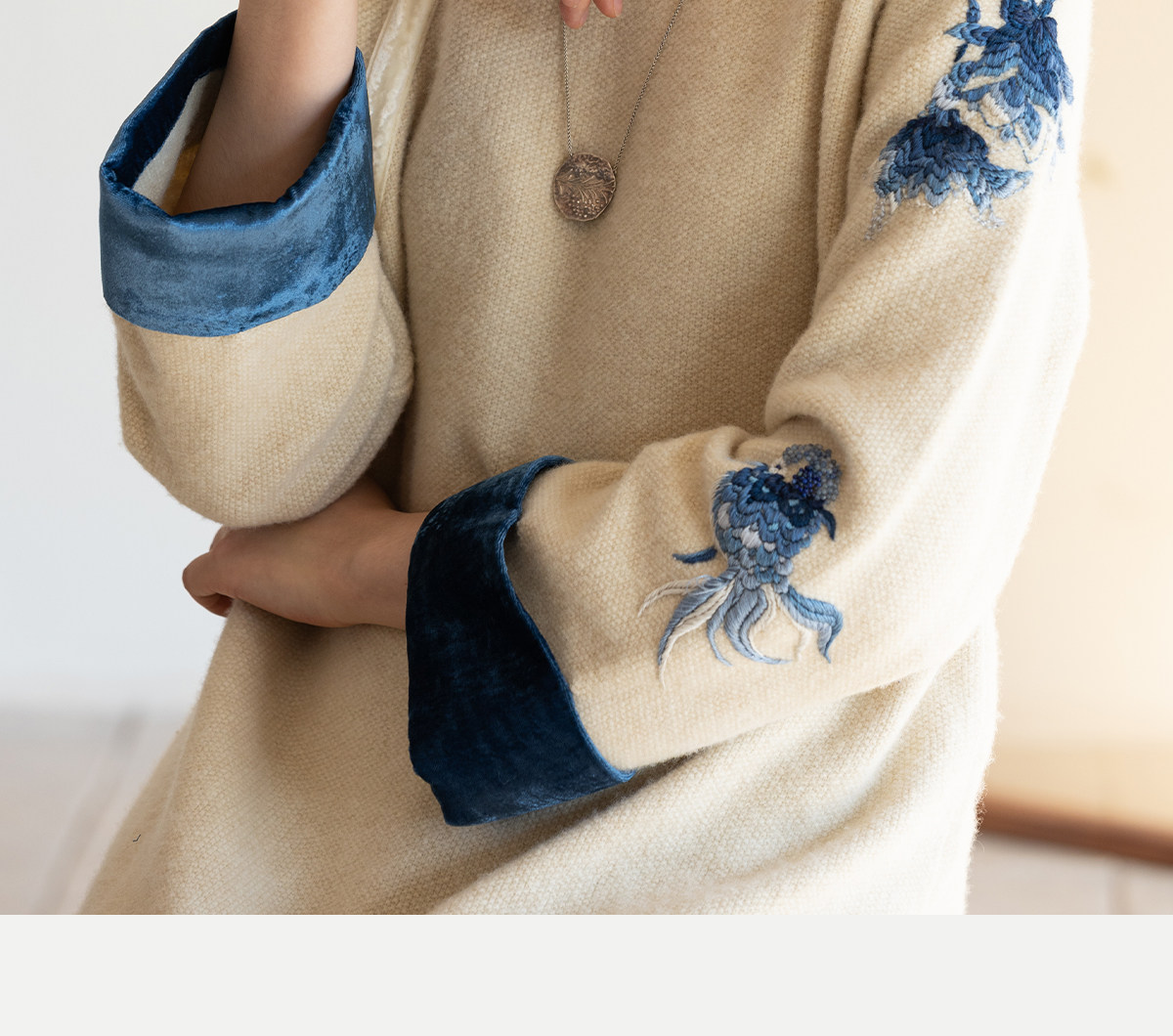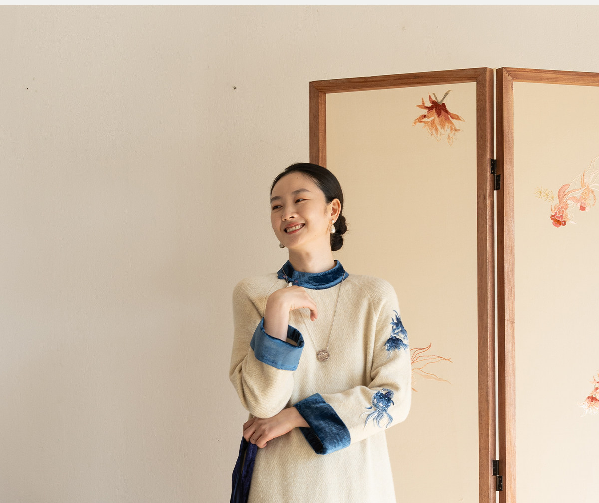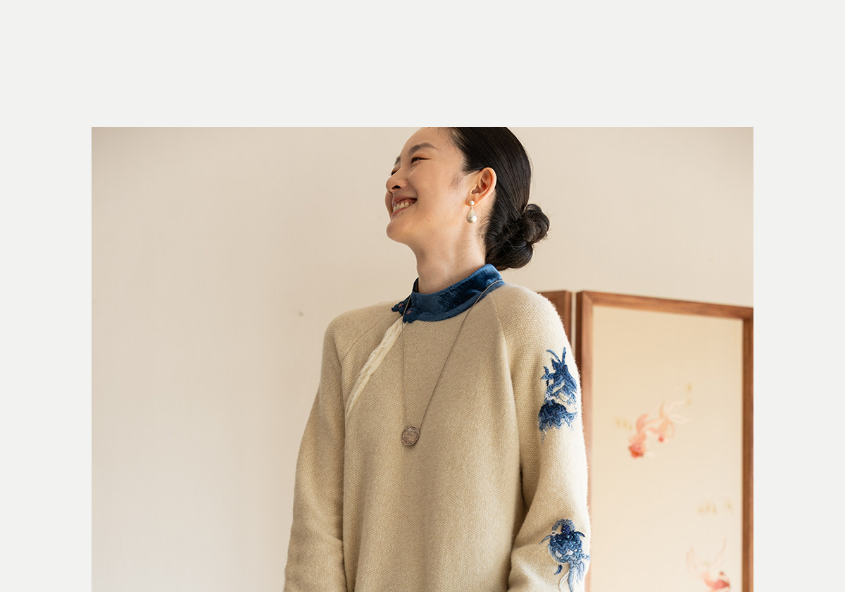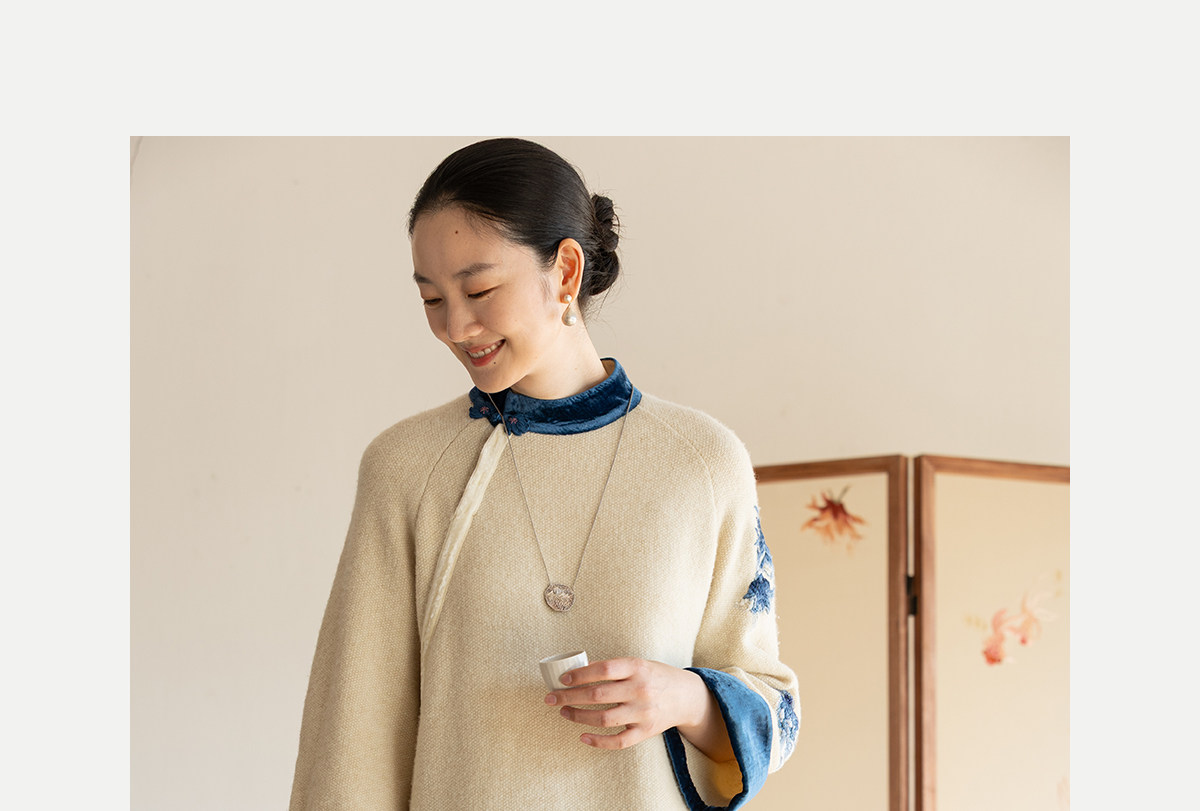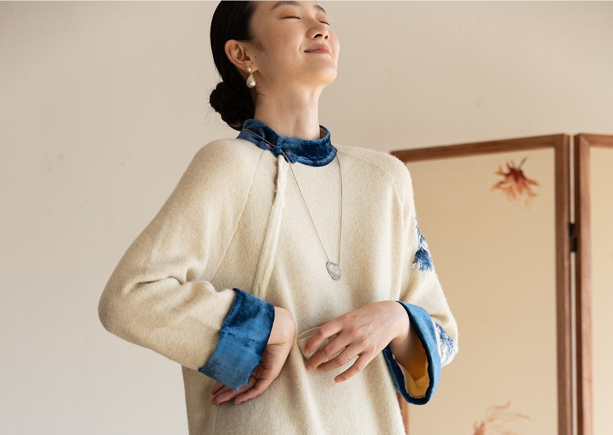 牧衣游原创 手工刺绣羊毛牛绒混织毛织连衣裙古朴改良旗袍茶服 霁