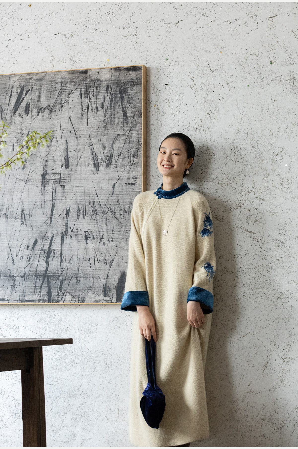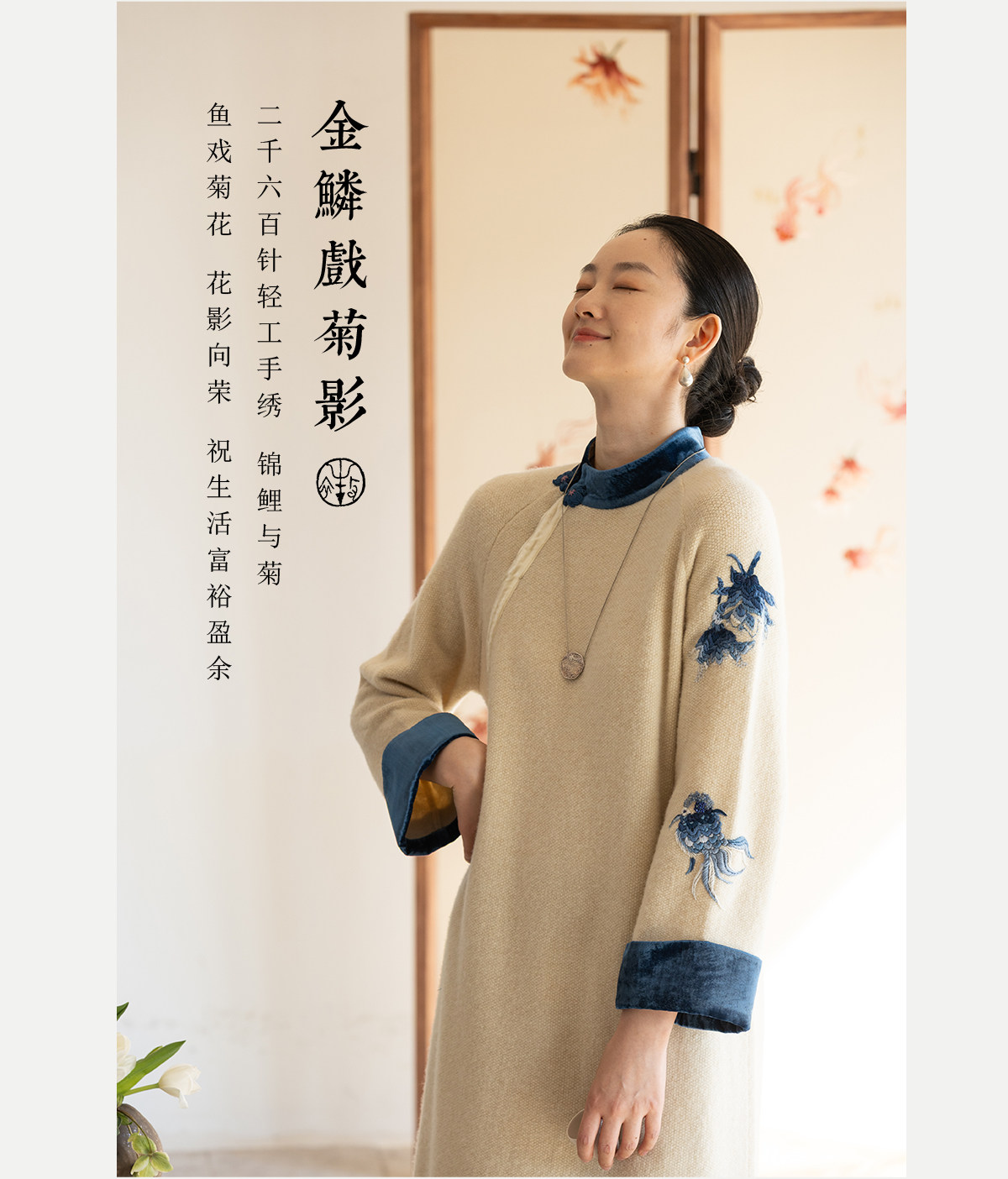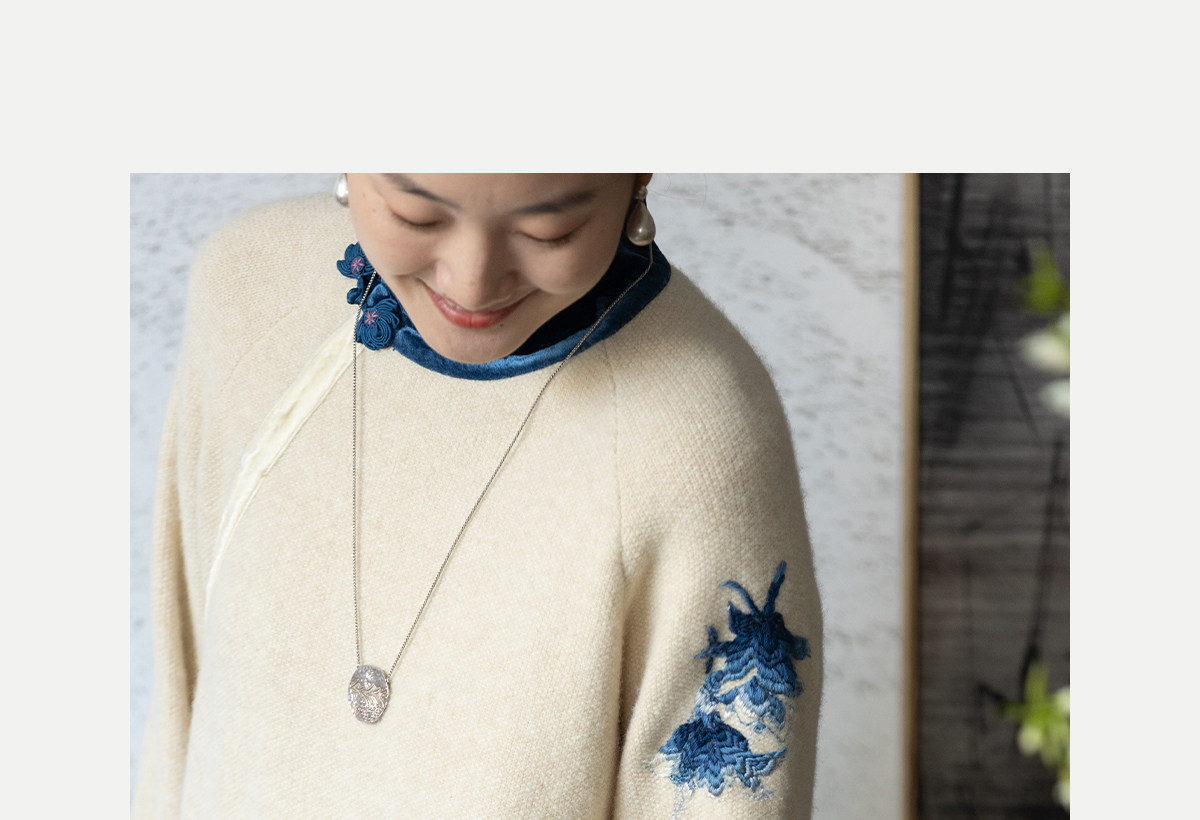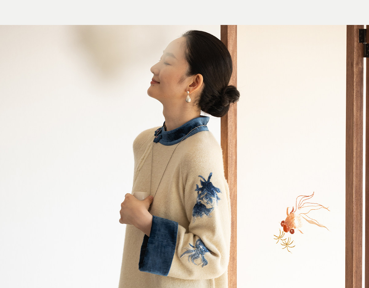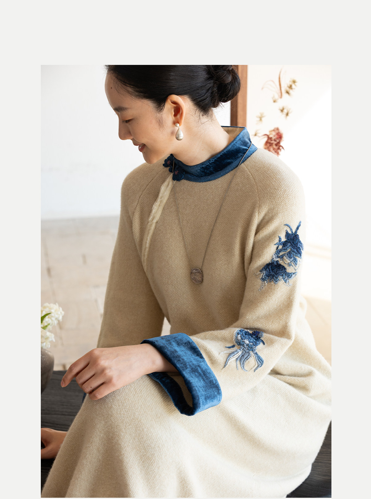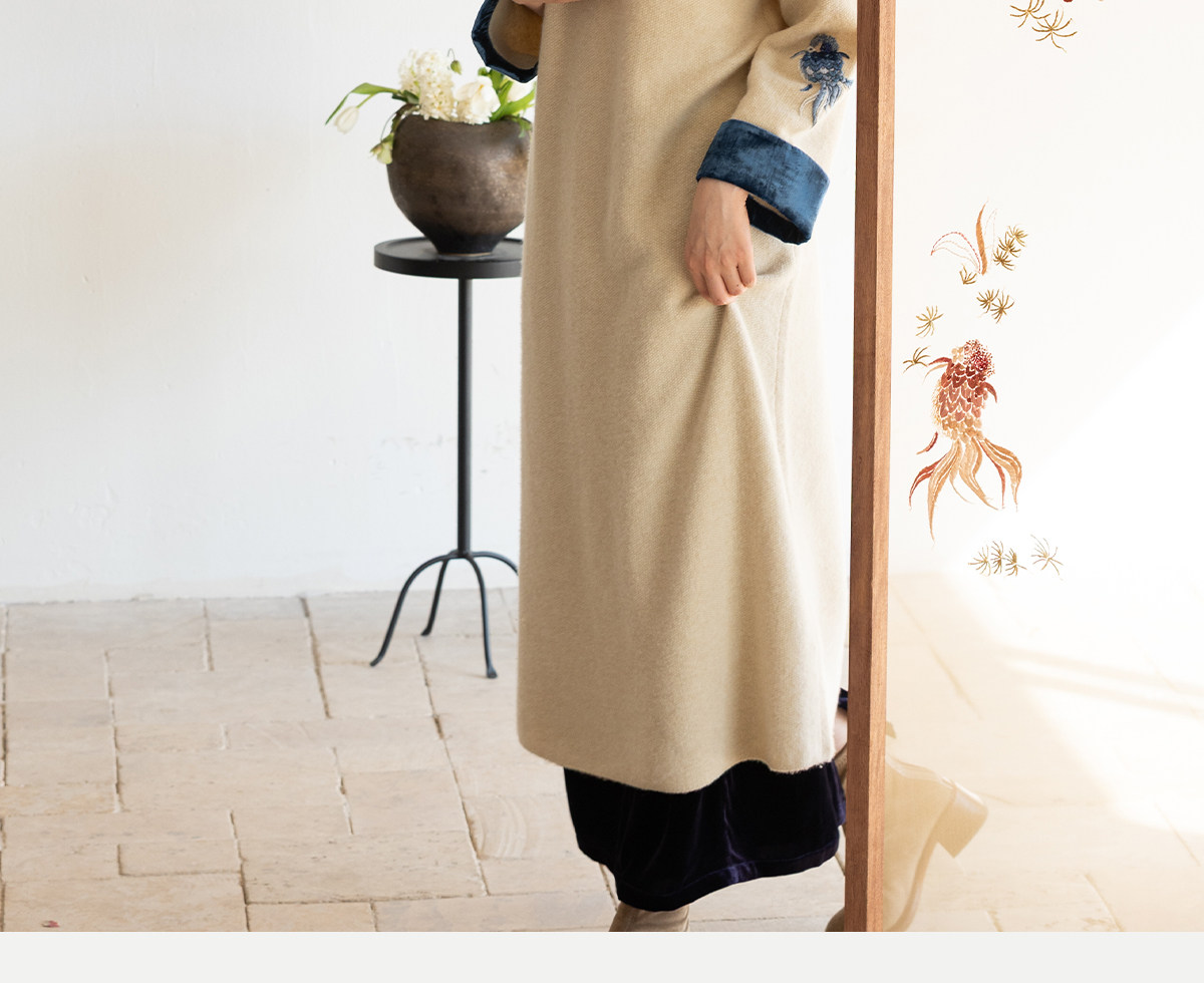 牧衣游原创 手工刺绣羊毛牛绒混织毛织连衣裙古朴改良旗袍茶服 霁