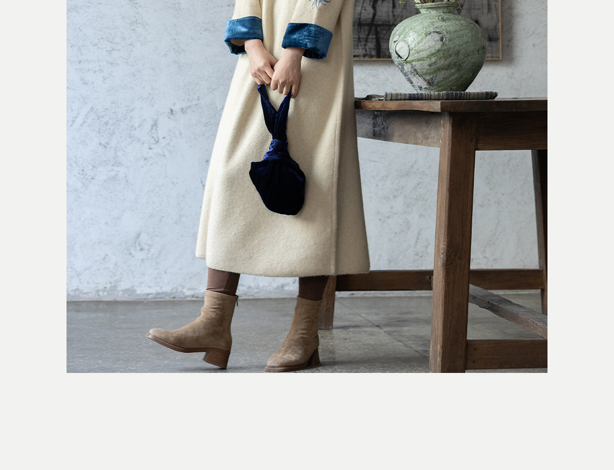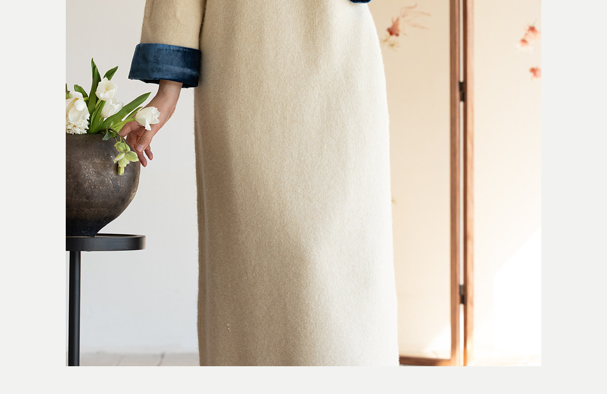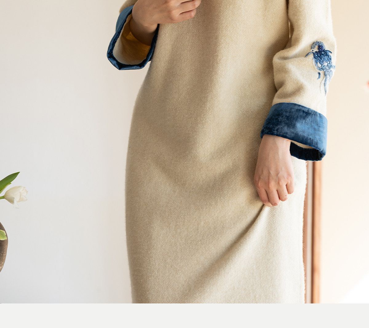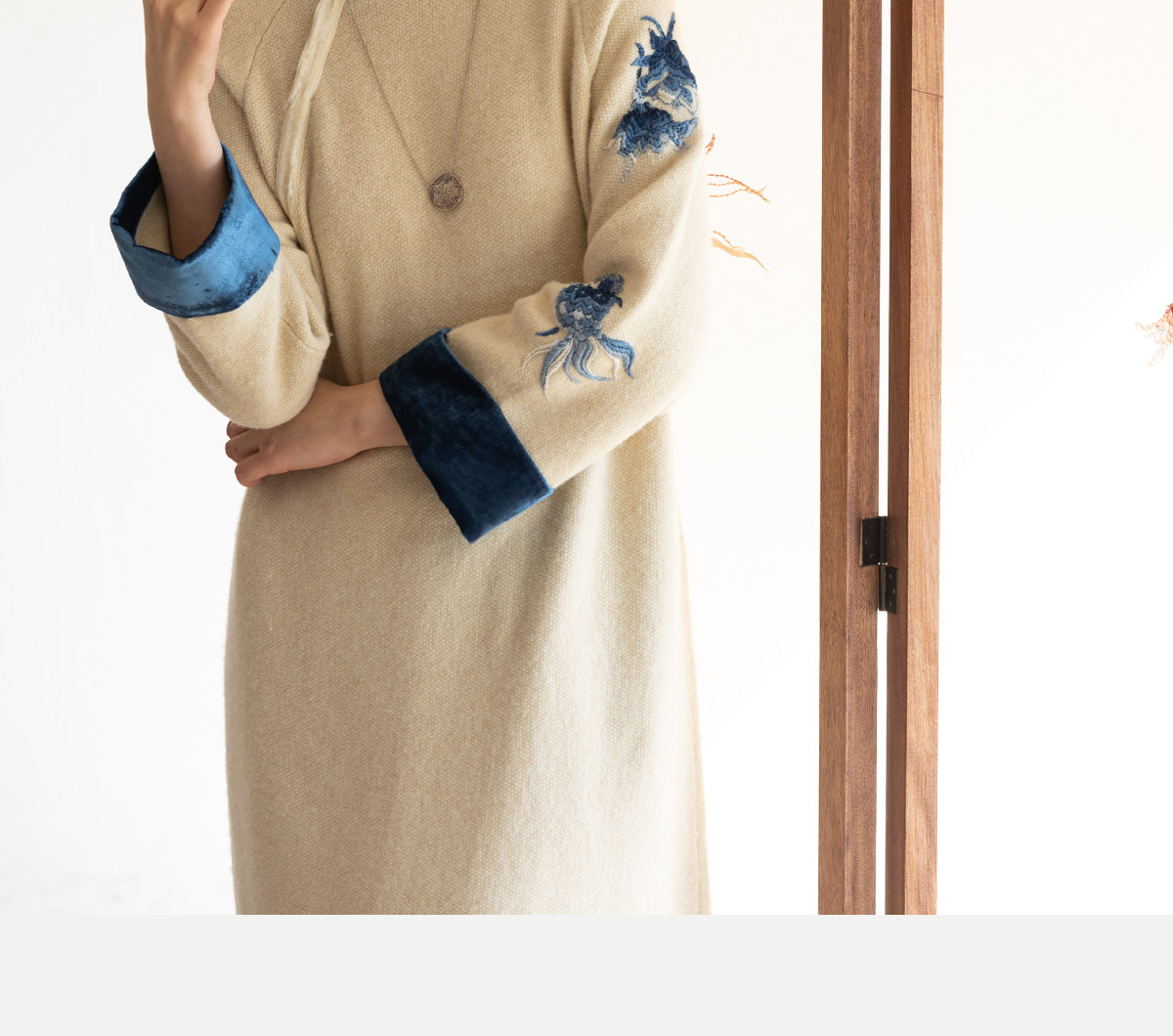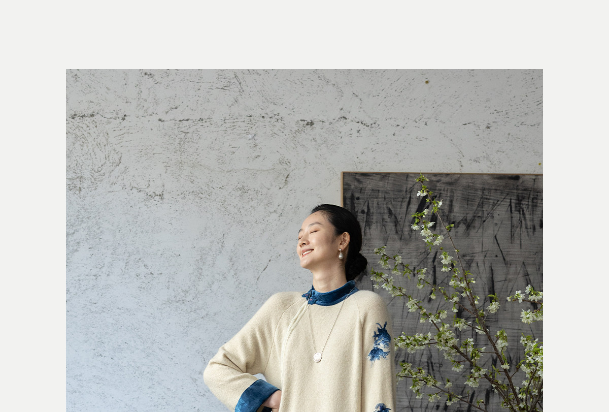 牧衣游原创 手工刺绣羊毛牛绒混织毛织连衣裙古朴改良旗袍茶服 霁