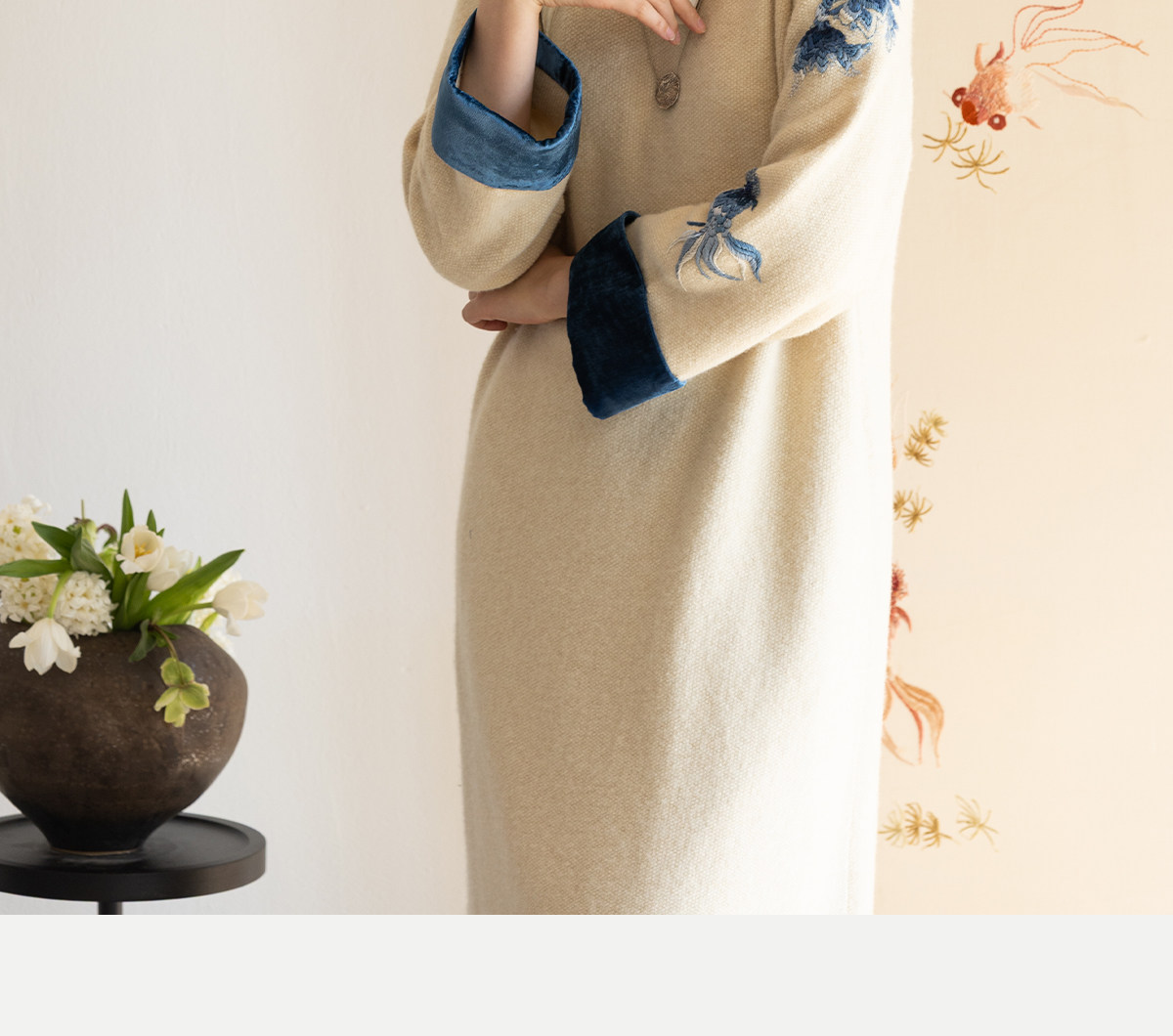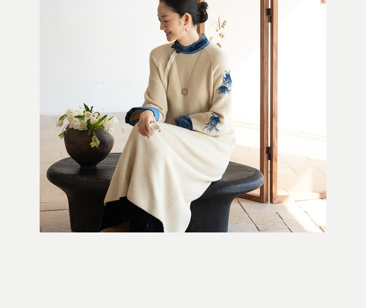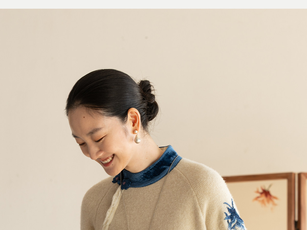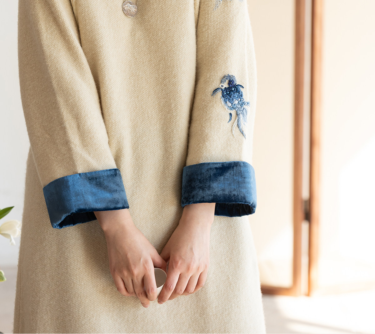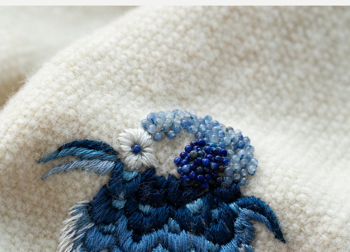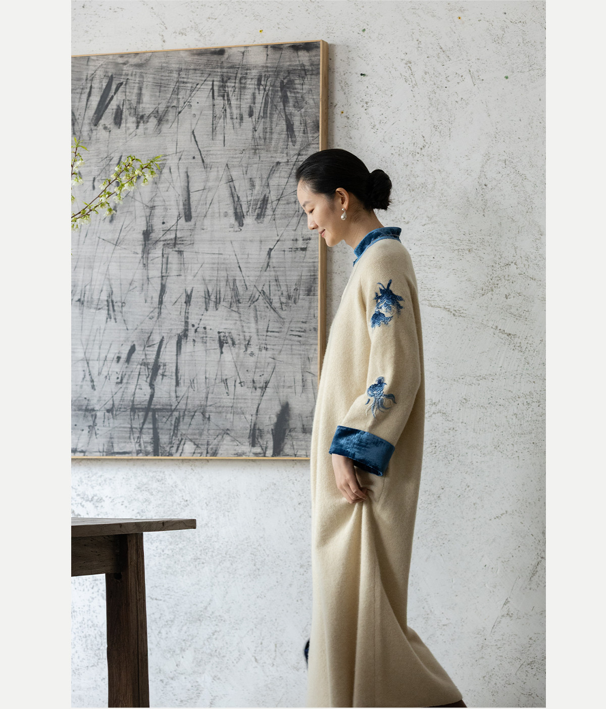 牧衣游原创 手工刺绣羊毛牛绒混织毛织连衣裙古朴改良旗袍茶服 霁