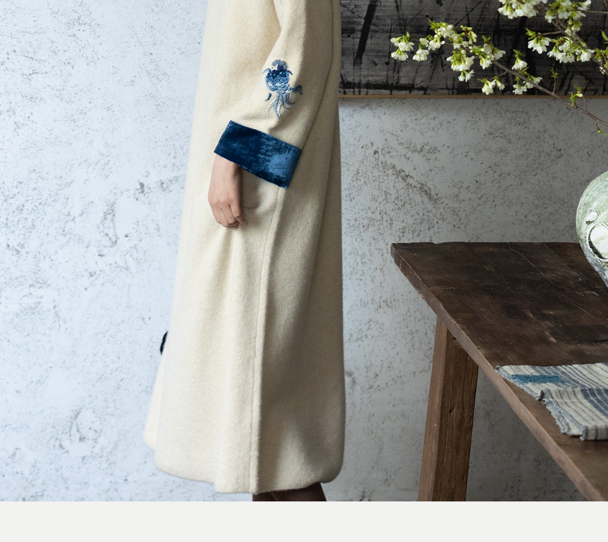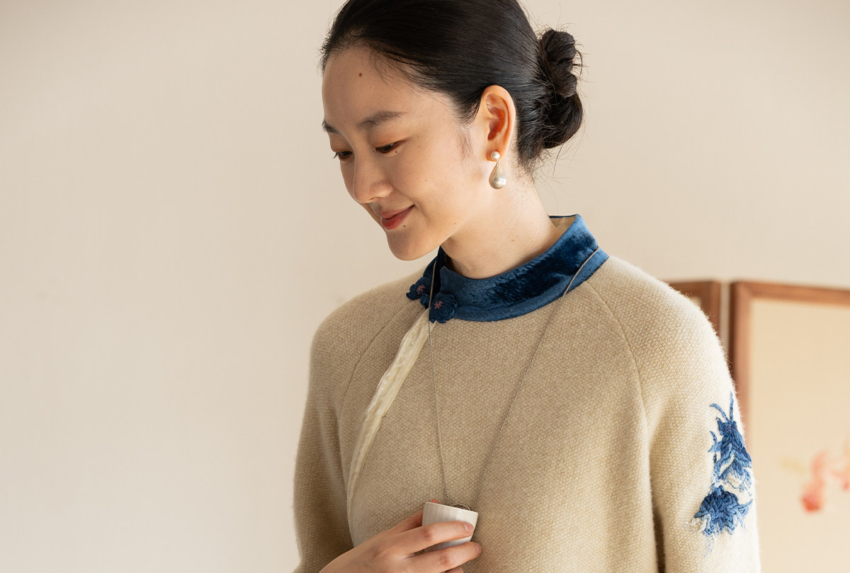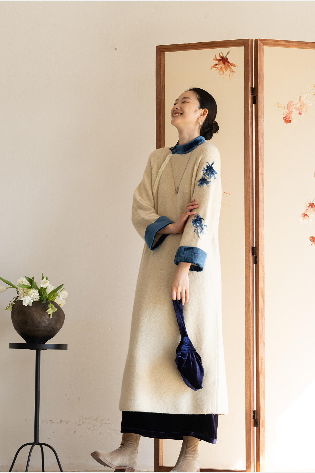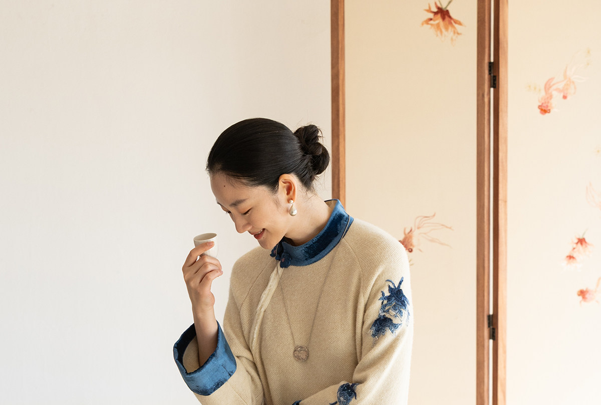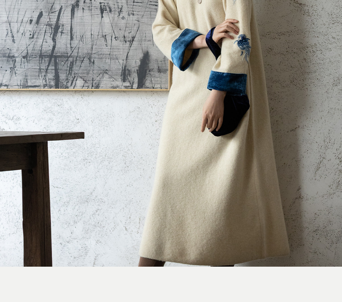 牧衣游原创 手工刺绣羊毛牛绒混织毛织连衣裙古朴改良旗袍茶服 霁