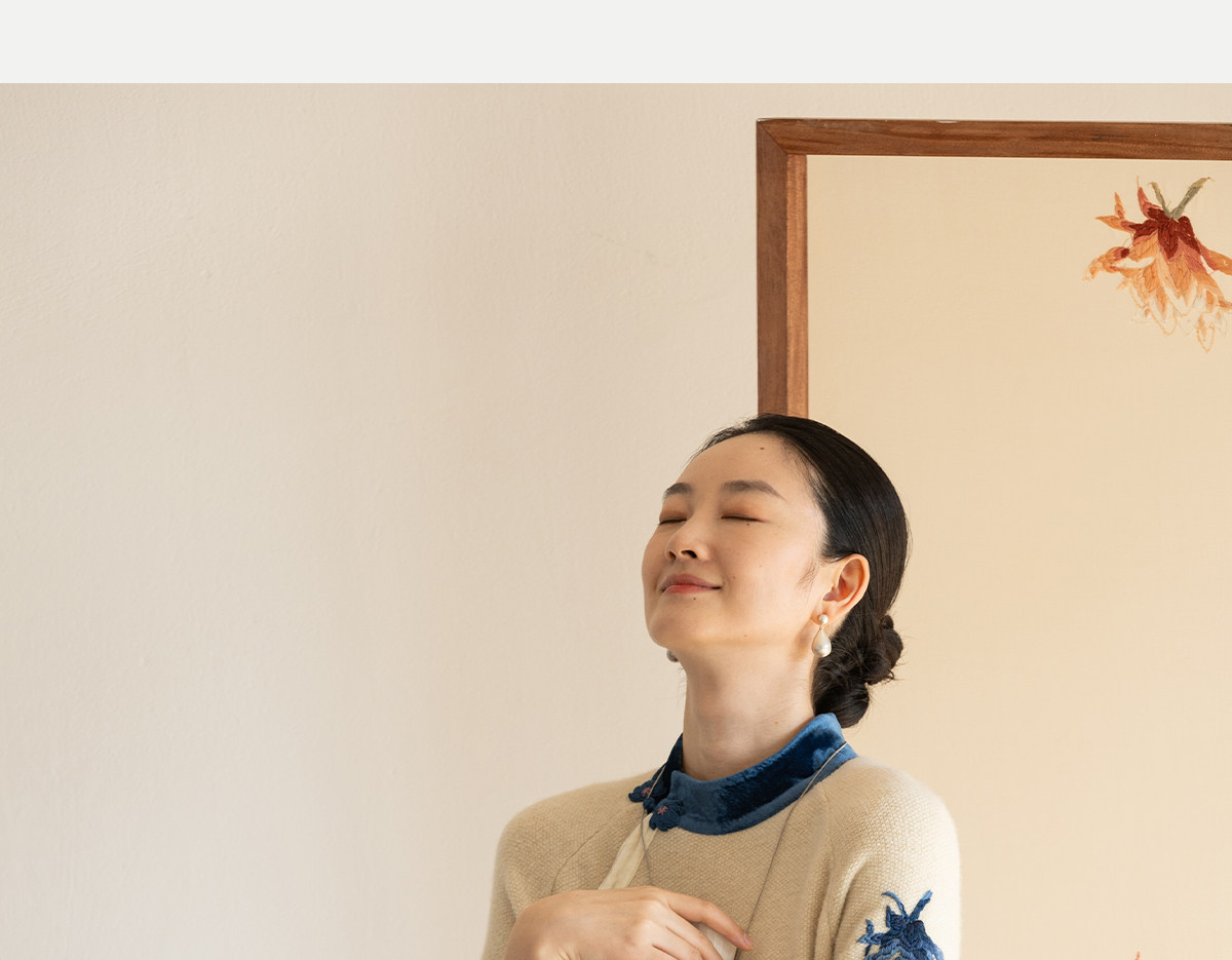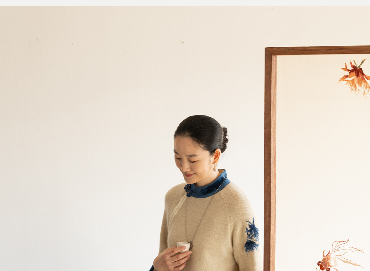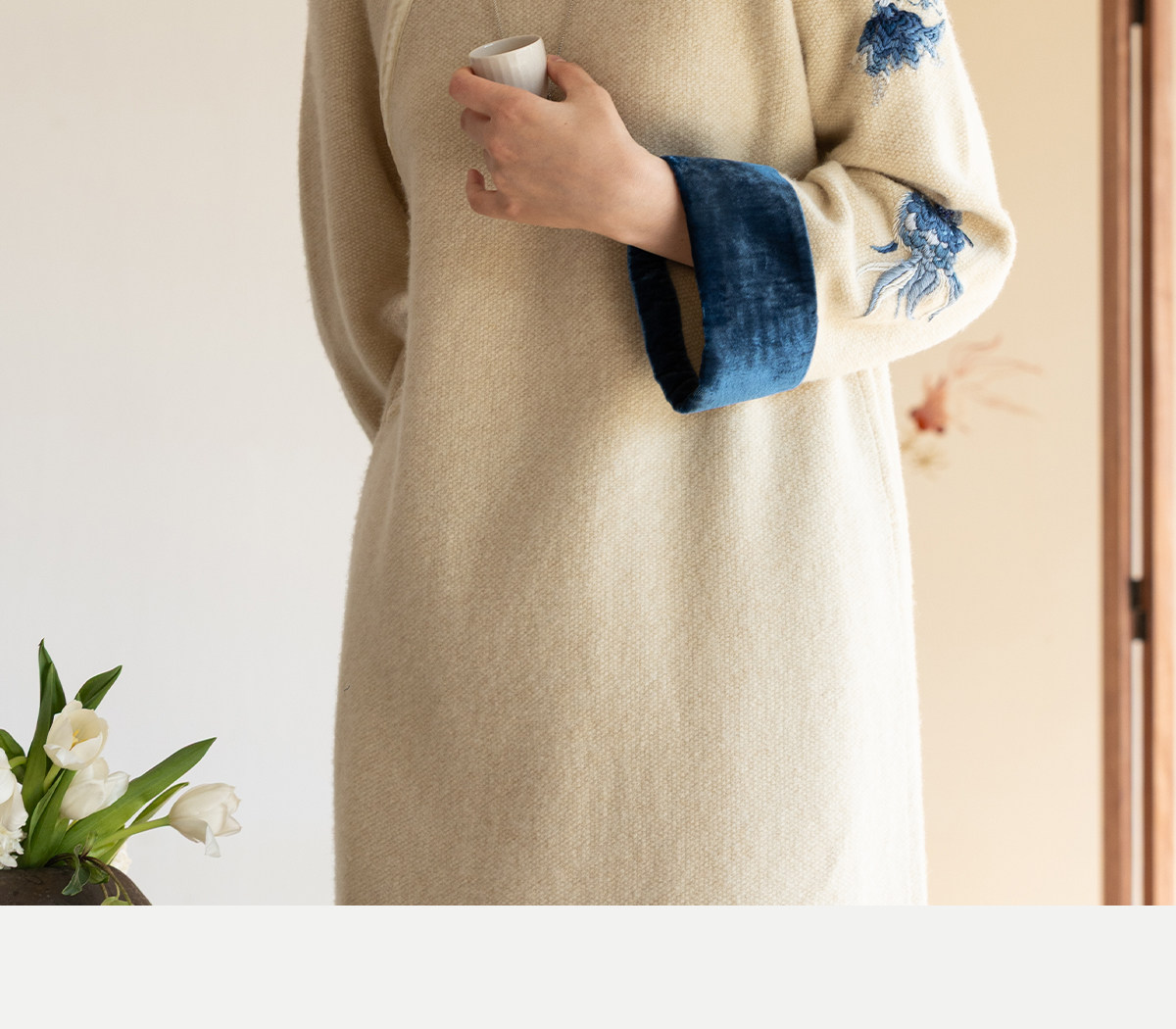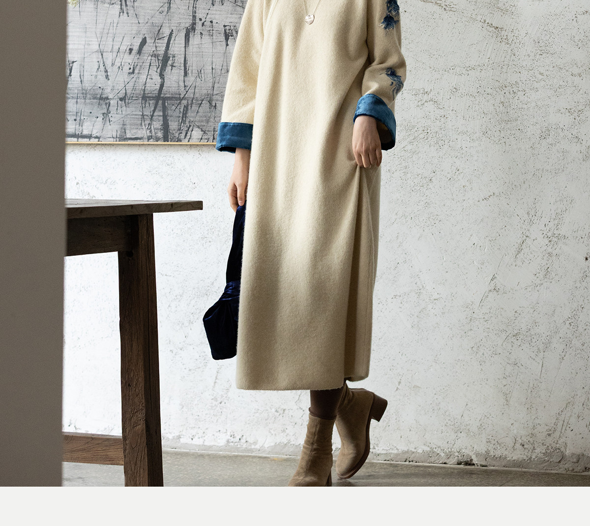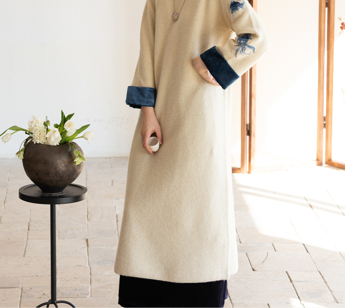 牧衣游原创 手工刺绣羊毛牛绒混织毛织连衣裙古朴改良旗袍茶服 霁