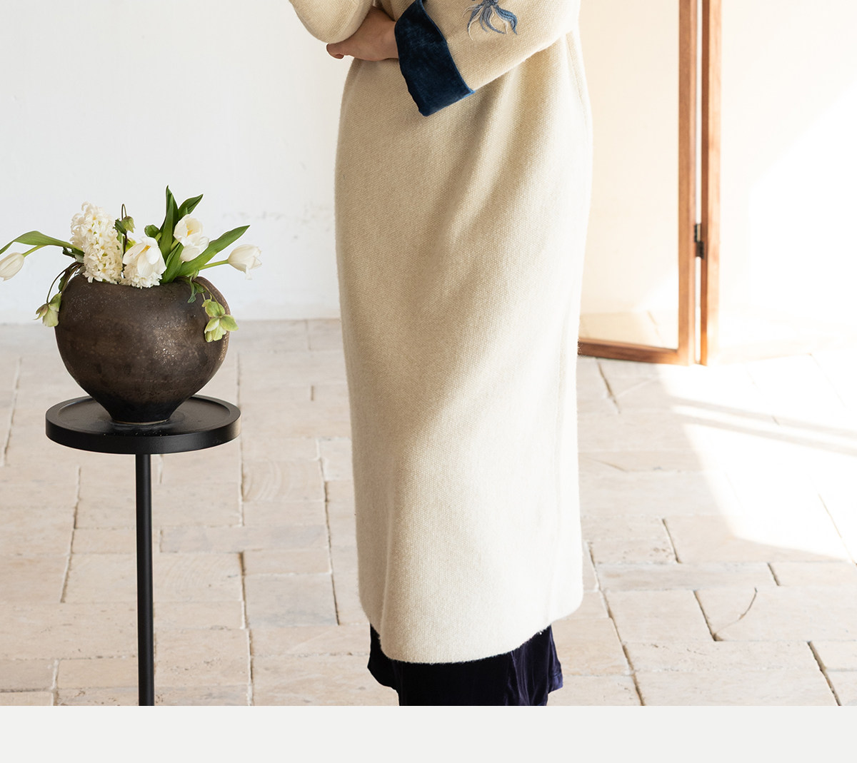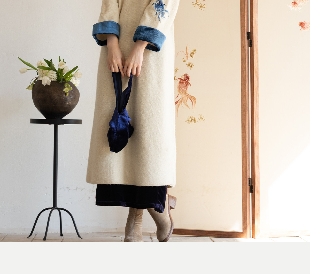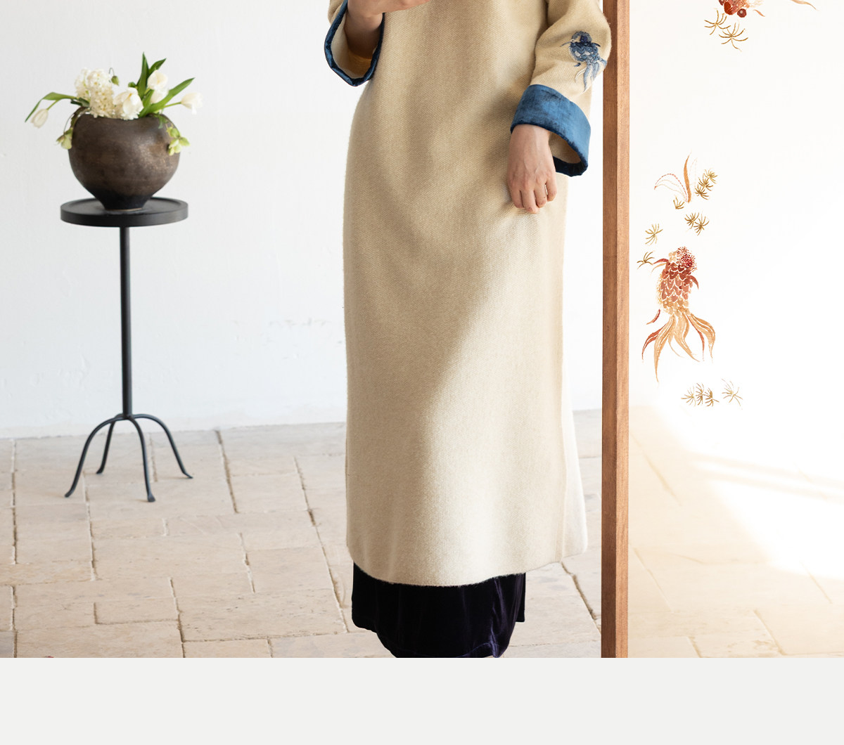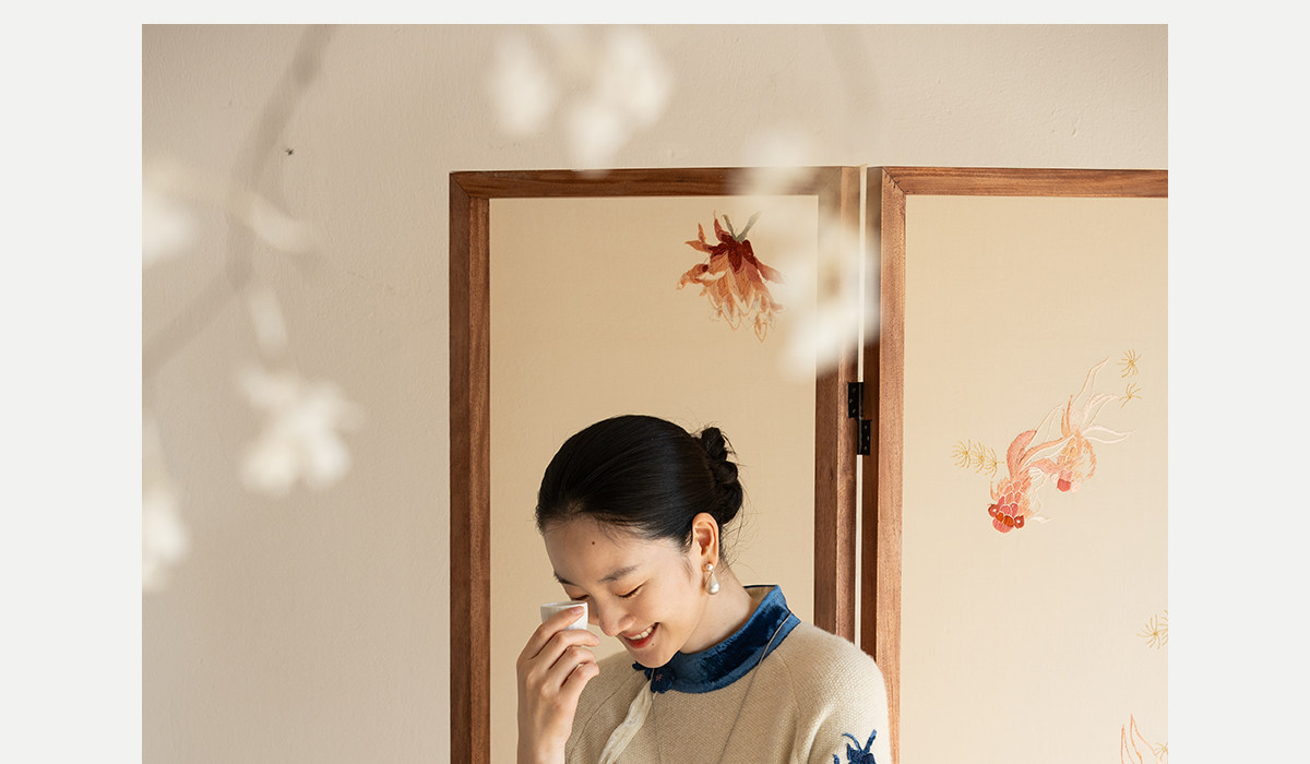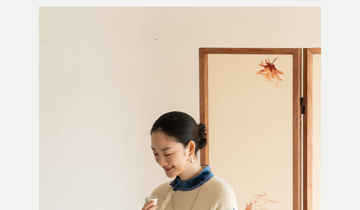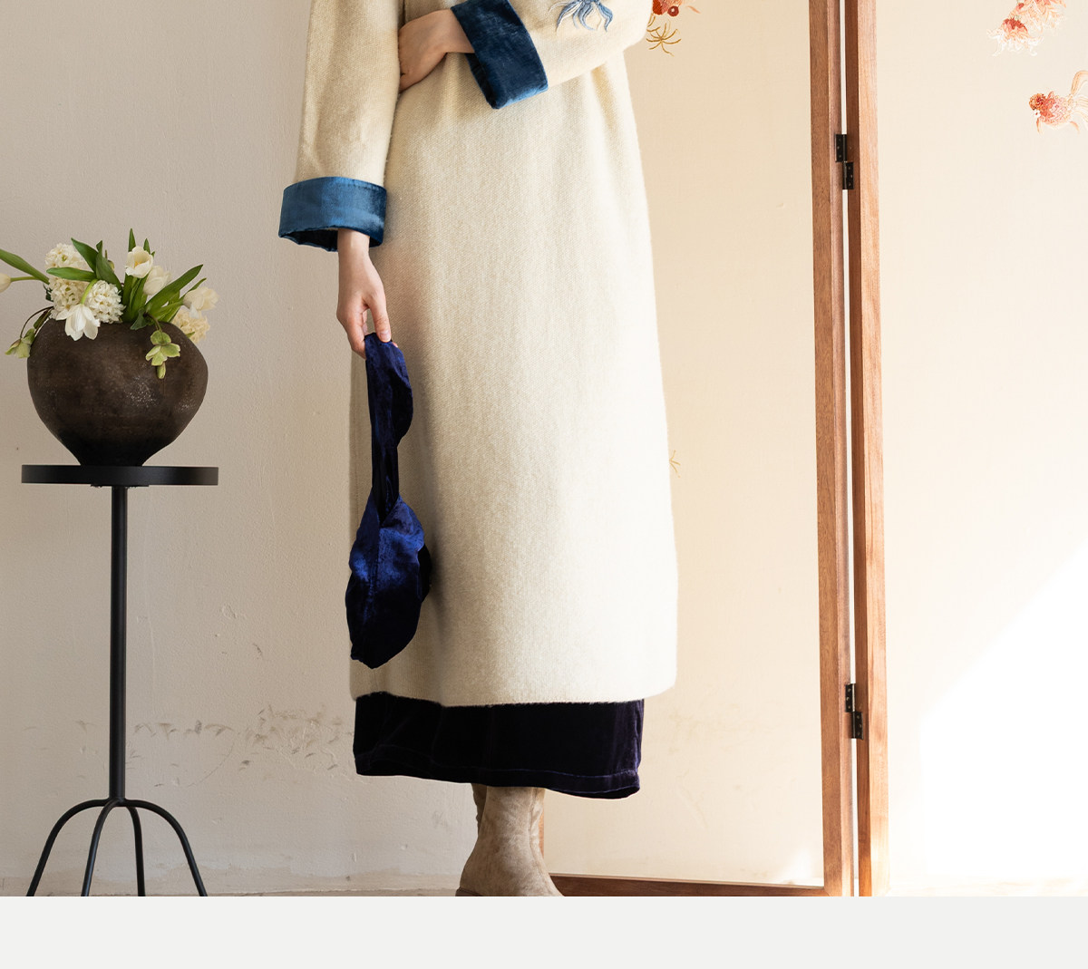 牧衣游原创 手工刺绣羊毛牛绒混织毛织连衣裙古朴改良旗袍茶服 霁