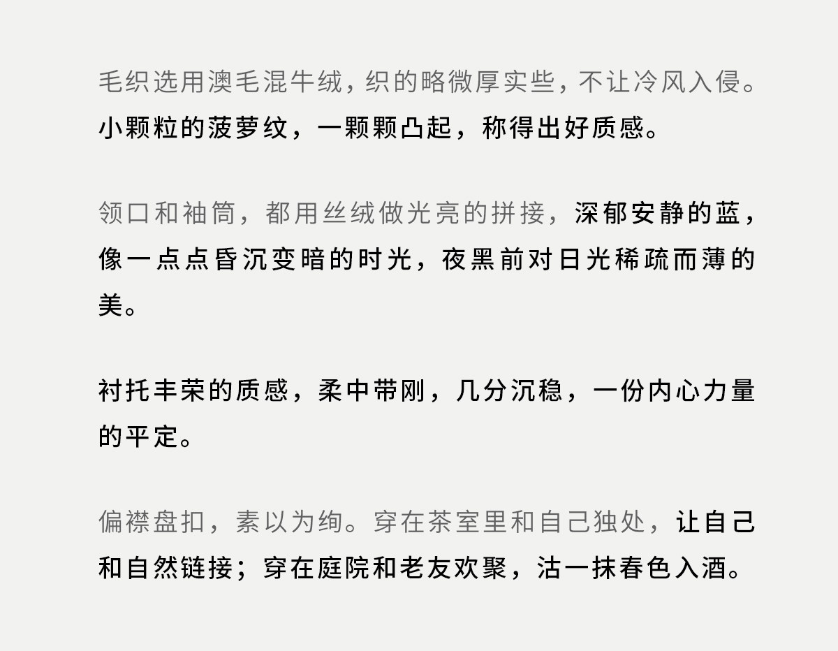 - 让内心温暖,让情感自由。坚持传统的手工作物,坚持匠心的制作精神。
