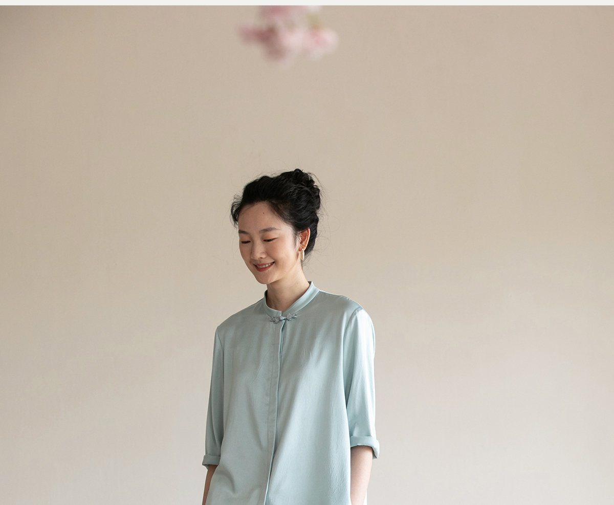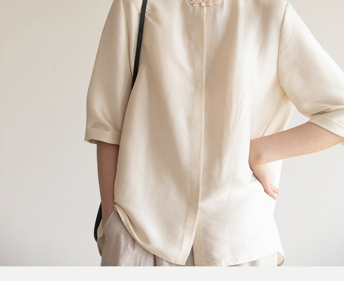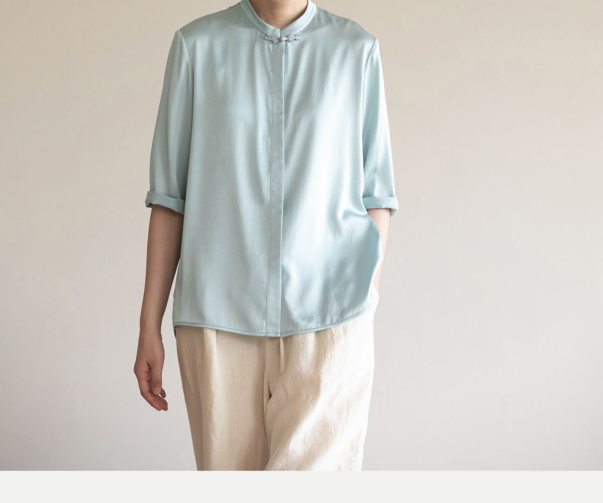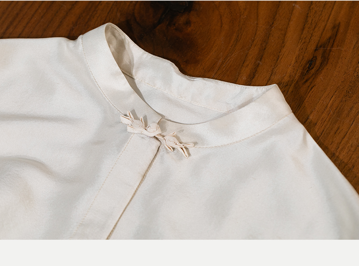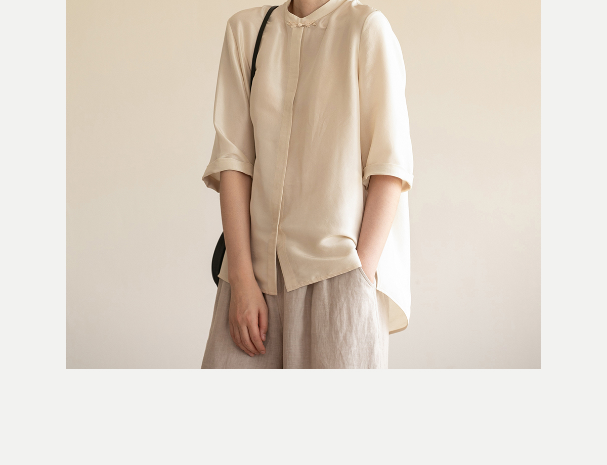 牧衣游原创 重磅22姆米桑蚕丝中式风炒色衬衫立领轻薄复古衬衣 沐