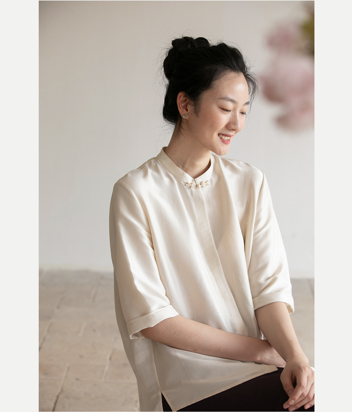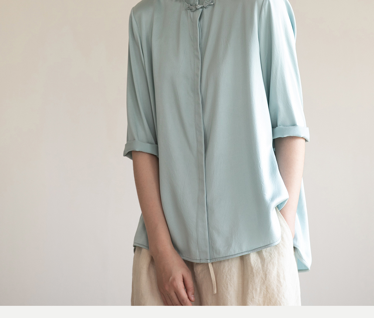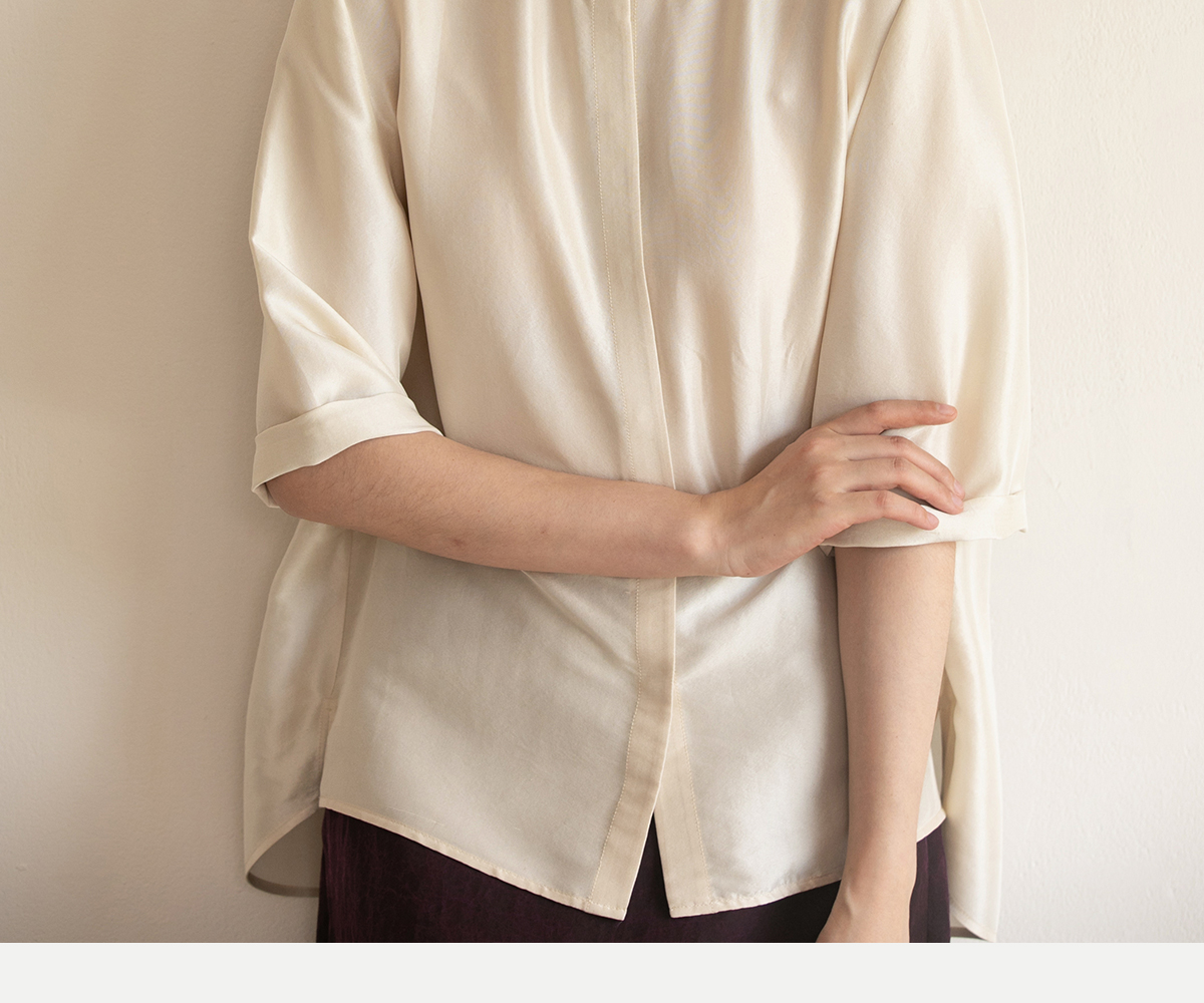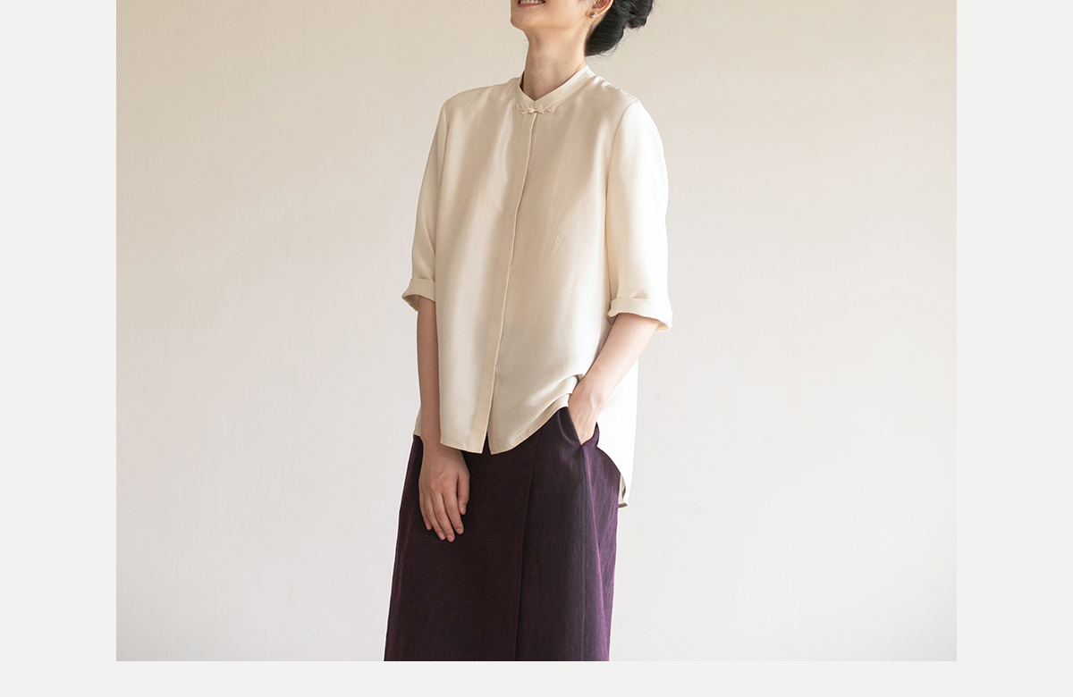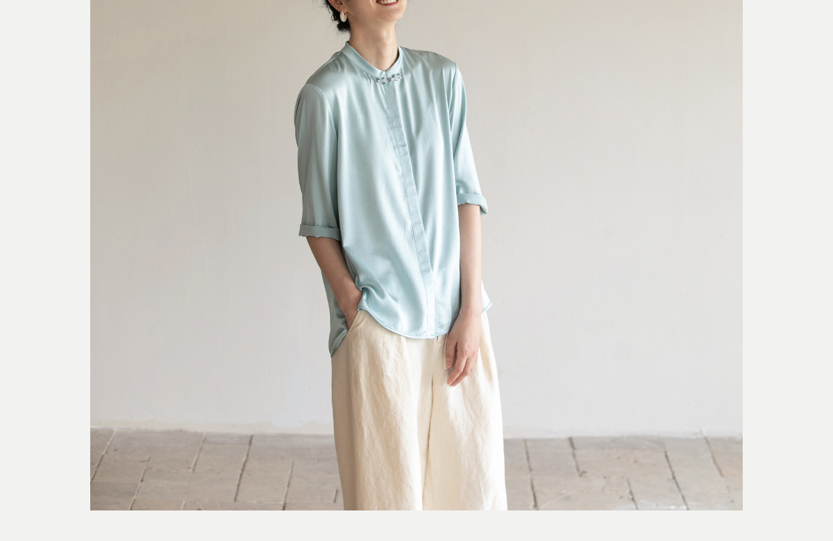 牧衣游原创 重磅22姆米桑蚕丝中式风炒色衬衫立领轻薄复古衬衣 沐