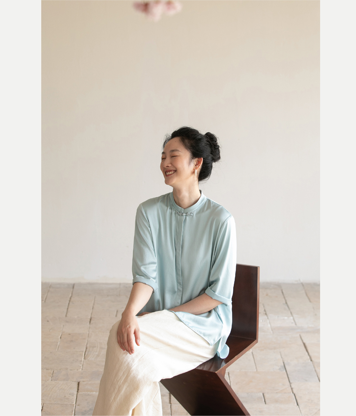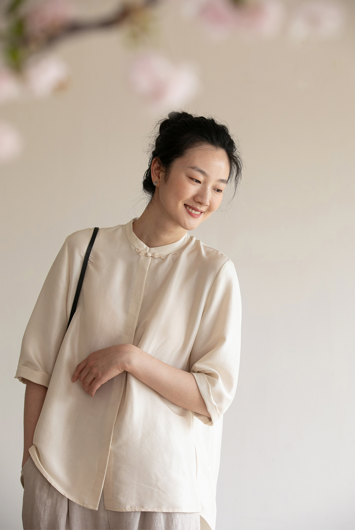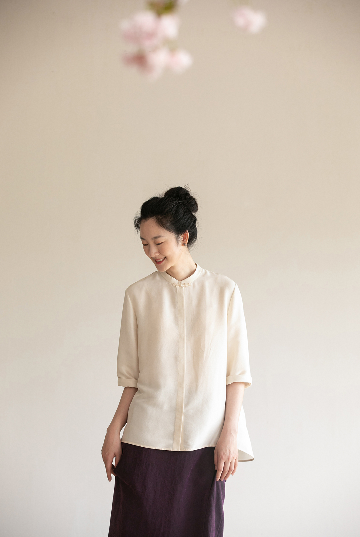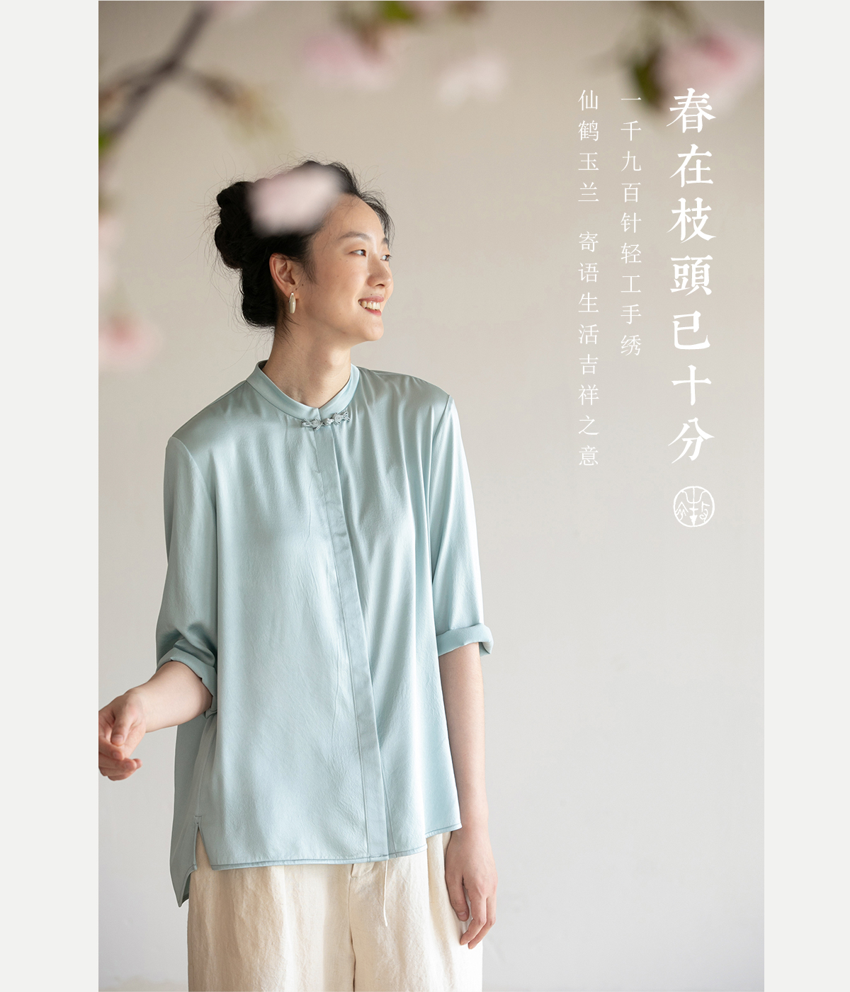 牧衣游原创 重磅22姆米桑蚕丝中式风炒色衬衫立领轻薄复古衬衣 沐