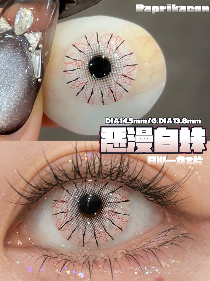 paprikacon 恶漫白蛛 日抛 2片 14.5mm 参考着色13.8 基弧8.5 含水40% 新锐国货