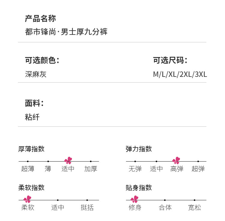 都市丽人都市锋尚基础系列强暖负15至负5度男士厚九分裤一体无缝面料中双层裤打底裤FL24A3