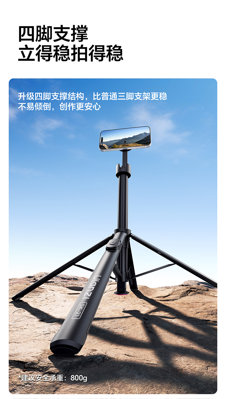 Ulanzi优篮子 SK-21一键开合磁吸自拍杆magsafe手机支架适用苹果17安卓拍照直播旅游落地三脚架vlog拍摄神器