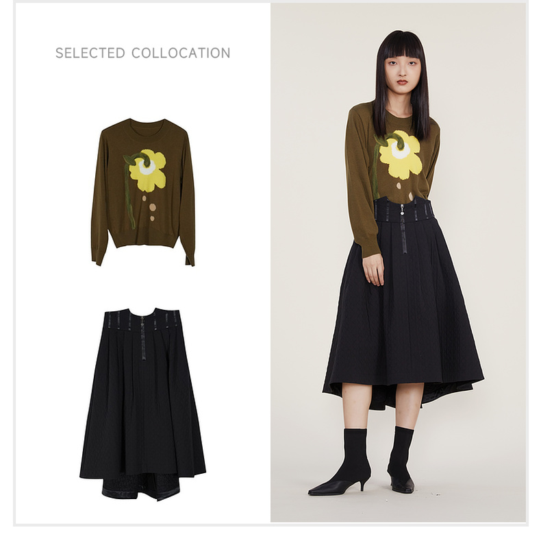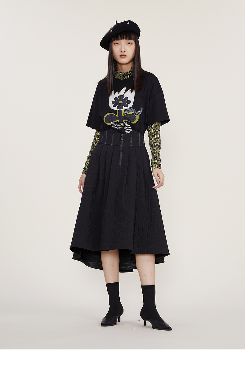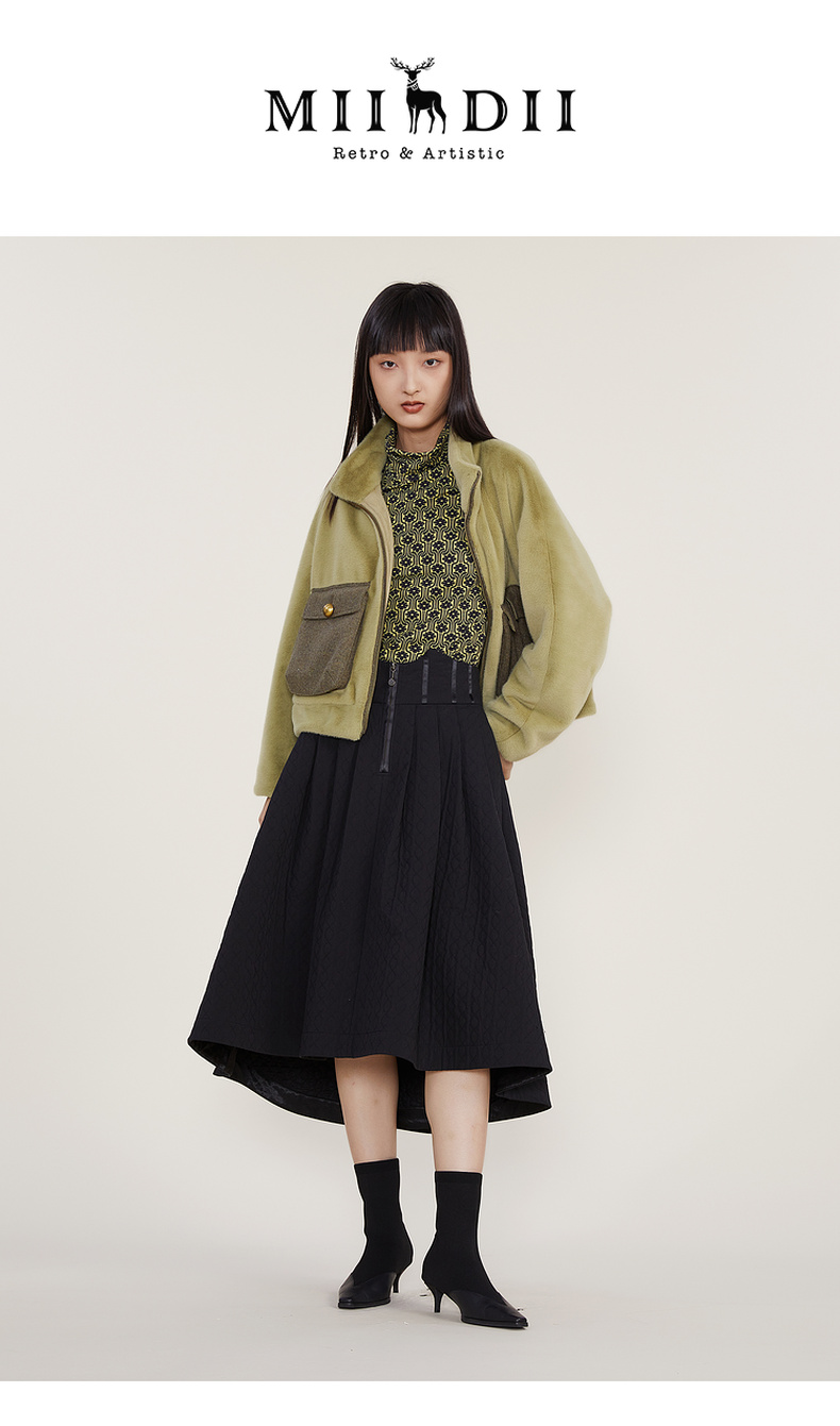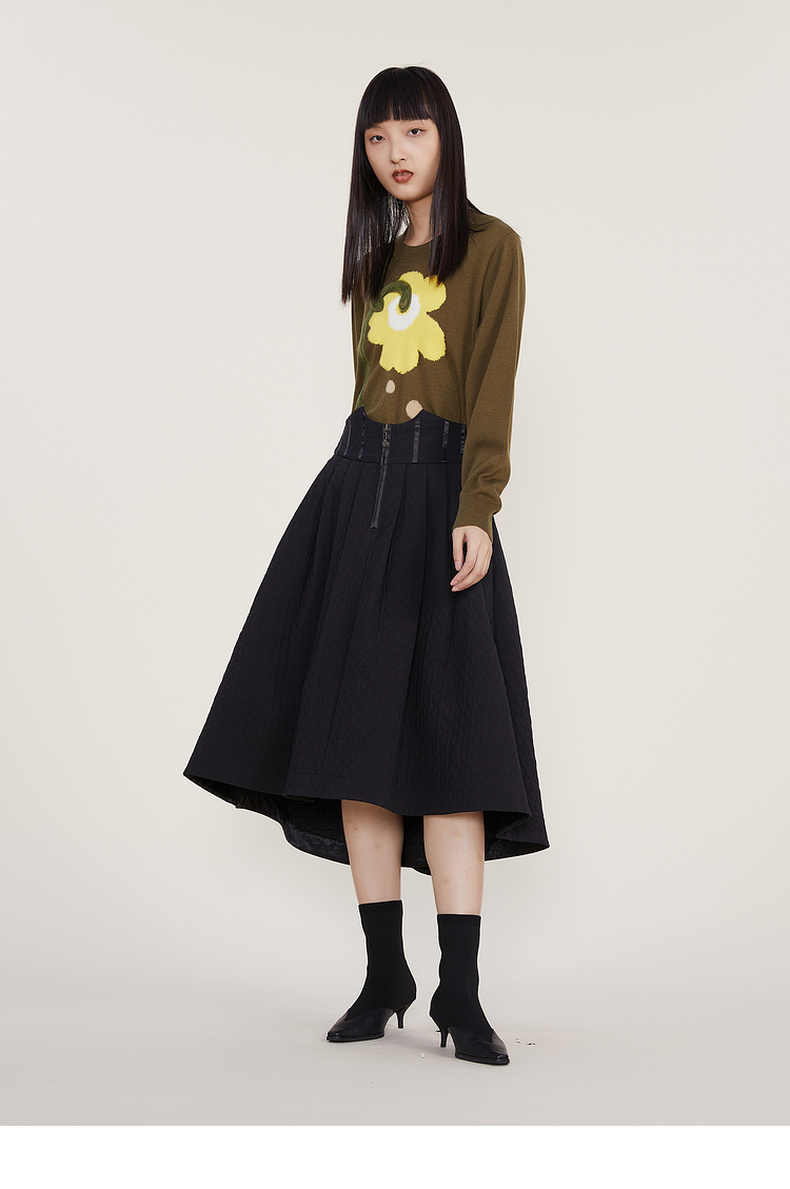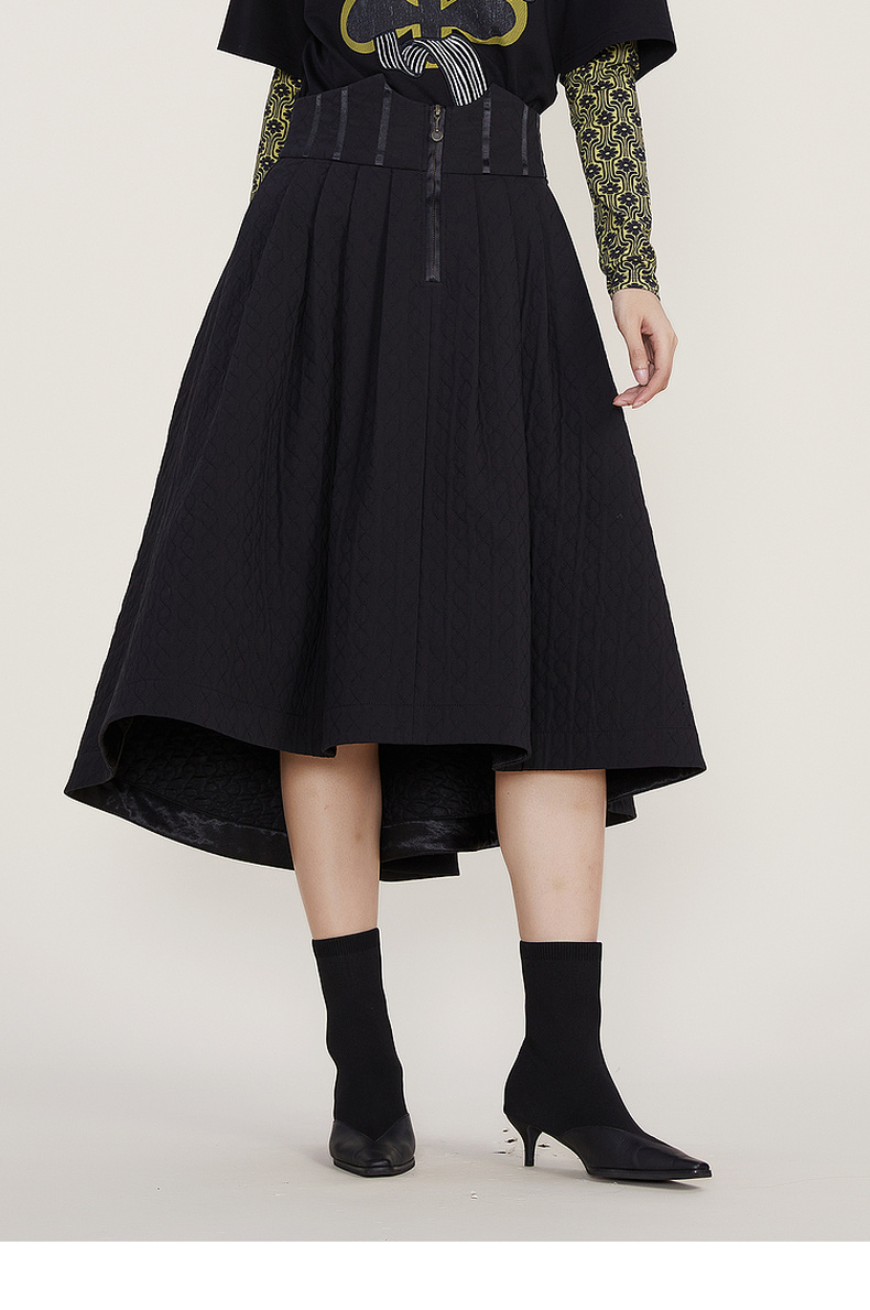 谜底2022冬季新款半身裙女复古裥棉A型高腰半裙中长裙224MB1673