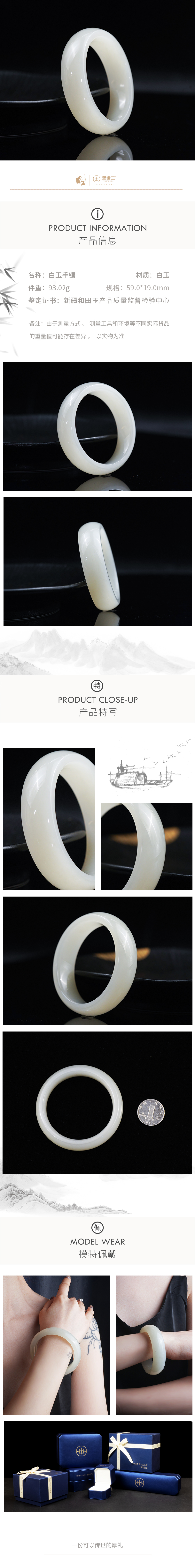 新疆国玉盟世玉和田玉糖羊脂玉手镯59圈口【带证书·顺丰物流】