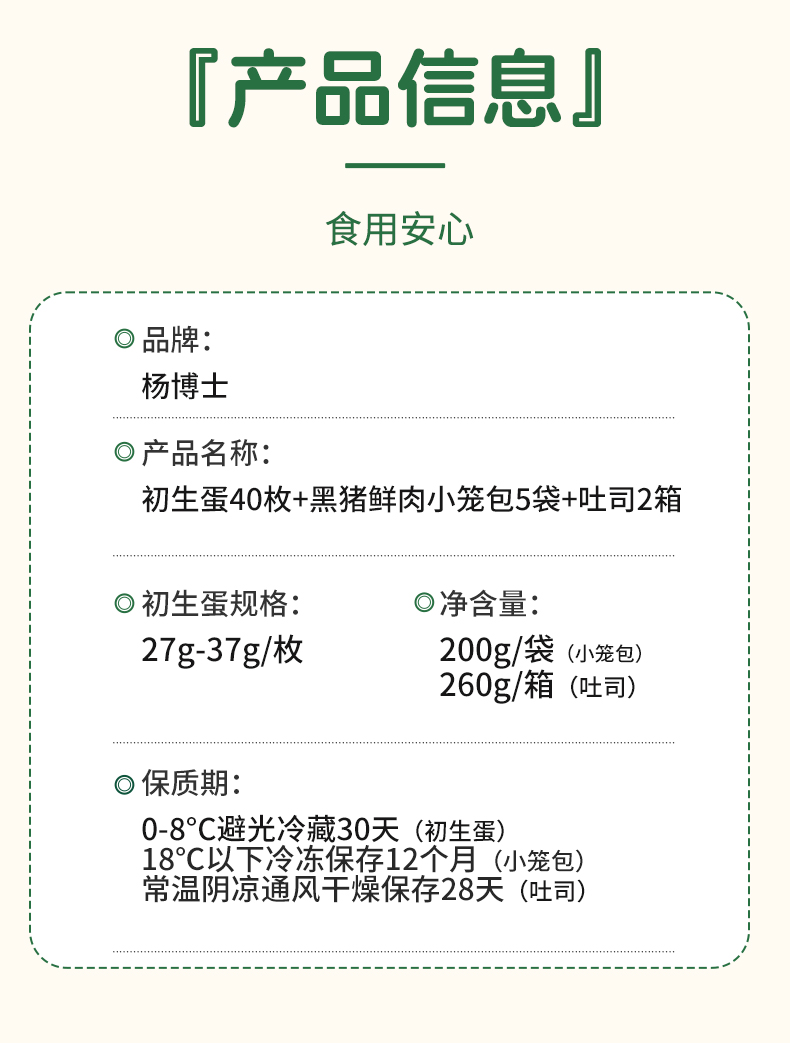 【杨博士自营 晨光三味套餐】小笼包5袋+初生蛋40枚+吐司2盒