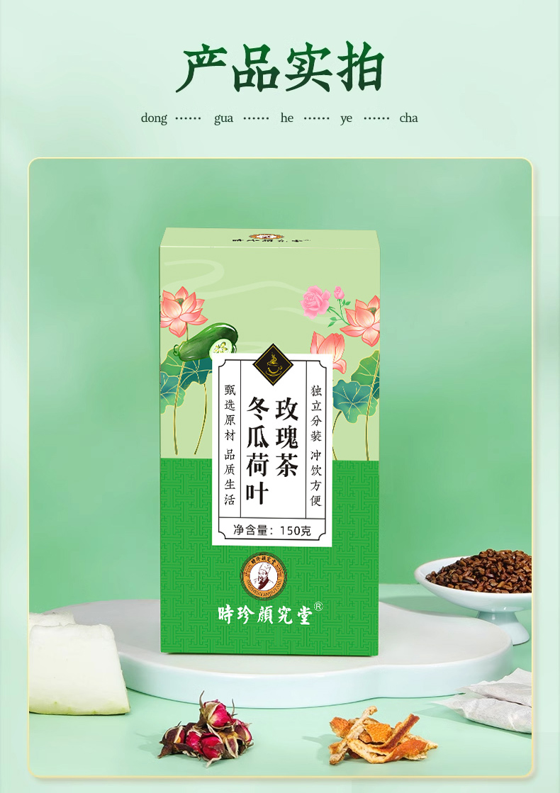 【时珍颜究堂冬瓜荷叶玫瑰茶 无惧油腻 任性嗨吃 轻松解锁新”腰“求 】大家都在买!源自于1921年药食同源 古法传承李时珍药食配方 清除油腻 清爽顺畅独立茶包150g/盒