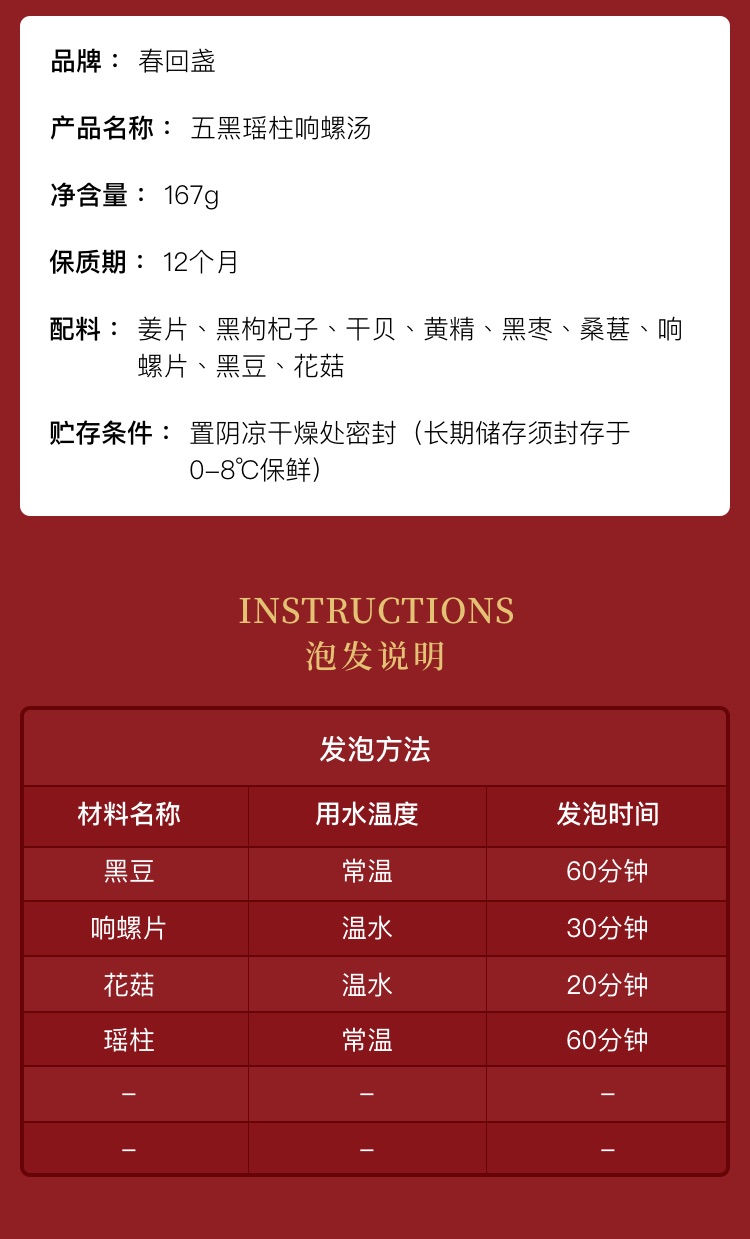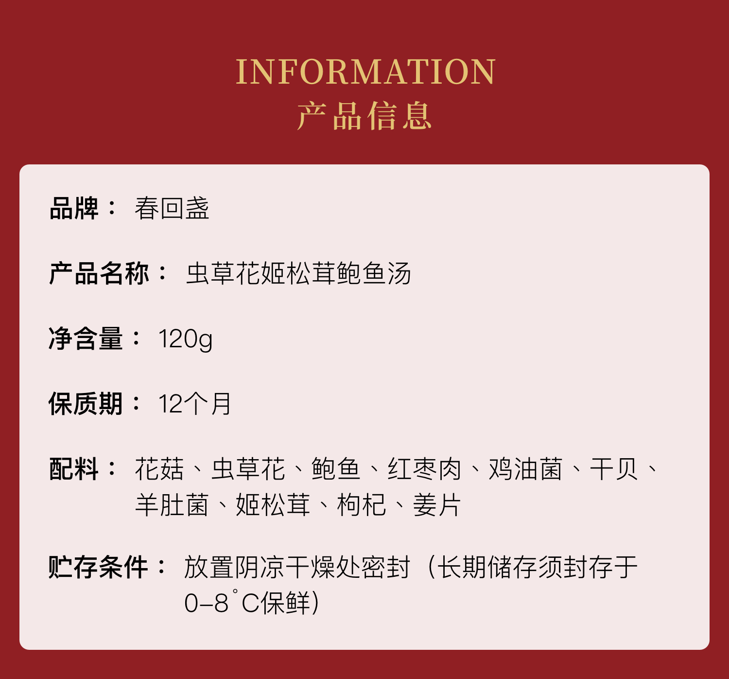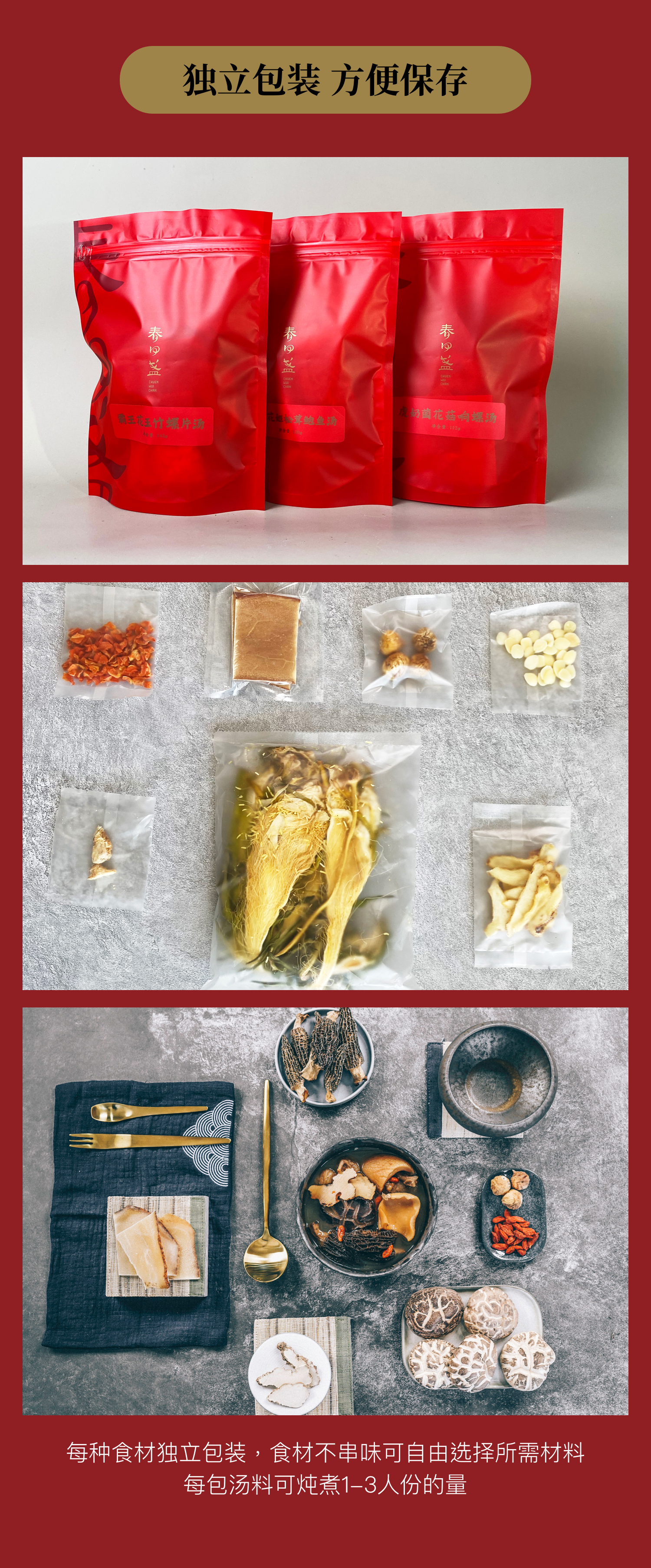 【已下架】春回盏 虫草花姬松茸鲍鱼/虎奶菌花菇响螺/五黑瑶柱响螺汤包*3包 [福利品]