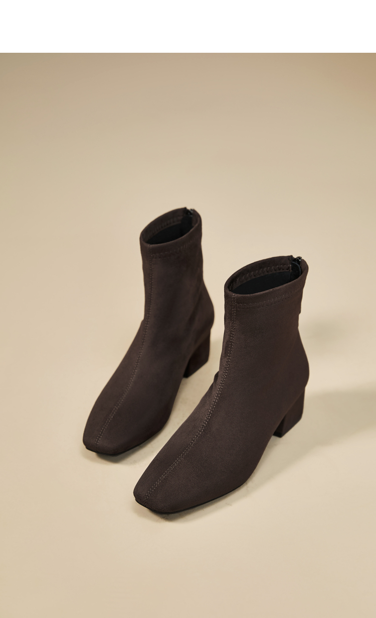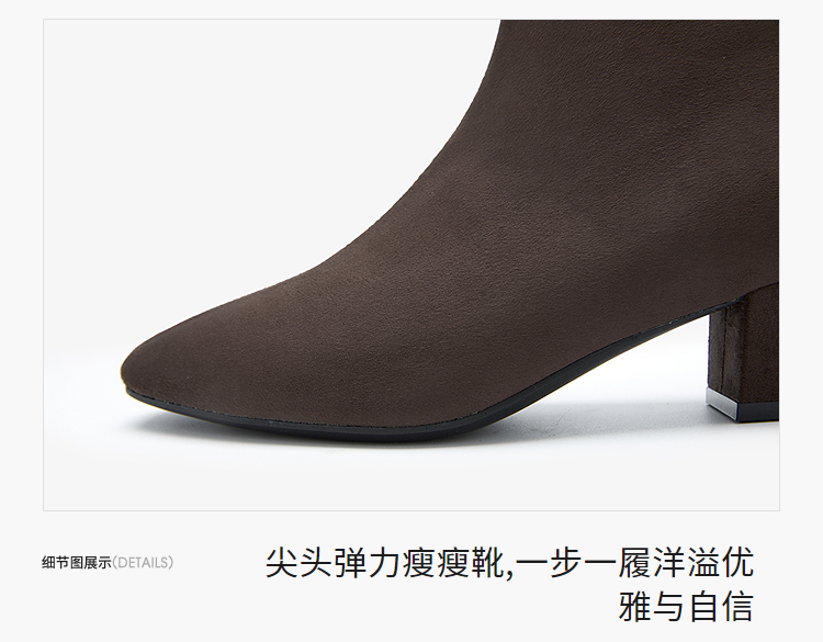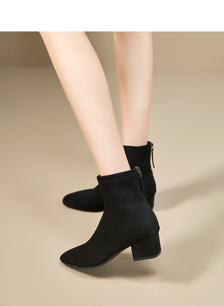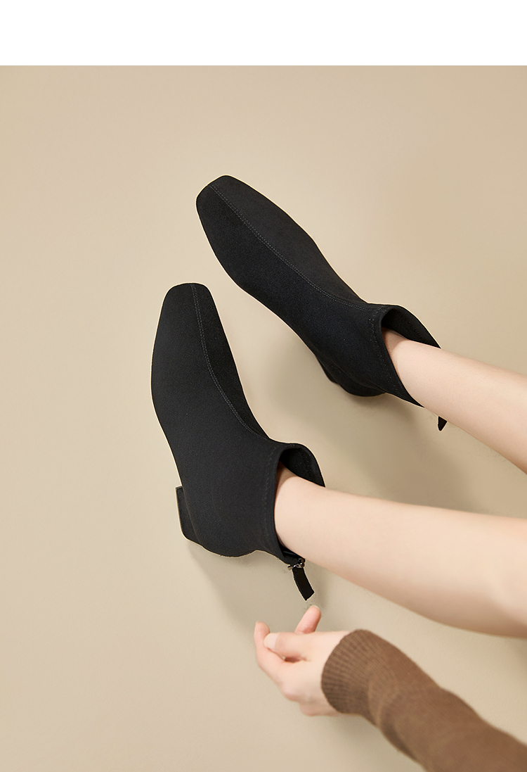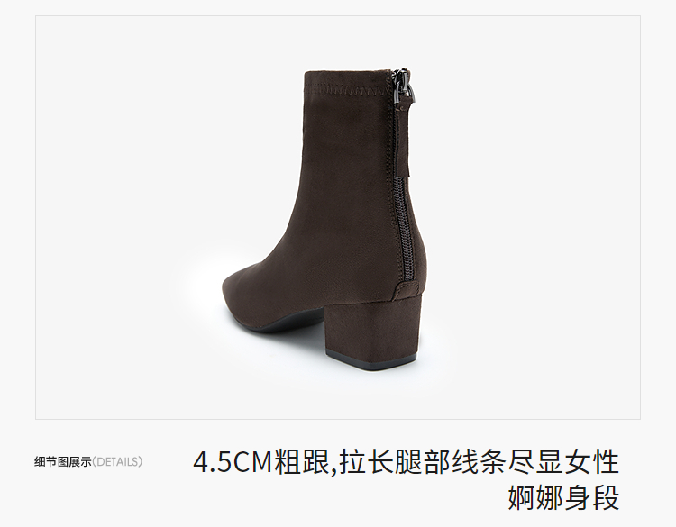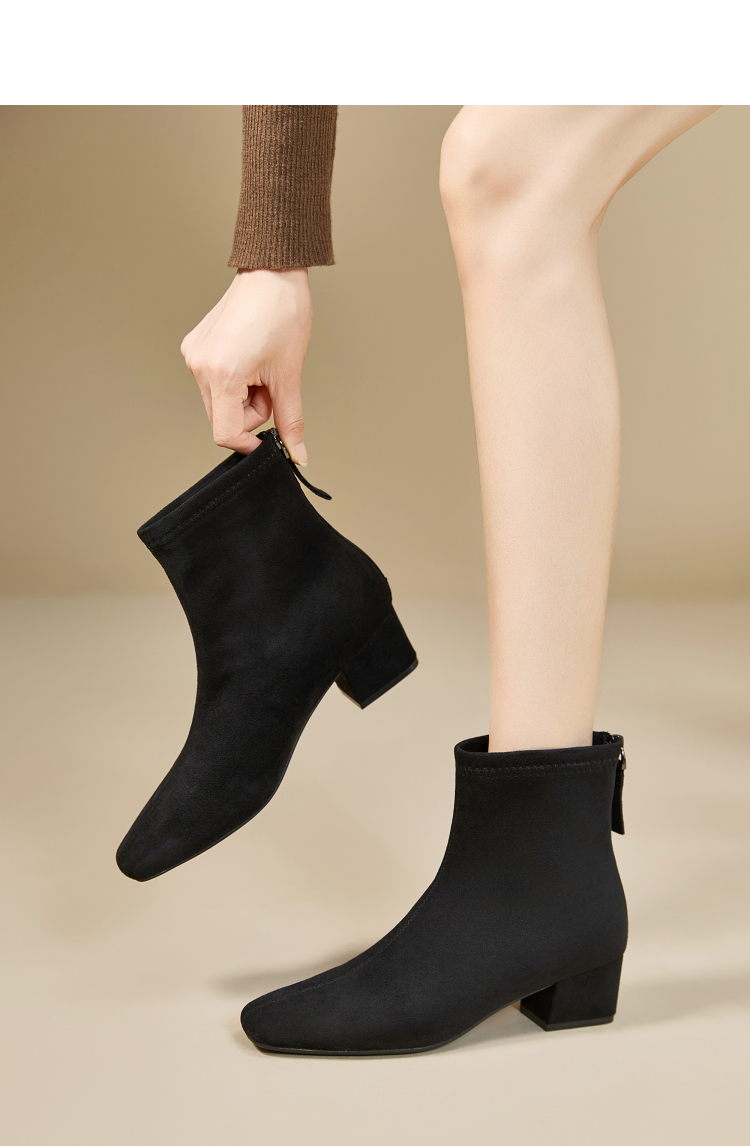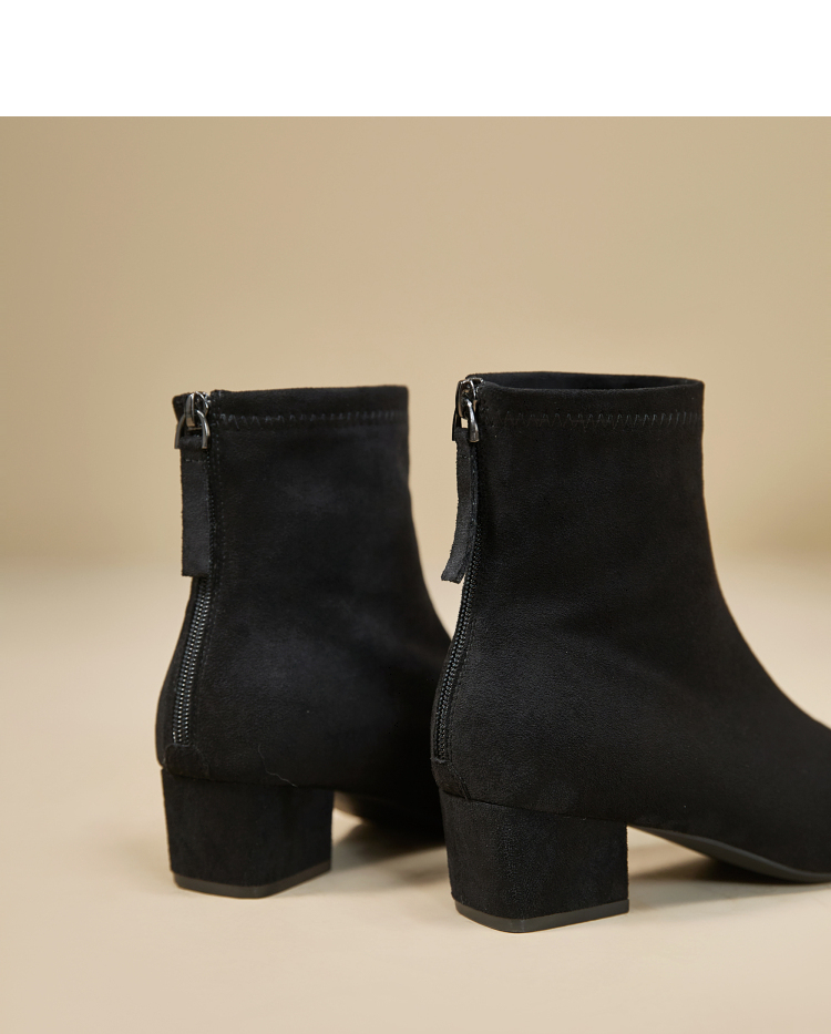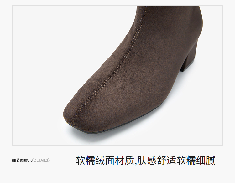 西遇法式瘦瘦靴女新款秋冬单靴配裙子绒面黑色粗跟巨好看短靴V2257248