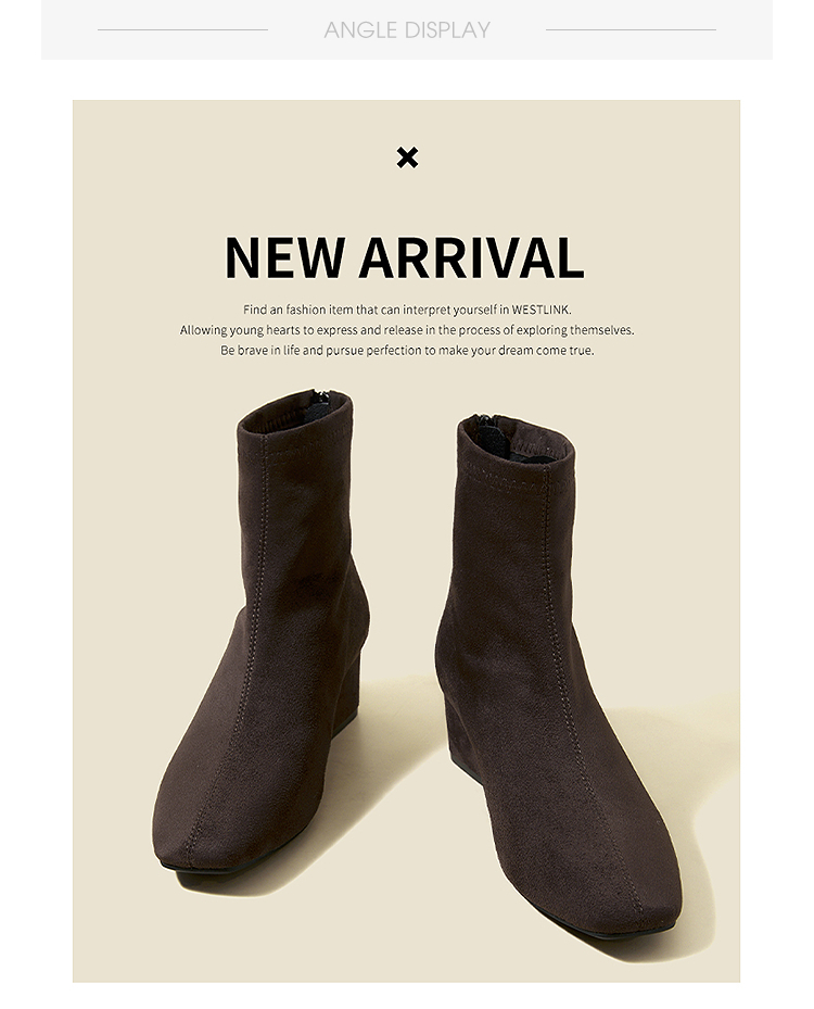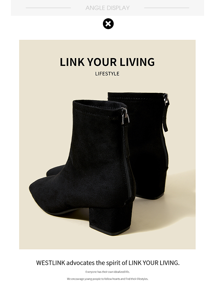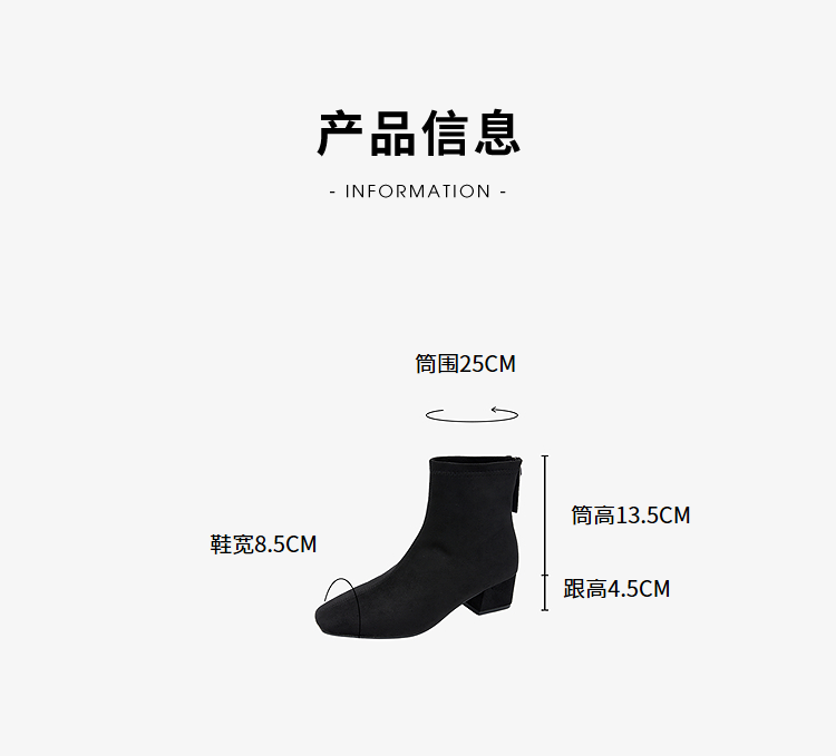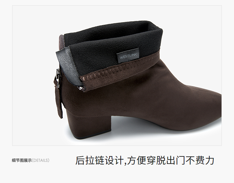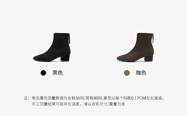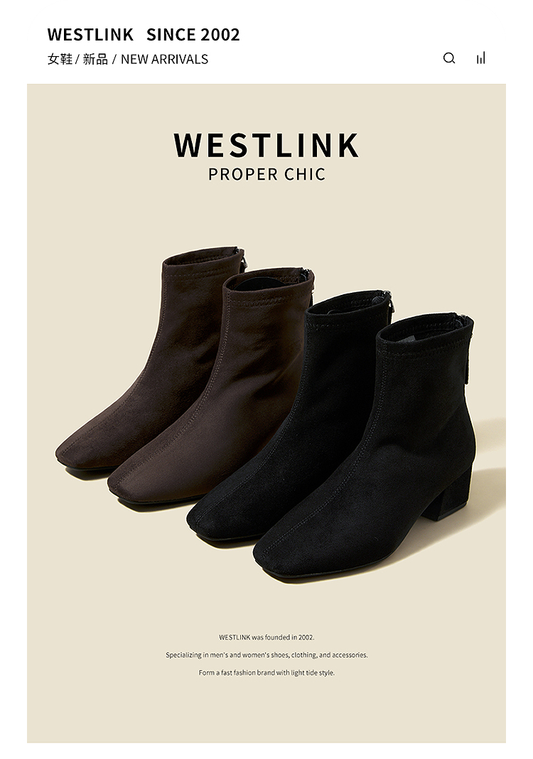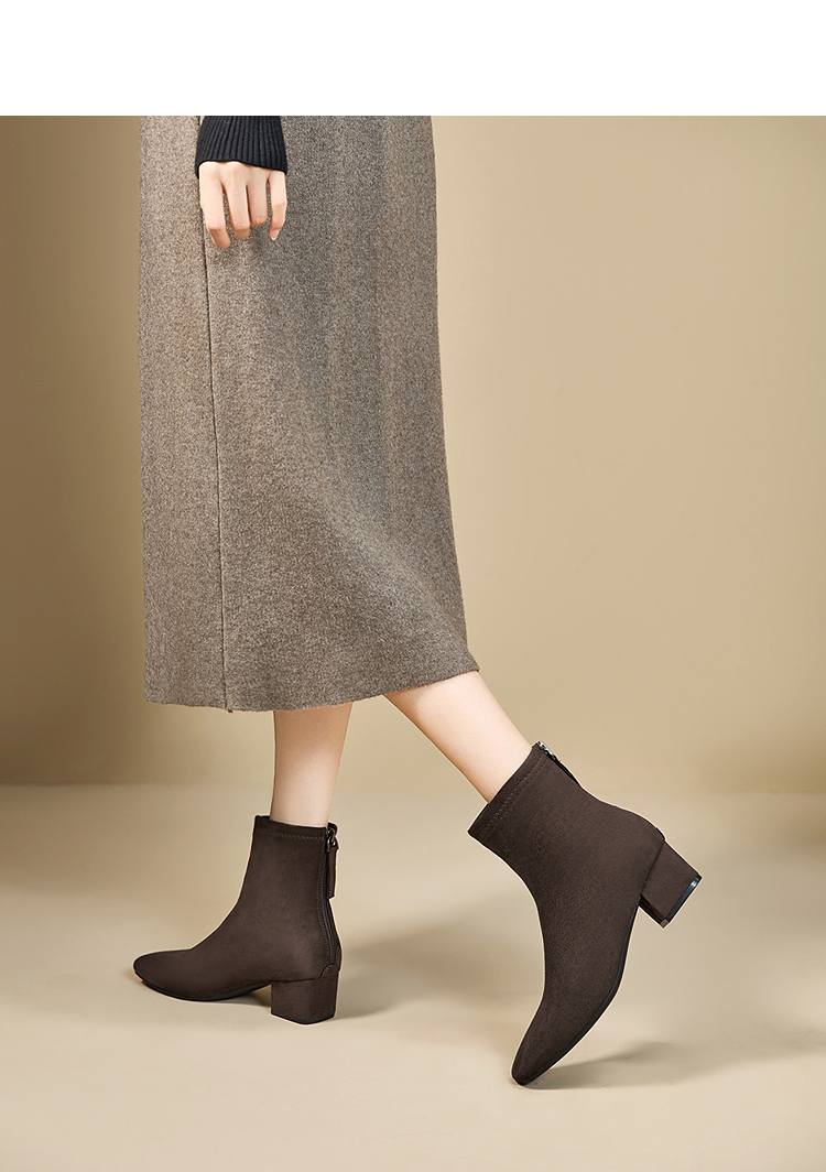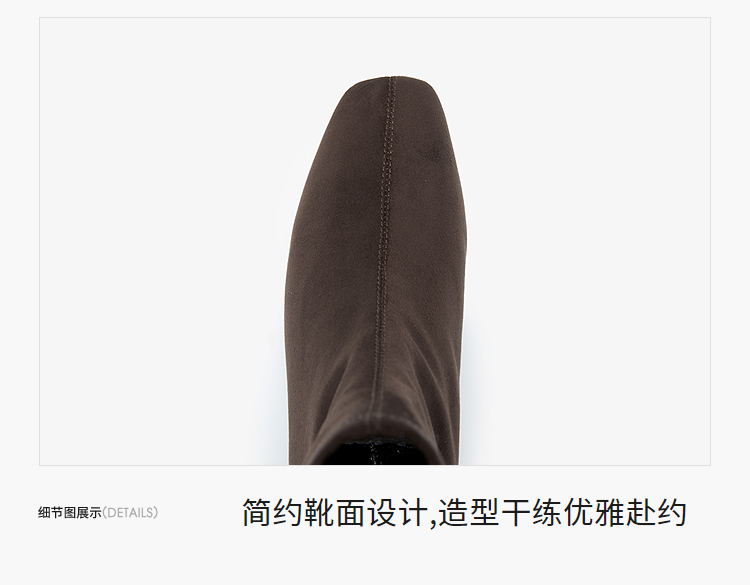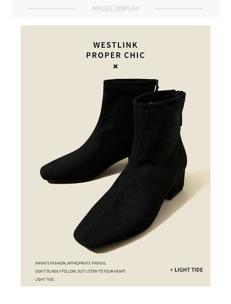西遇法式瘦瘦靴女新款秋冬单靴配裙子绒面黑色粗跟巨好看短靴V2257248