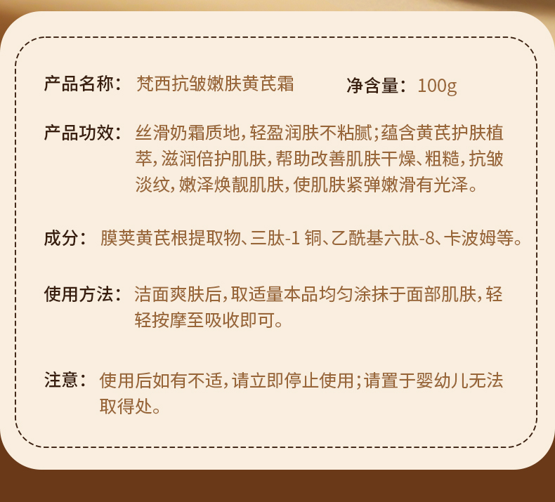 【梵西新品 119元任选3件】FONCE梵西抗皱嫩肤黄芪霜 100g/盒