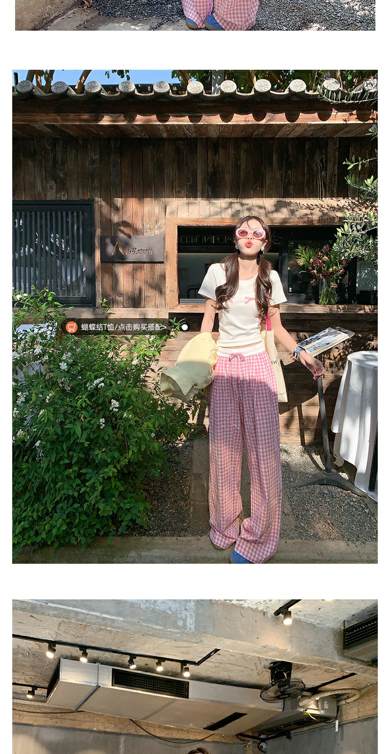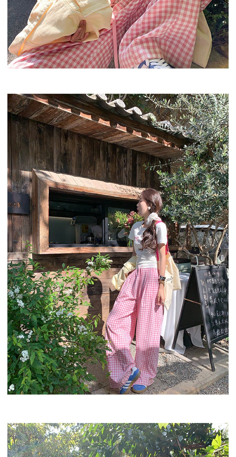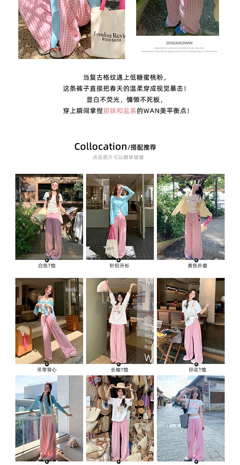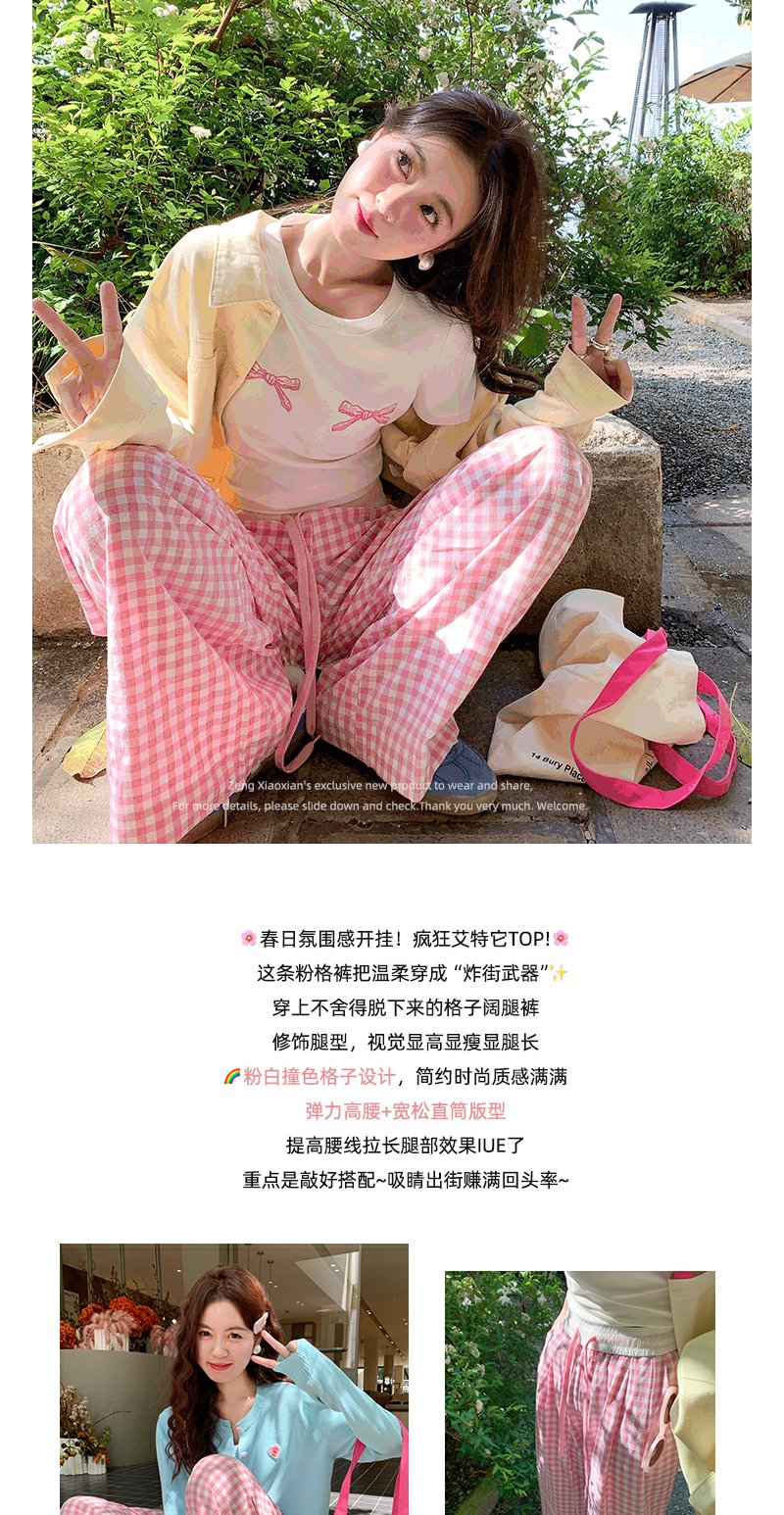 <曾小咸推荐>日系甜美粉色格子休闲裤