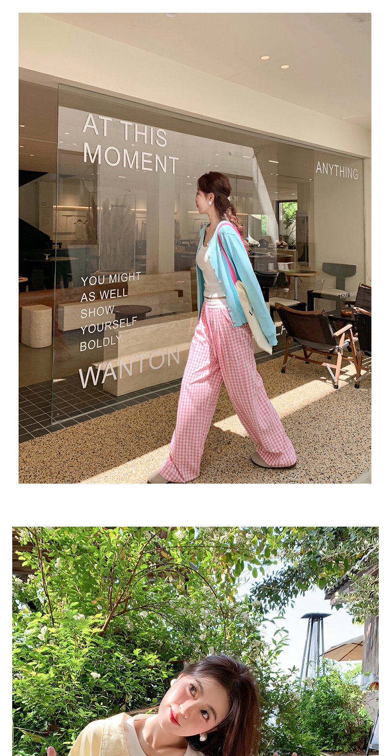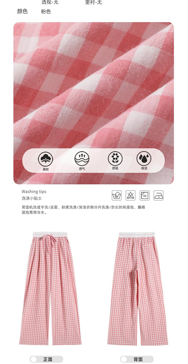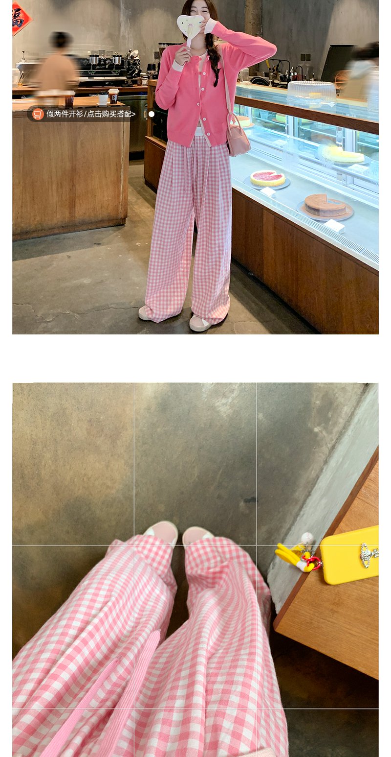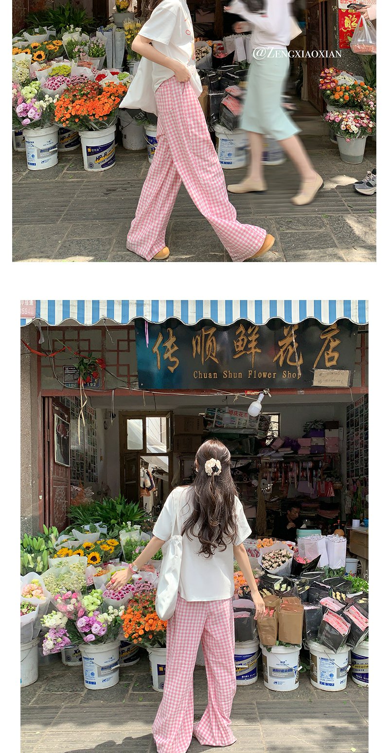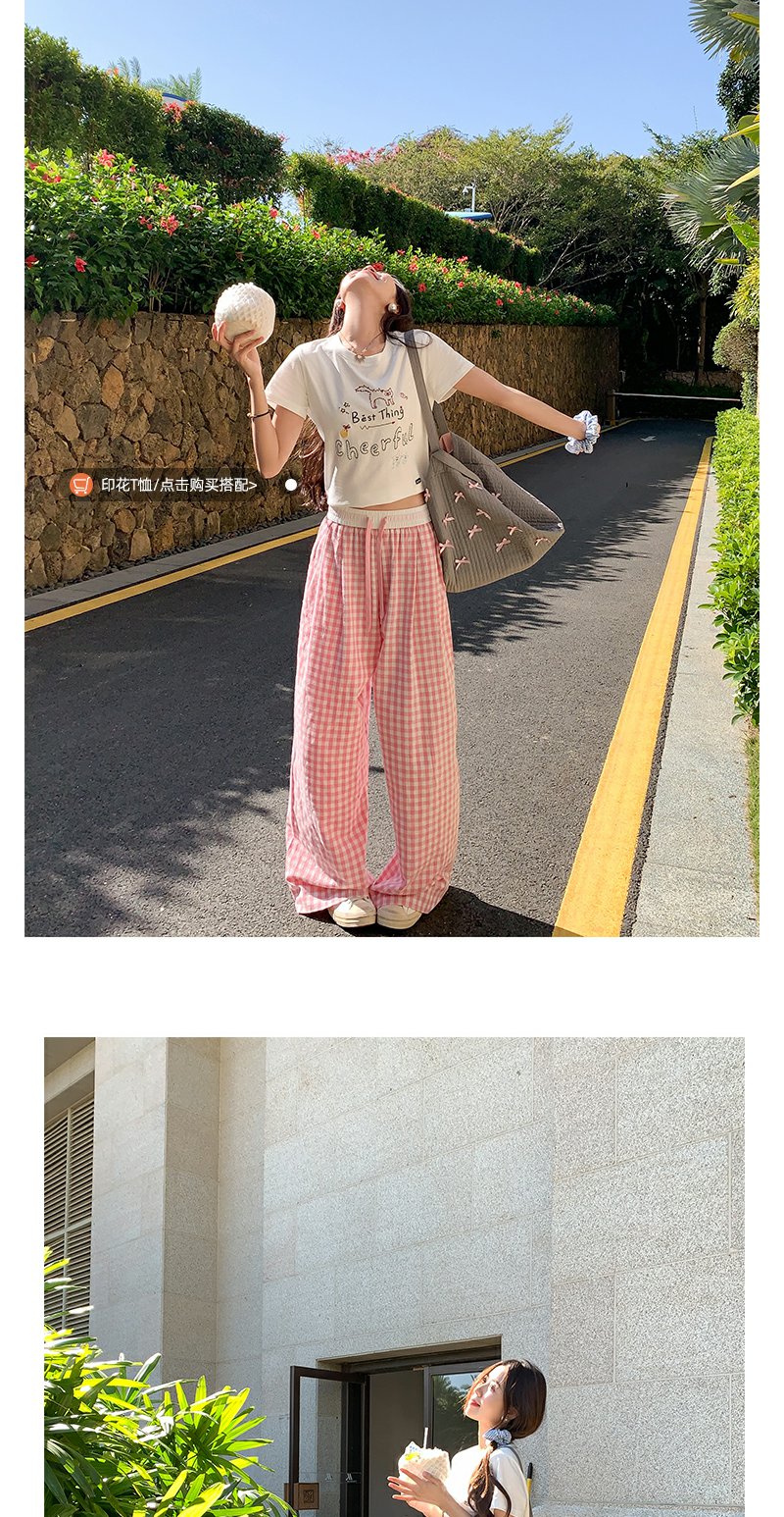 <曾小咸推荐>日系甜美粉色格子休闲裤
