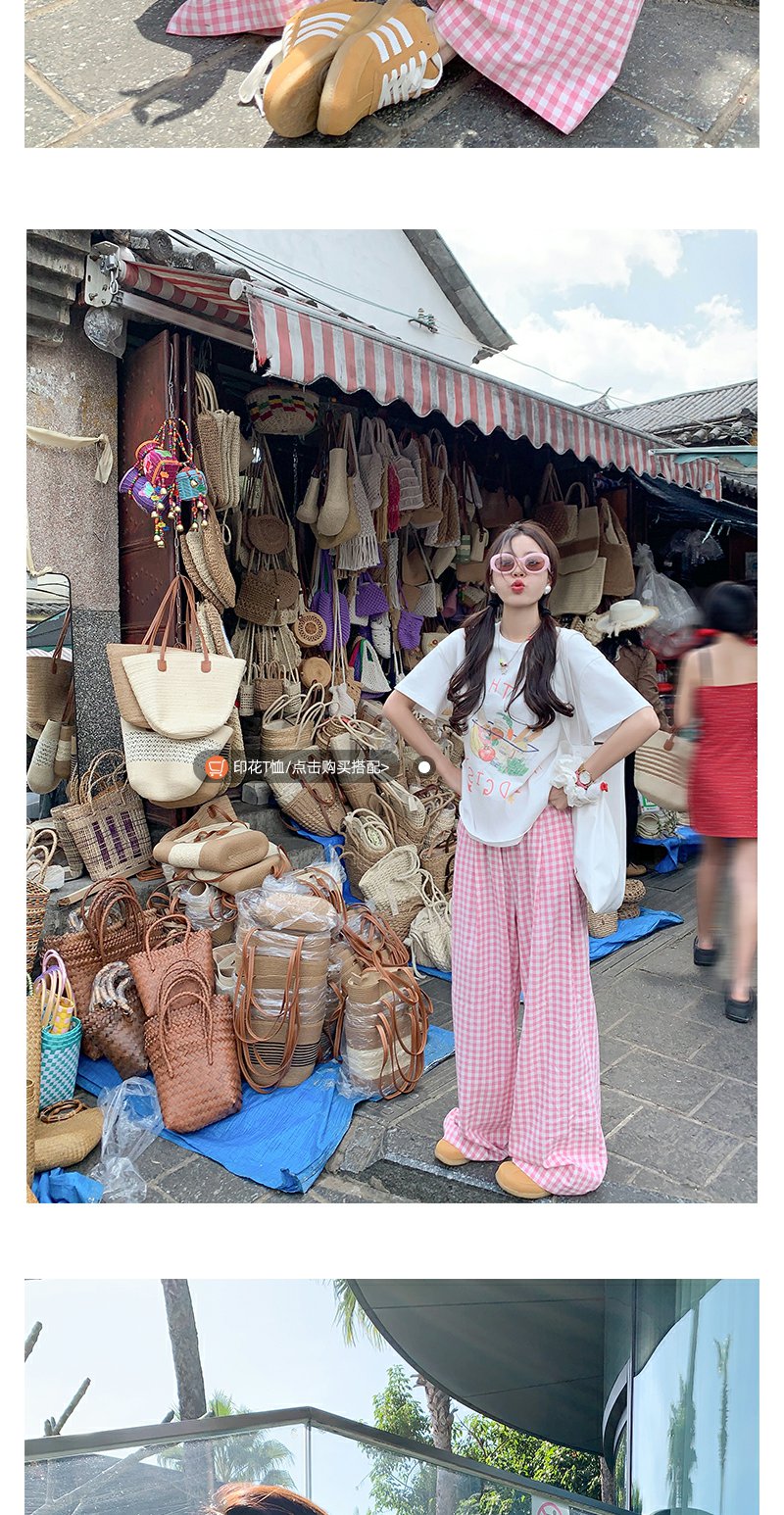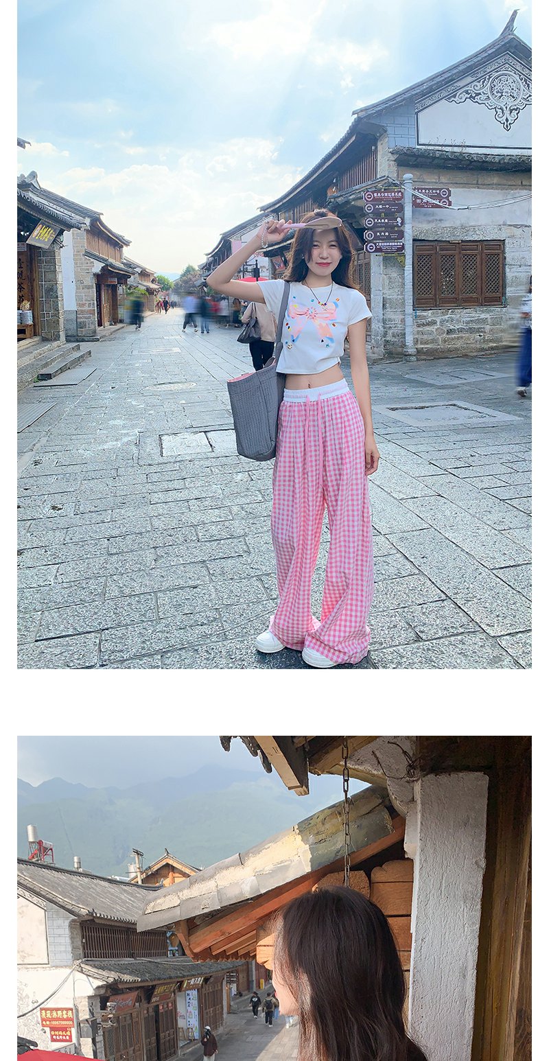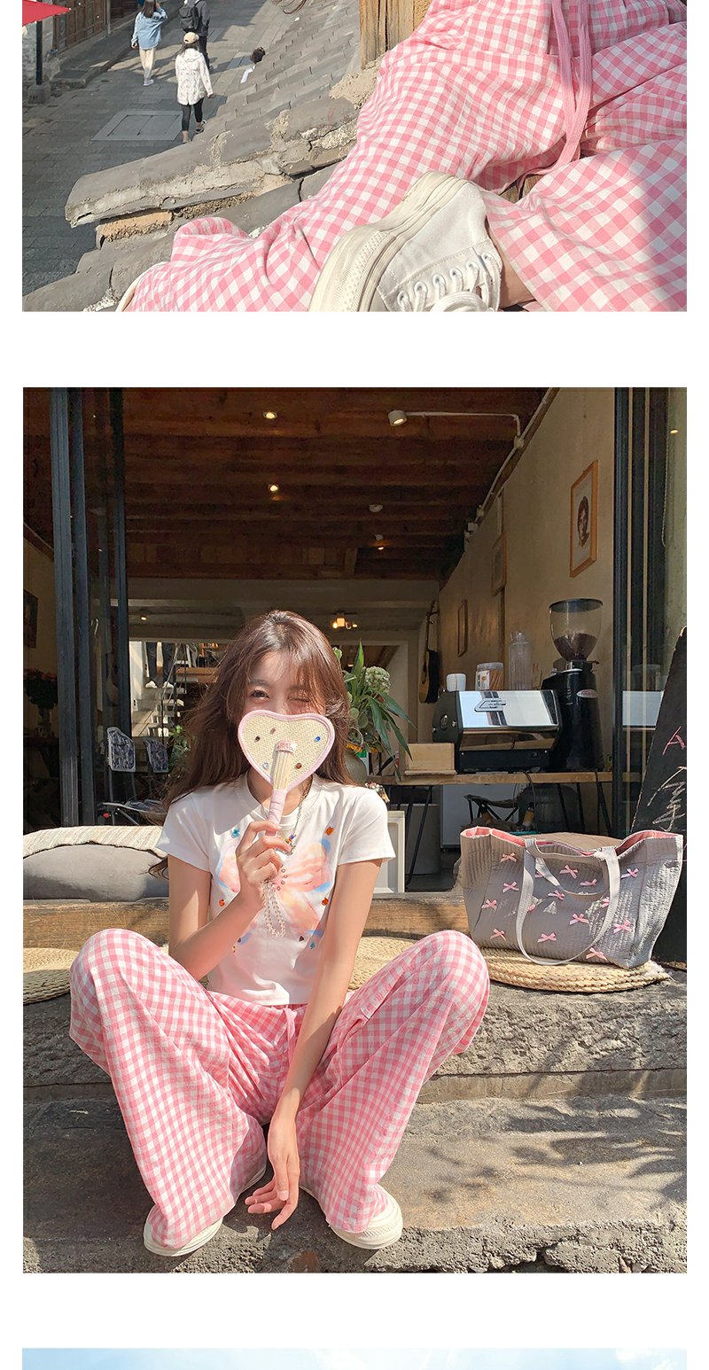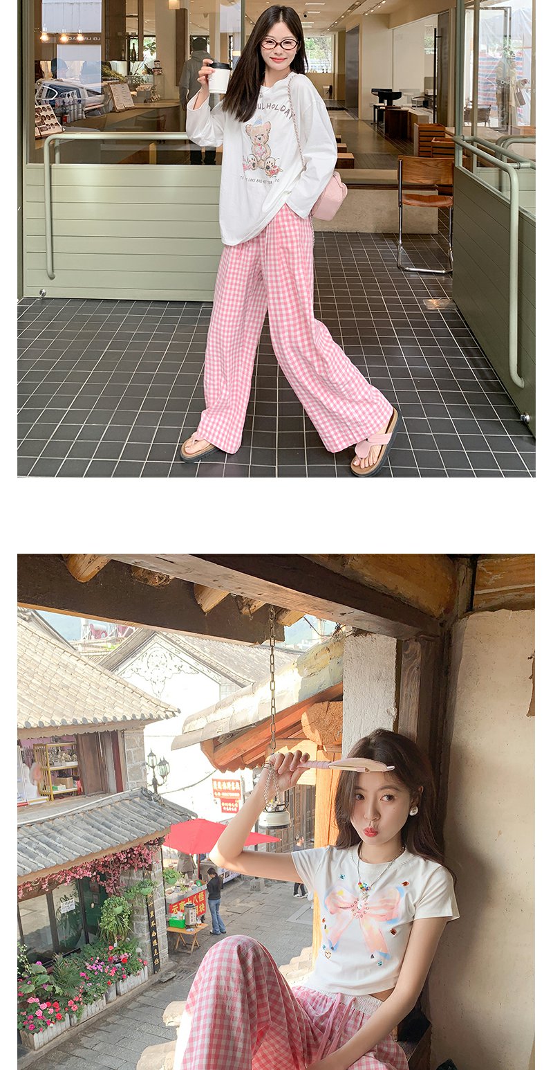 <曾小咸推荐>日系甜美粉色格子休闲裤