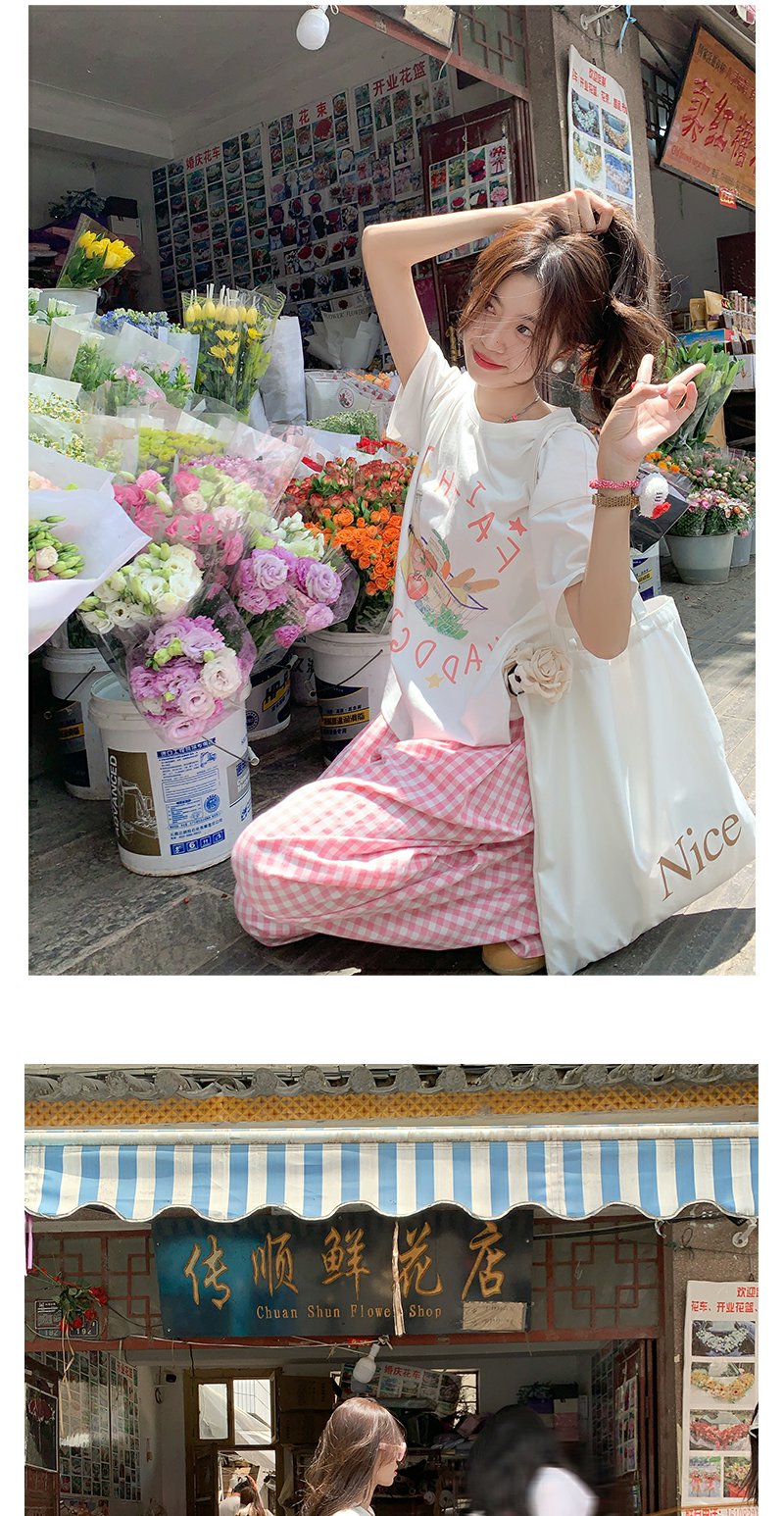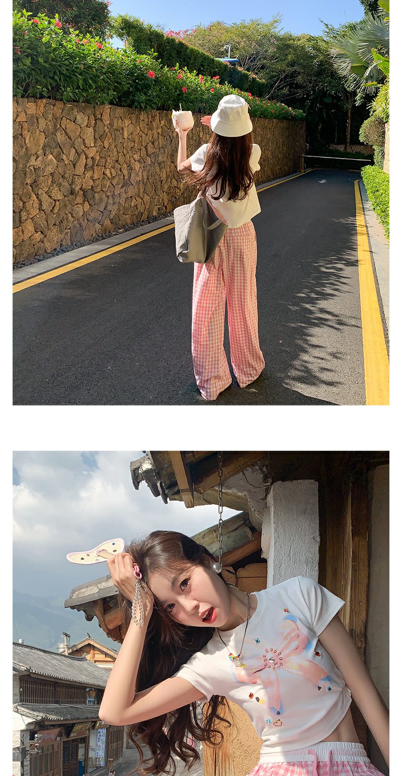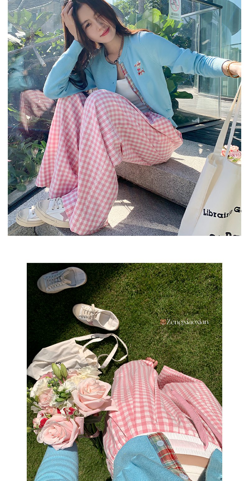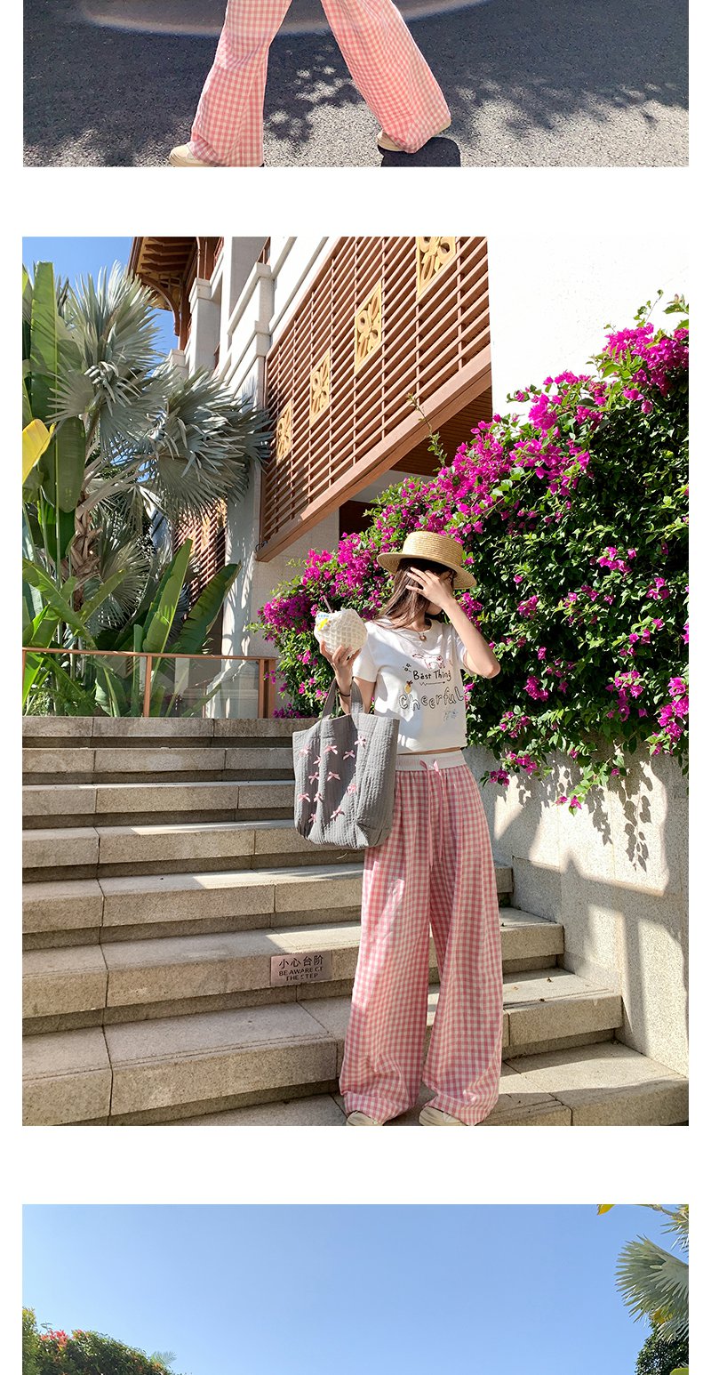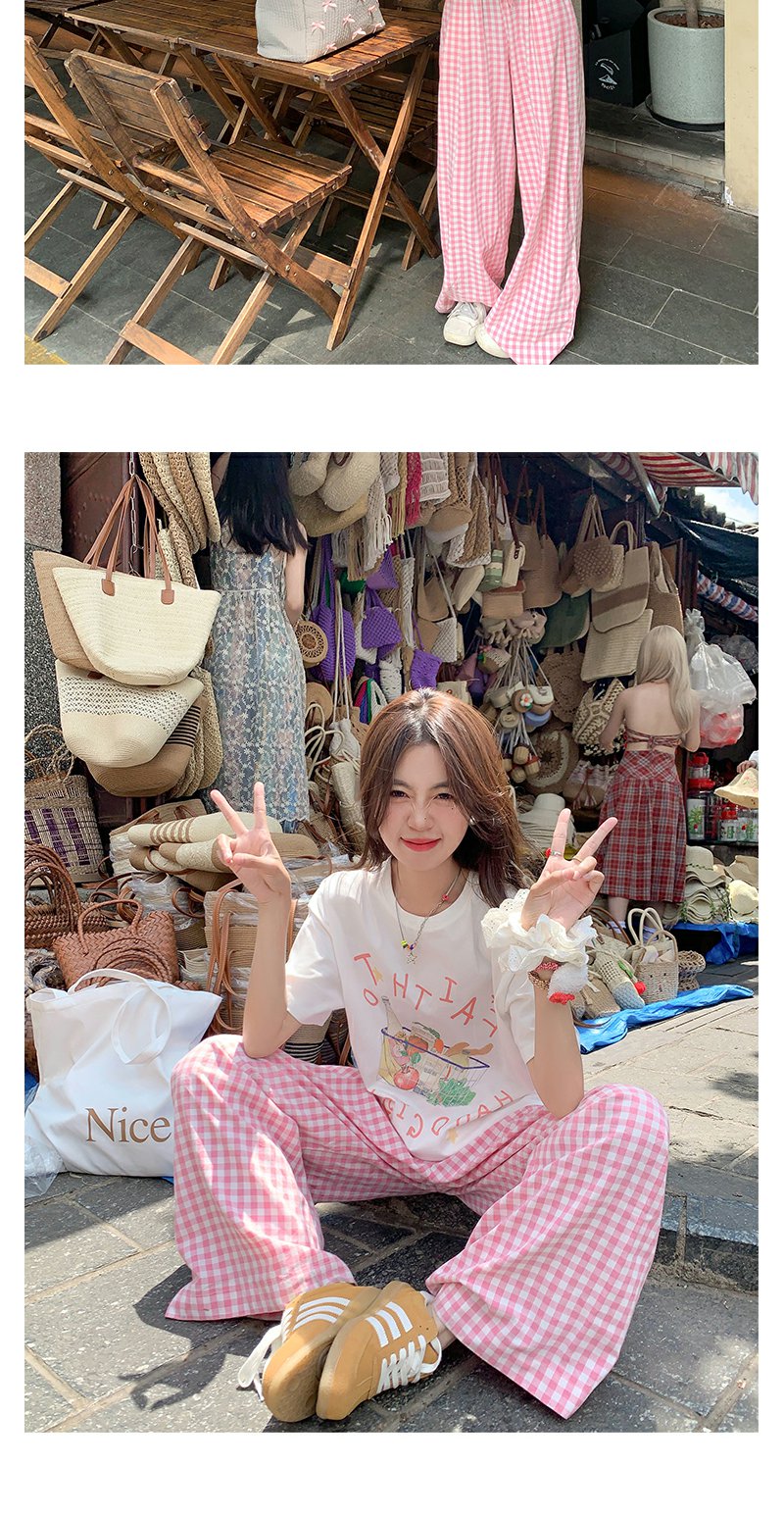 <曾小咸推荐>日系甜美粉色格子休闲裤