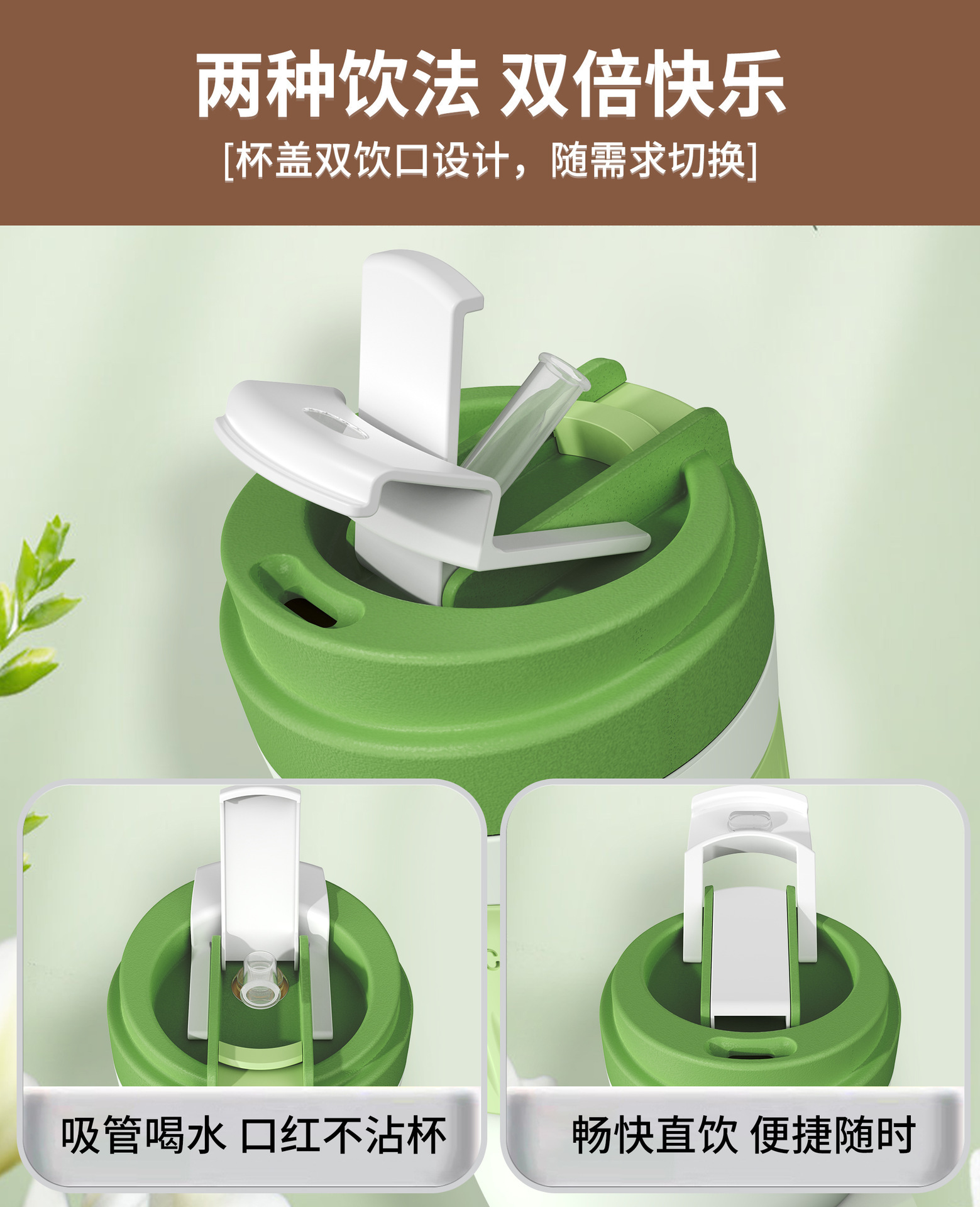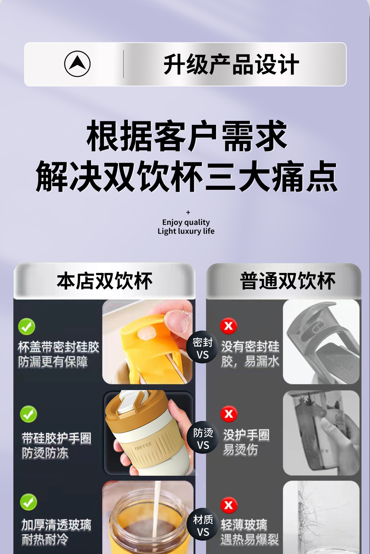 「4款配色!一杯双饮」新款可爱便携吸管杯 双饮杯吸管杯马卡龙色双饮杯学生礼品杯餐饮用具