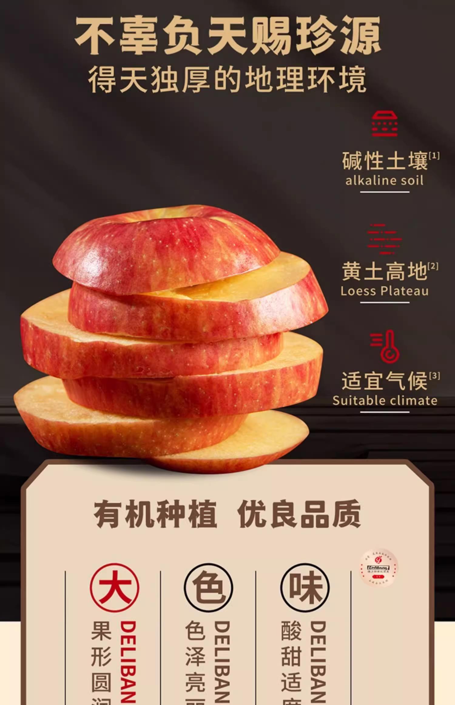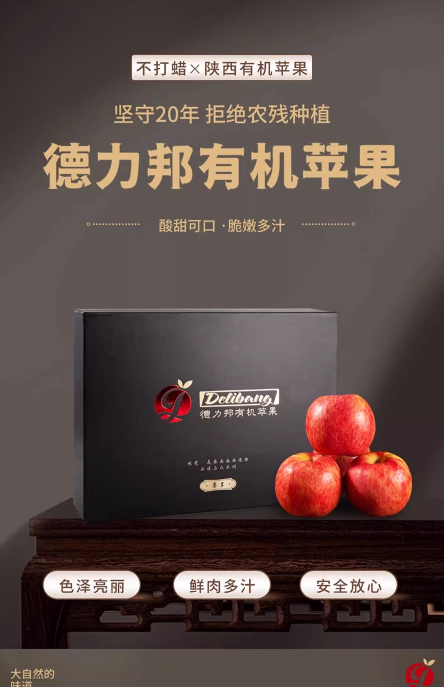 德力邦有机苹果有机力邦6号苹果 陕西渭北有机种植当季新鲜水果【德邦快递送货上门】