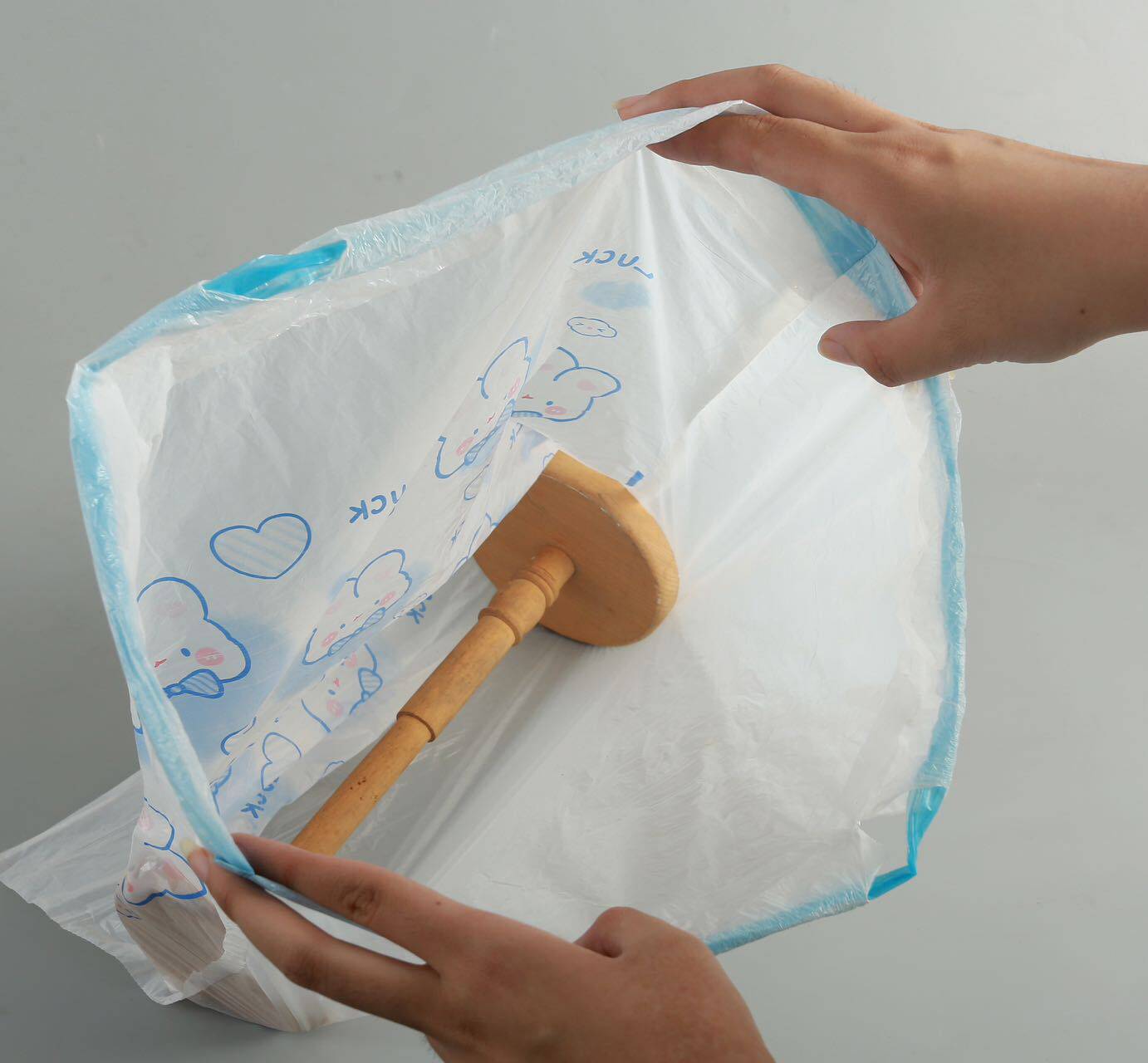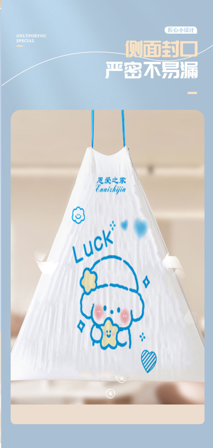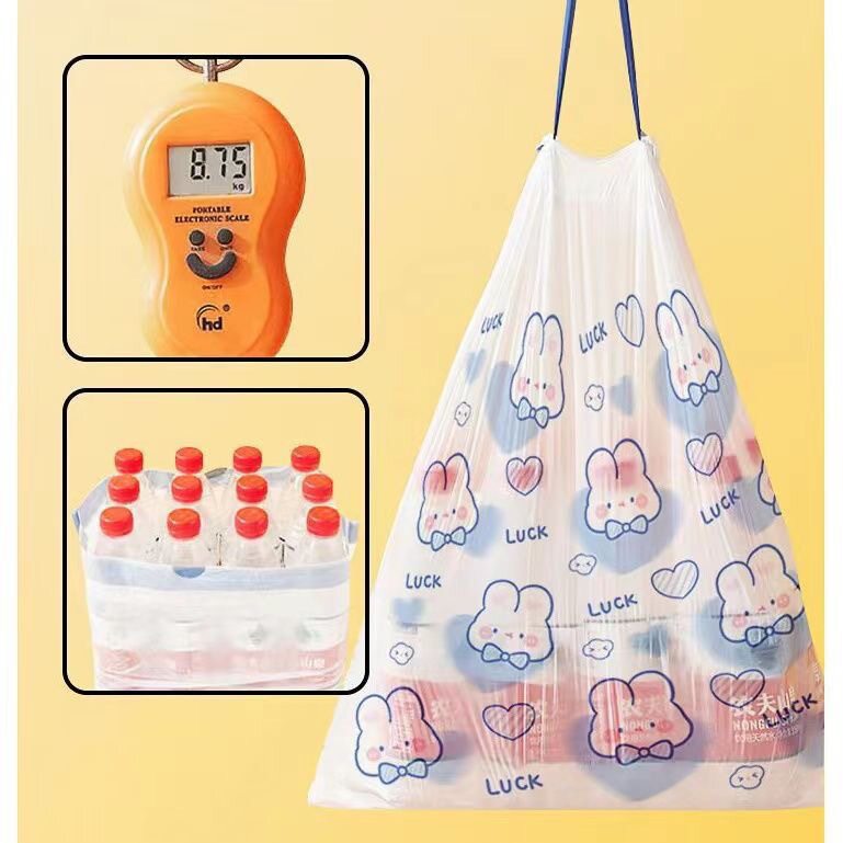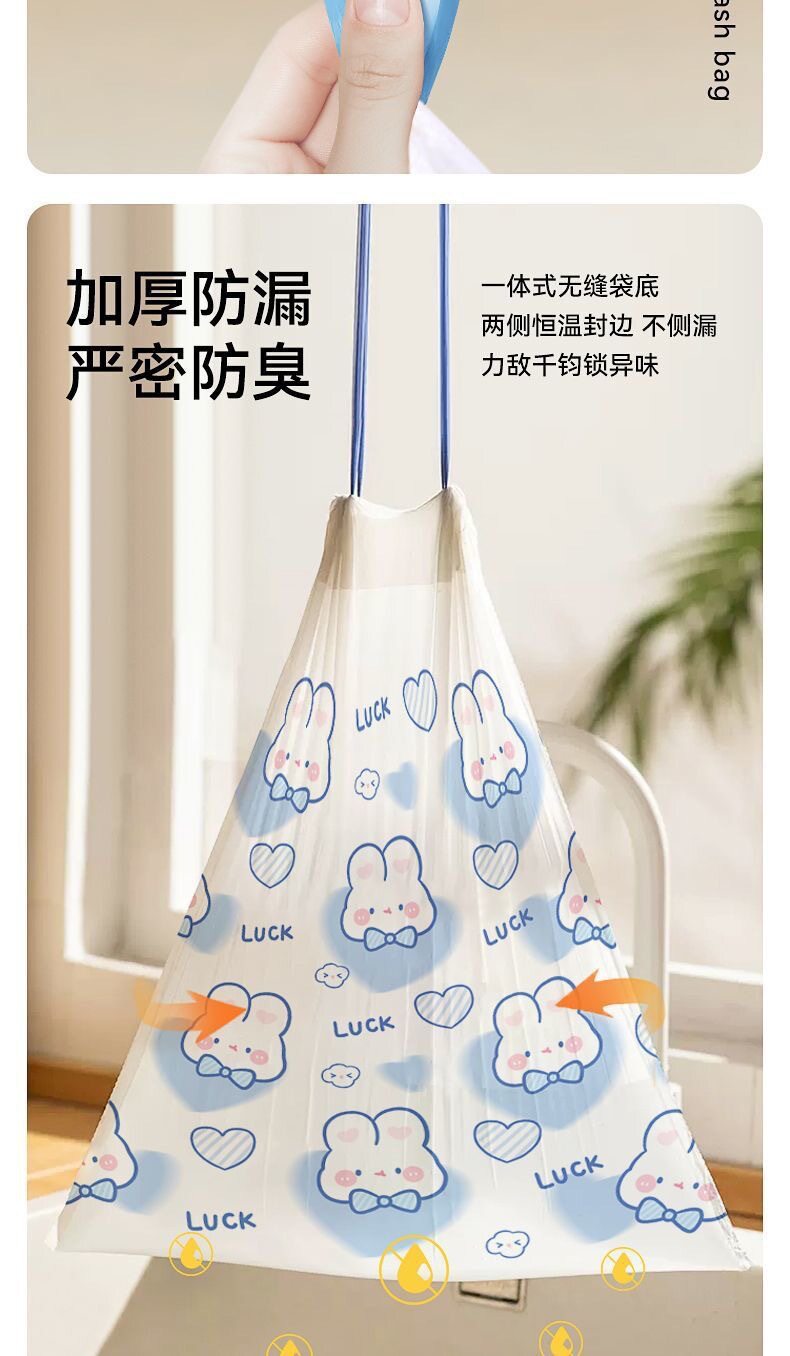 可爱卡通高颜值蓝心兔抽绳式家用厨房手提式加厚垃圾袋印花100支