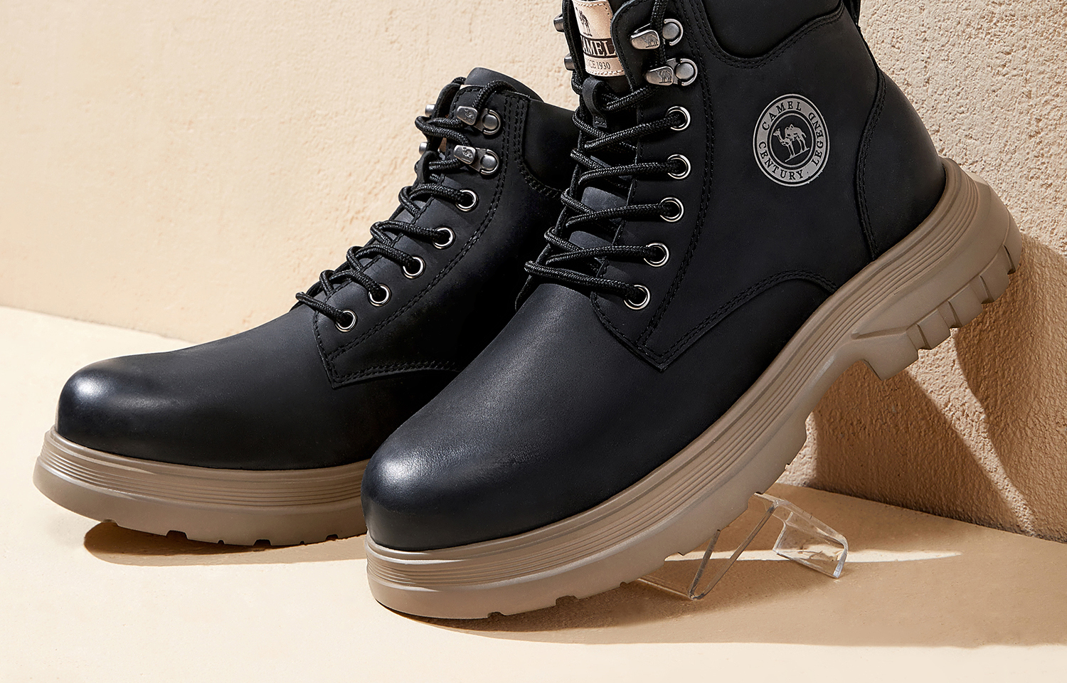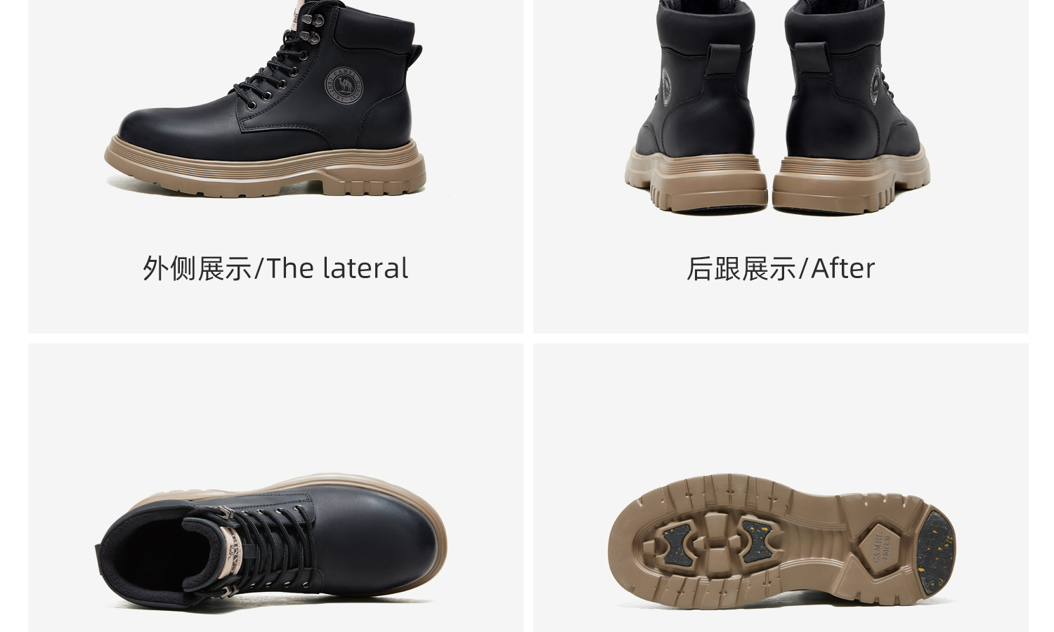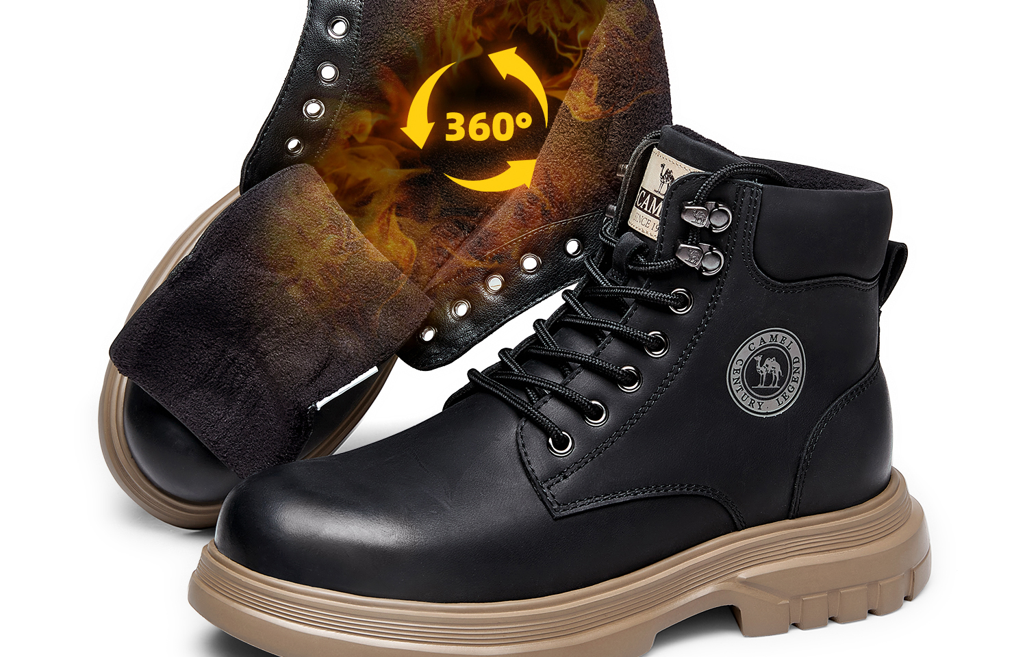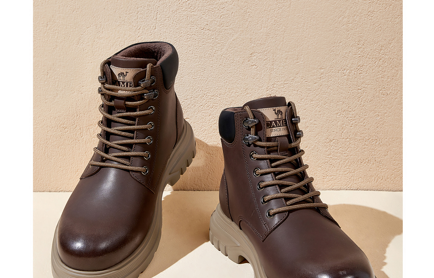 骆驼男鞋2025冬季新款真牛皮马丁靴厚底高帮加绒棉鞋工装鞋休闲黑 G14W076648