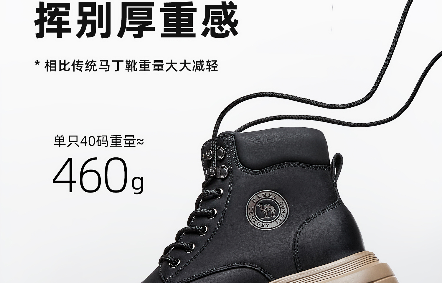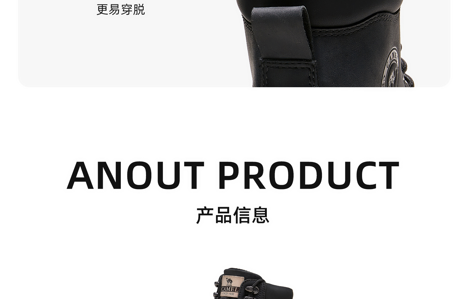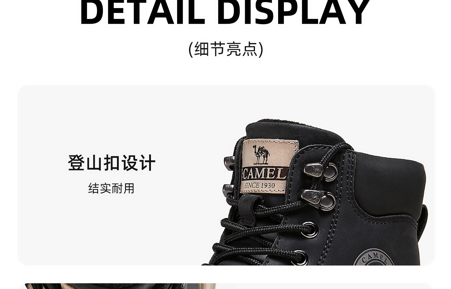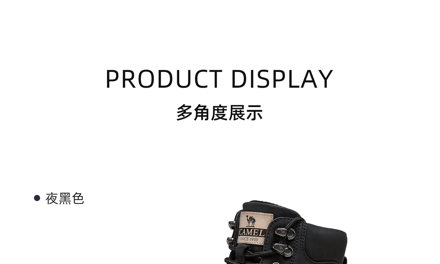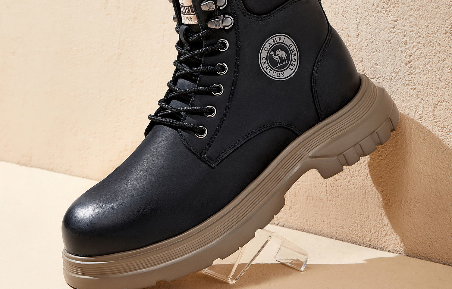 骆驼男鞋2025冬季新款真牛皮马丁靴厚底高帮加绒棉鞋工装鞋休闲黑 G14W076648