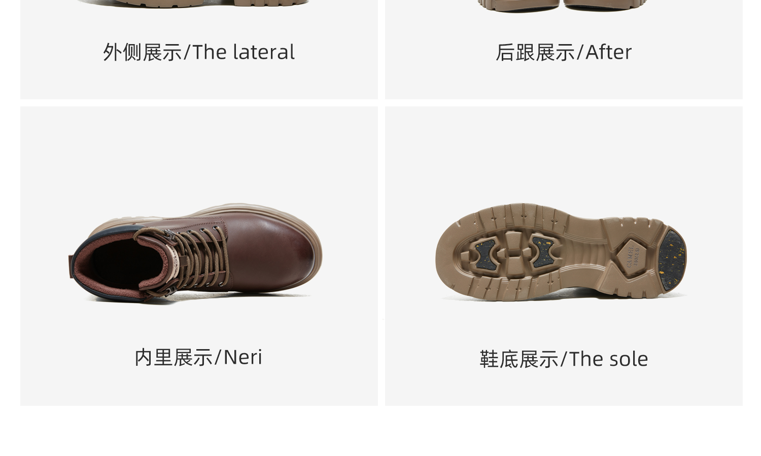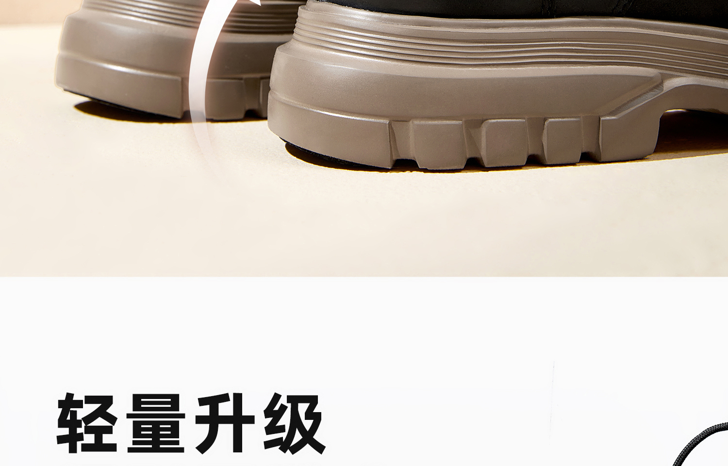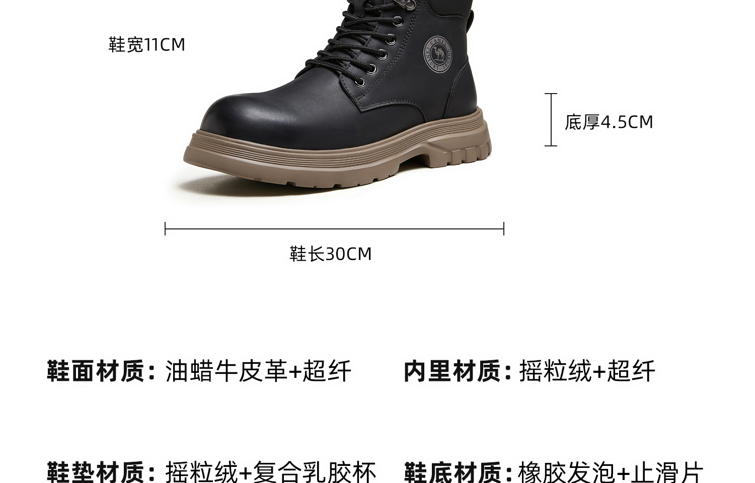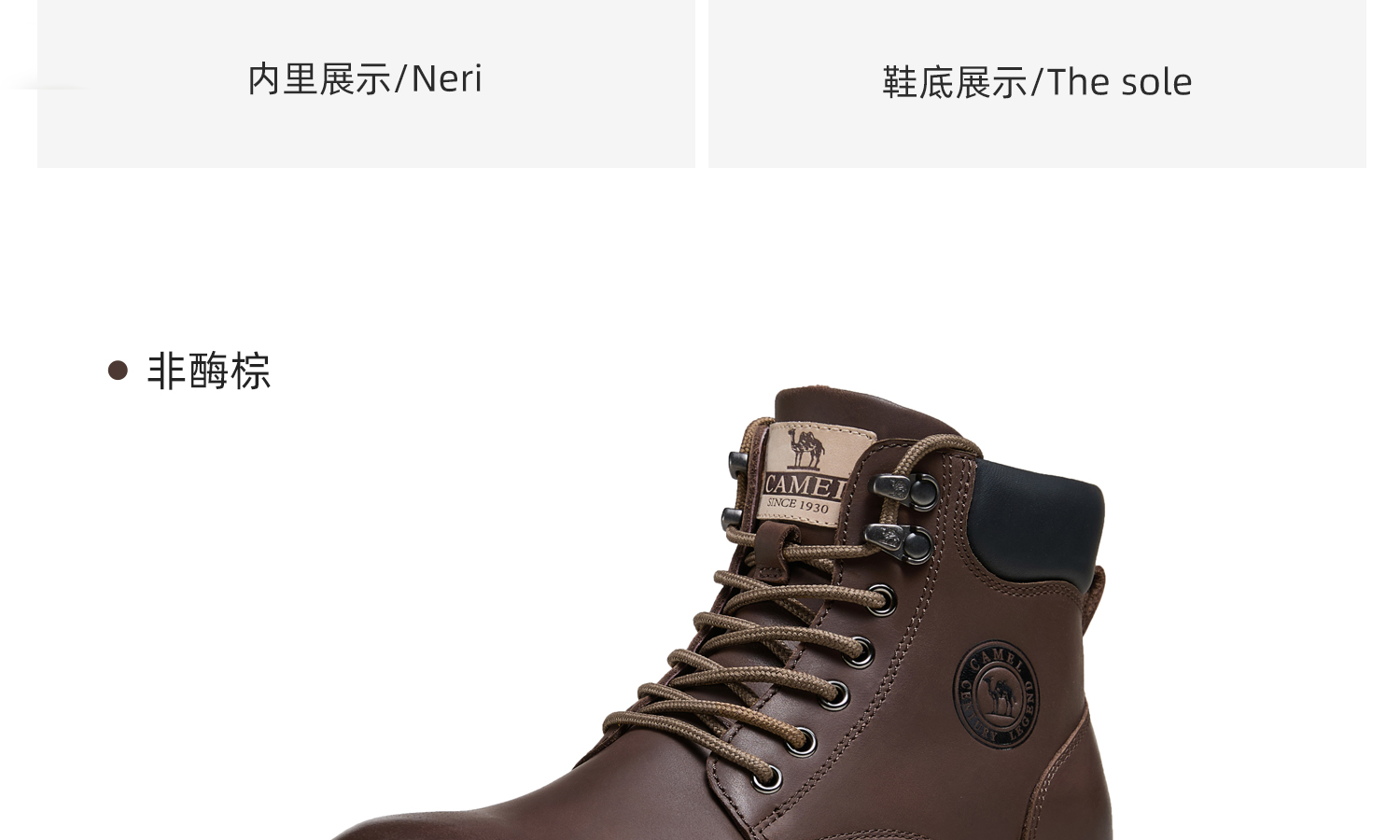 骆驼男鞋2025冬季新款真牛皮马丁靴厚底高帮加绒棉鞋工装鞋休闲黑 G14W076648