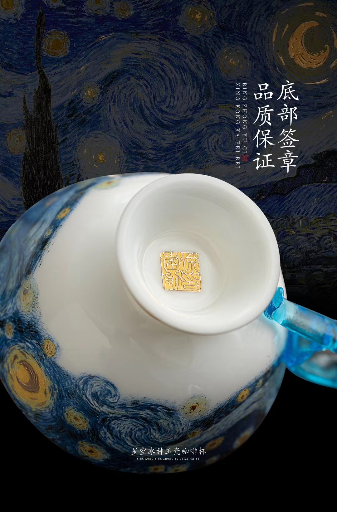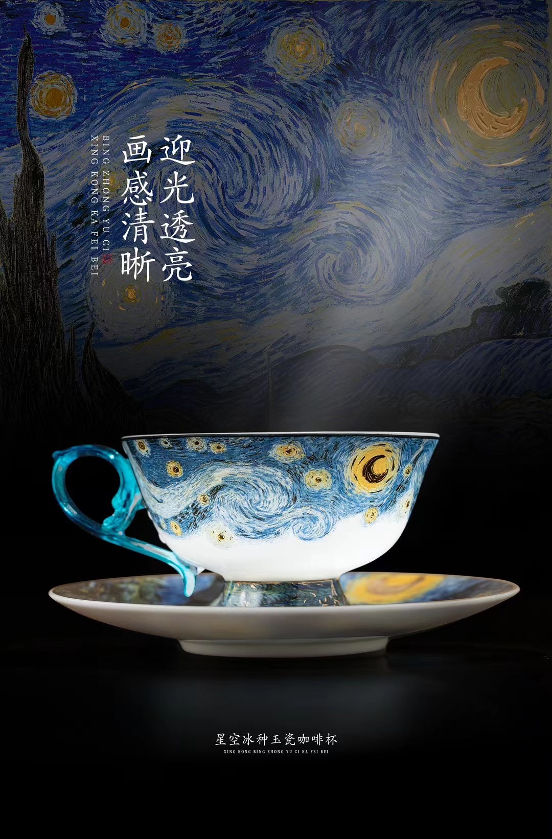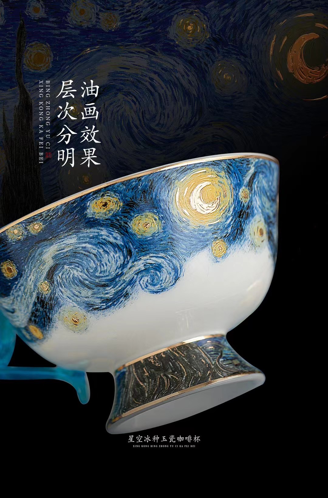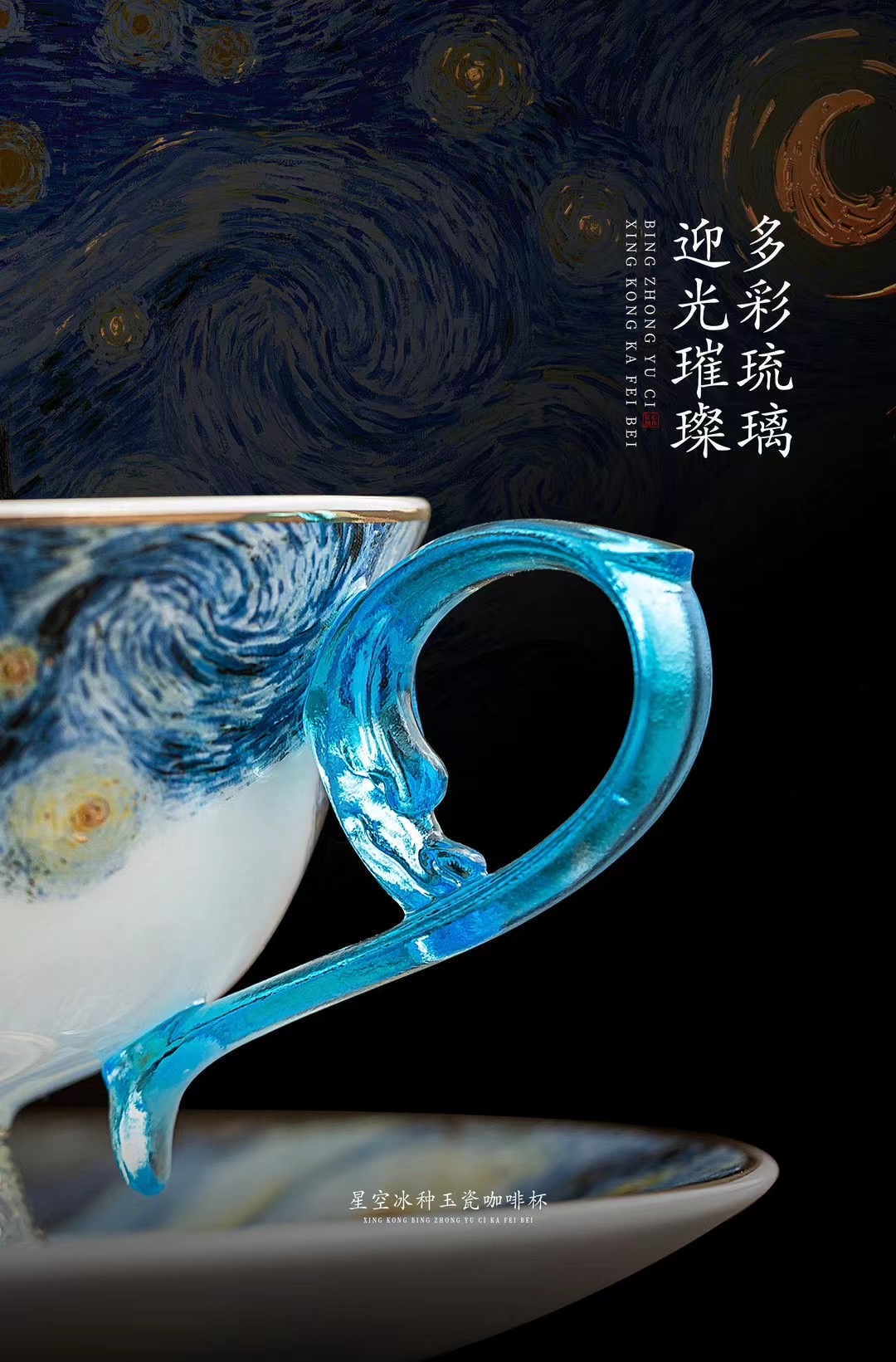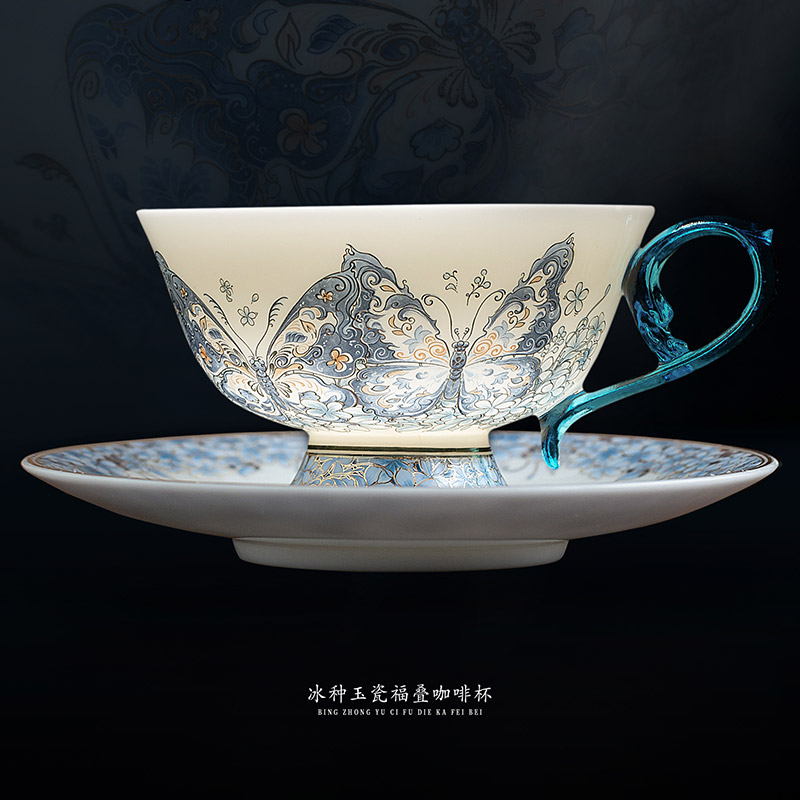 B-QX-2055/2056 古法琉璃冰种玉瓷咖啡杯-梵高星空/蝶舞飞扬