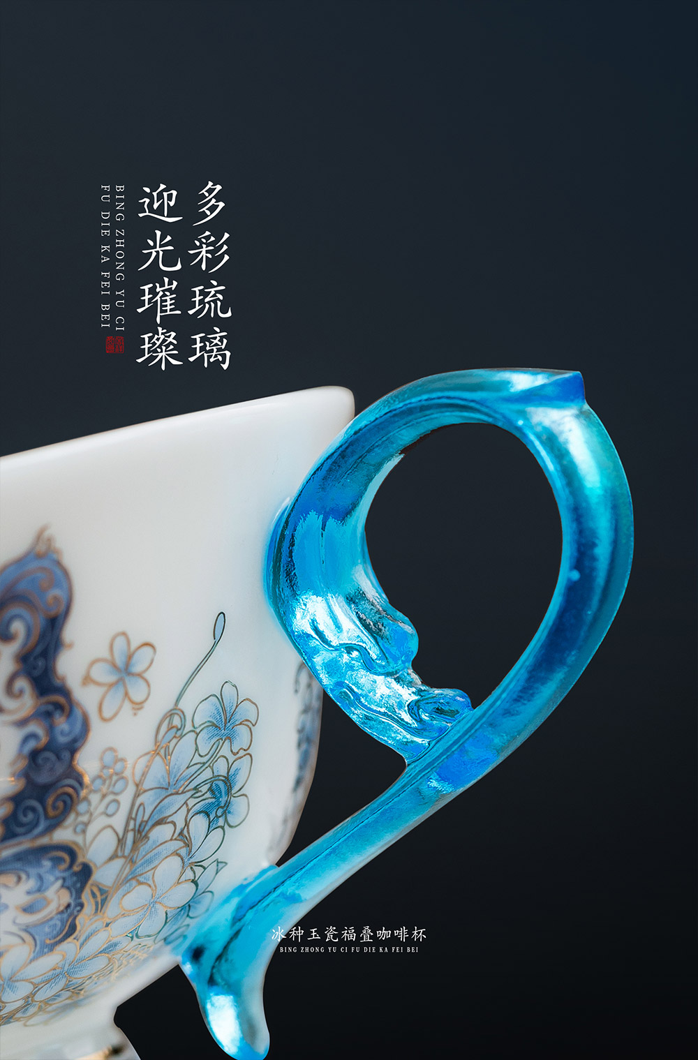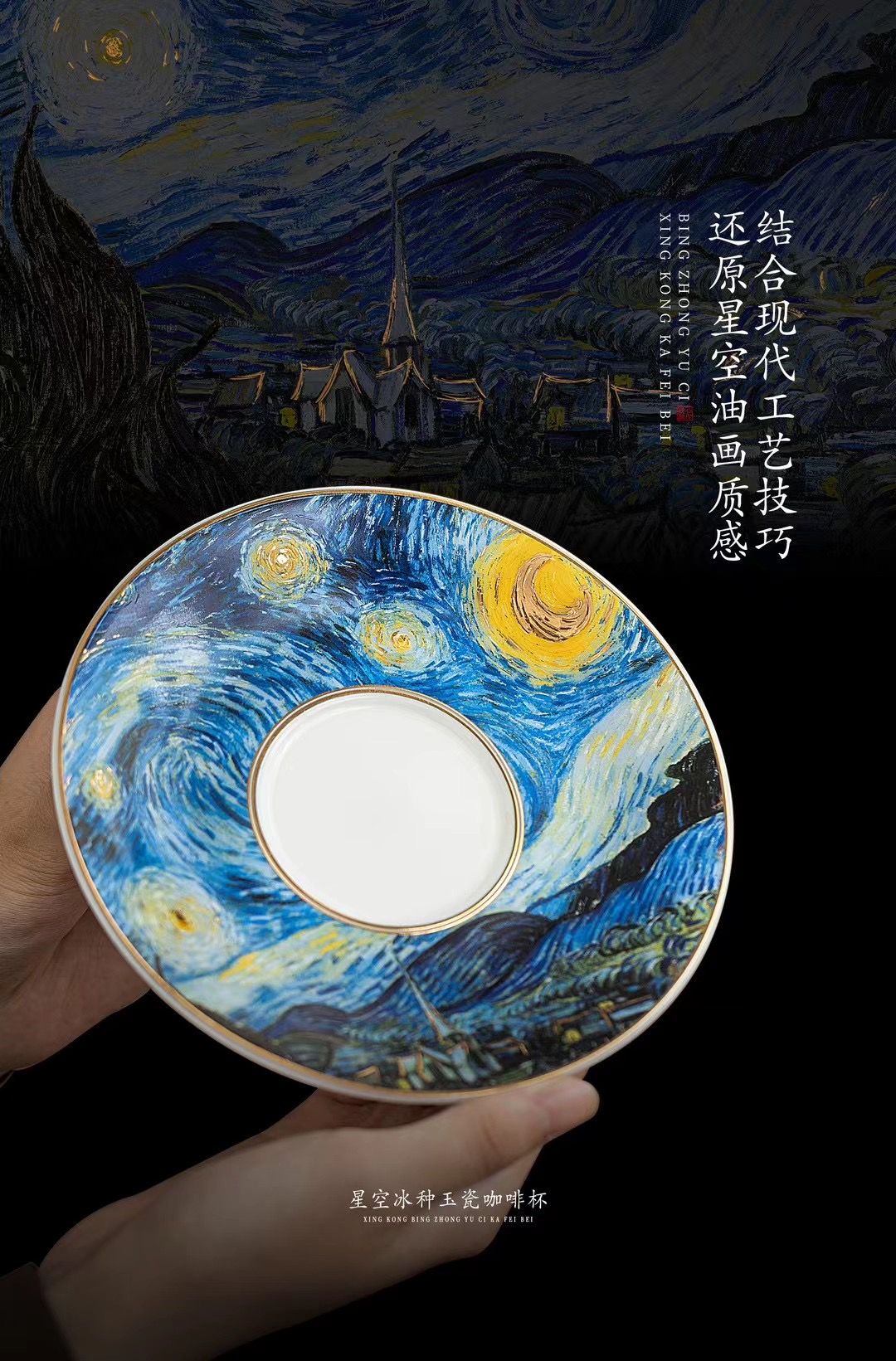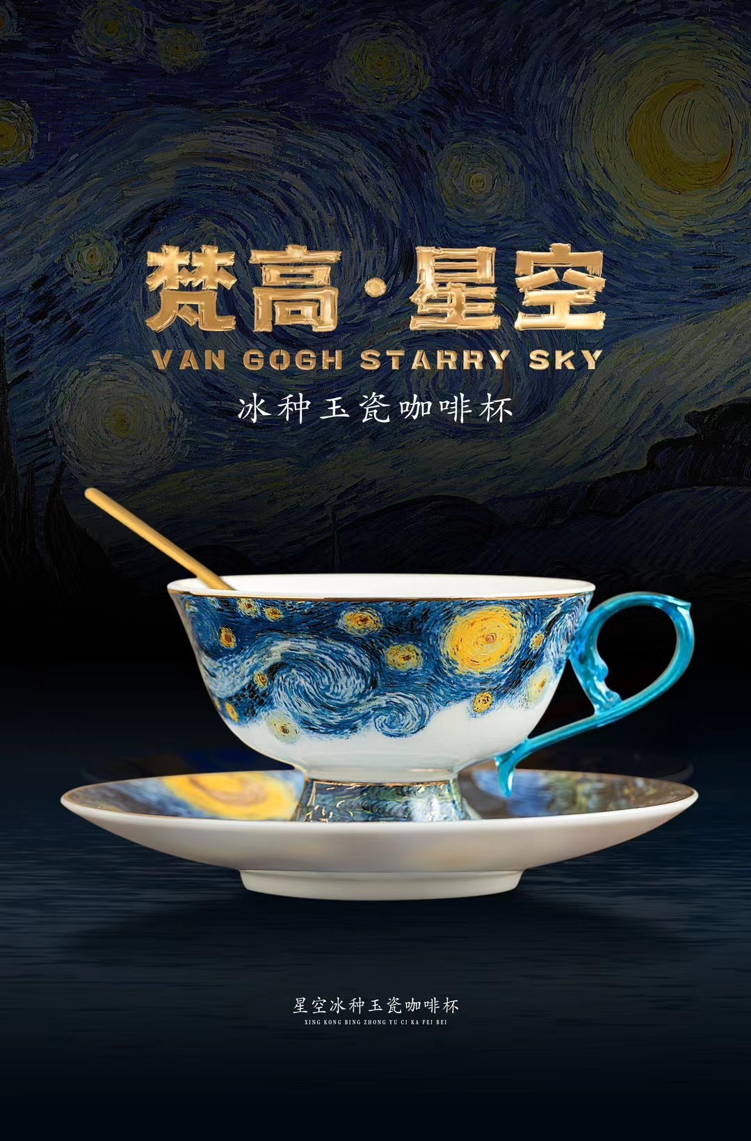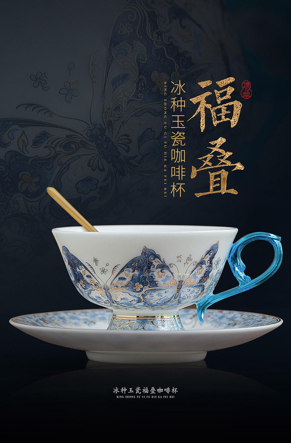B-QX-2055/2056 古法琉璃冰种玉瓷咖啡杯-梵高星空/蝶舞飞扬