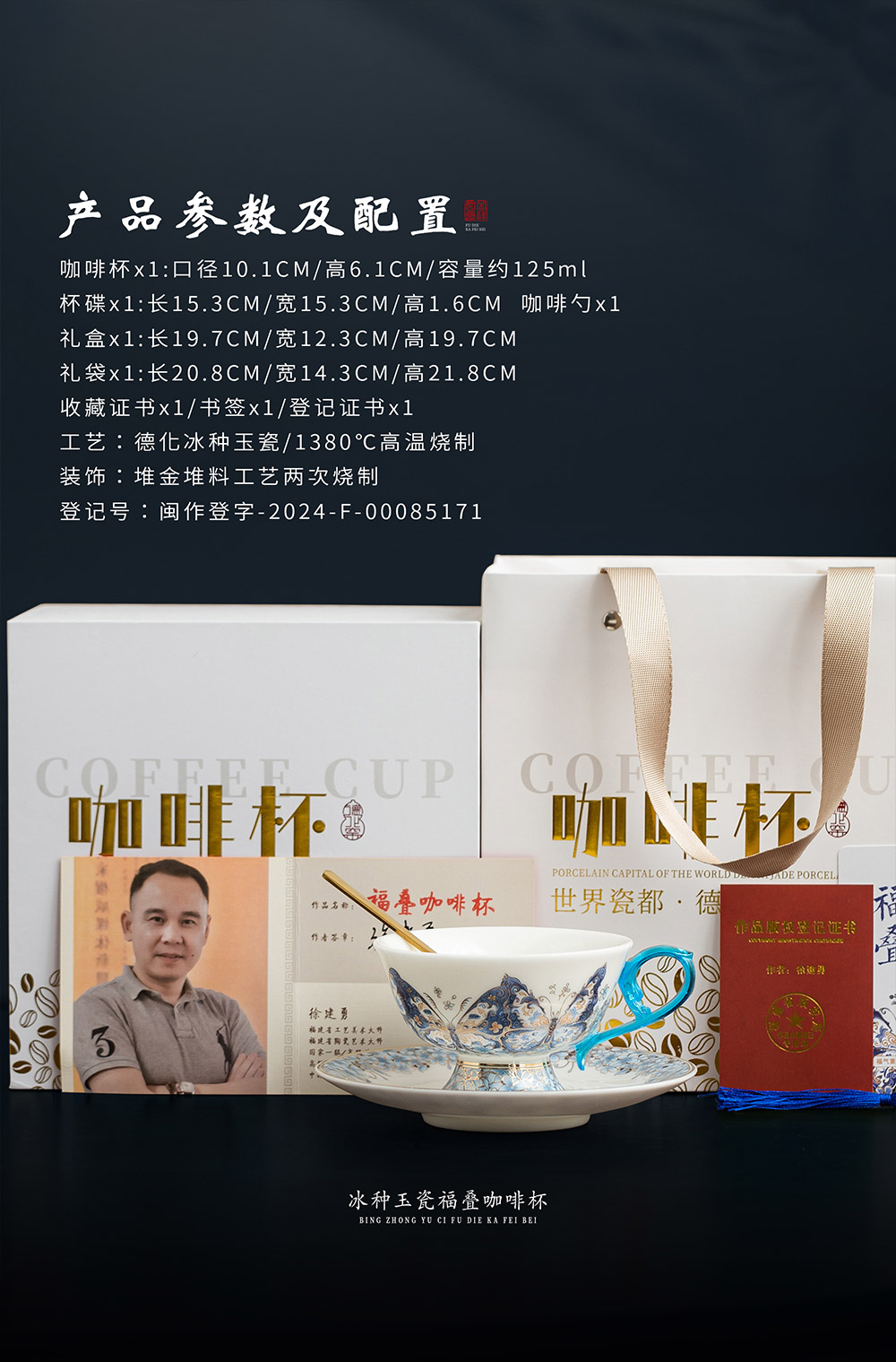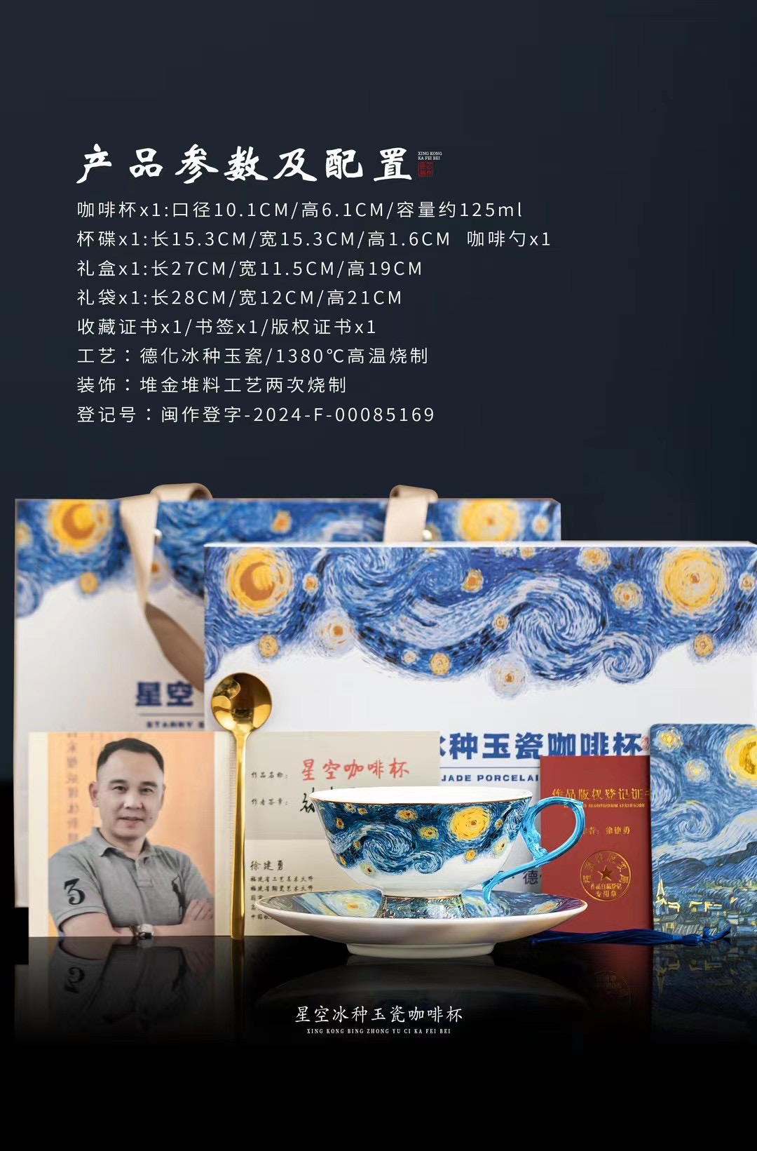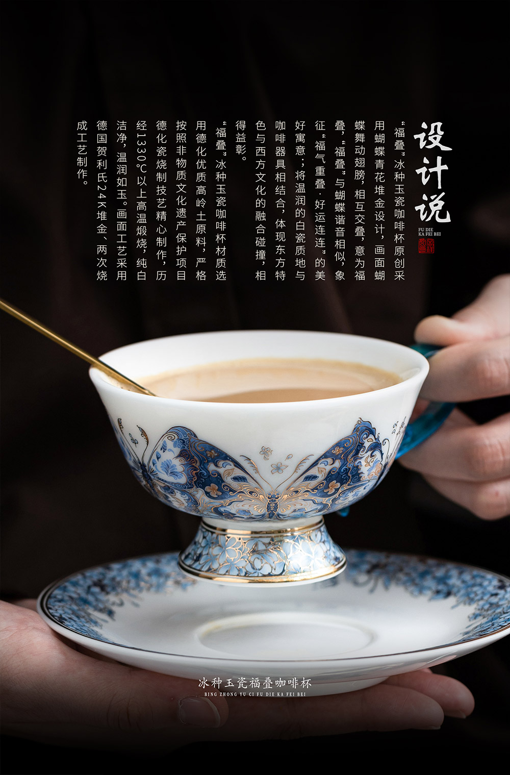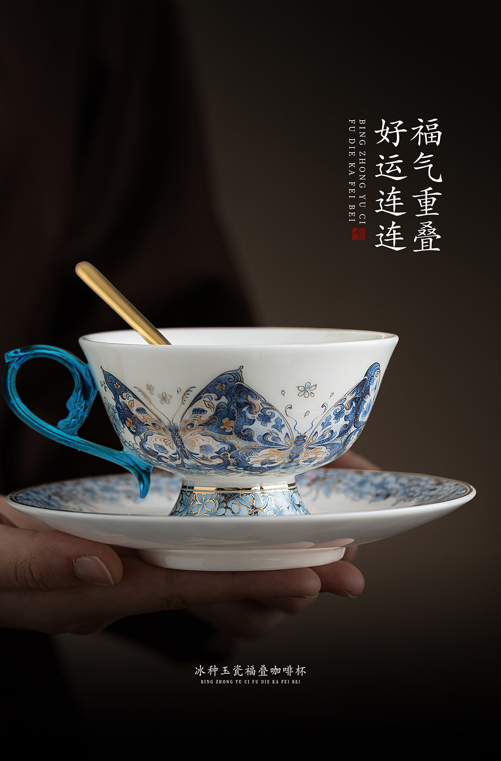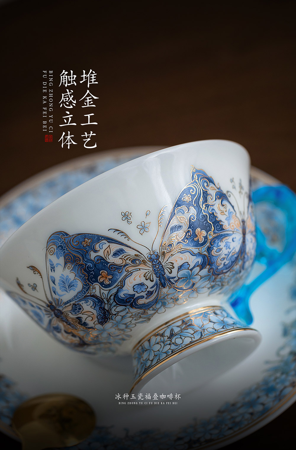 B-QX-2055/2056 古法琉璃冰种玉瓷咖啡杯-梵高星空/蝶舞飞扬